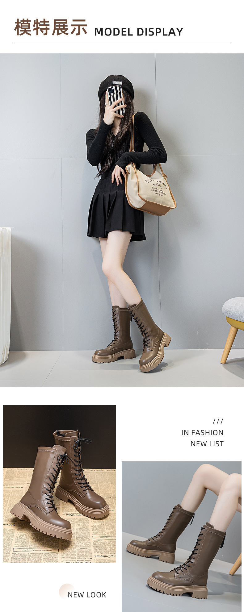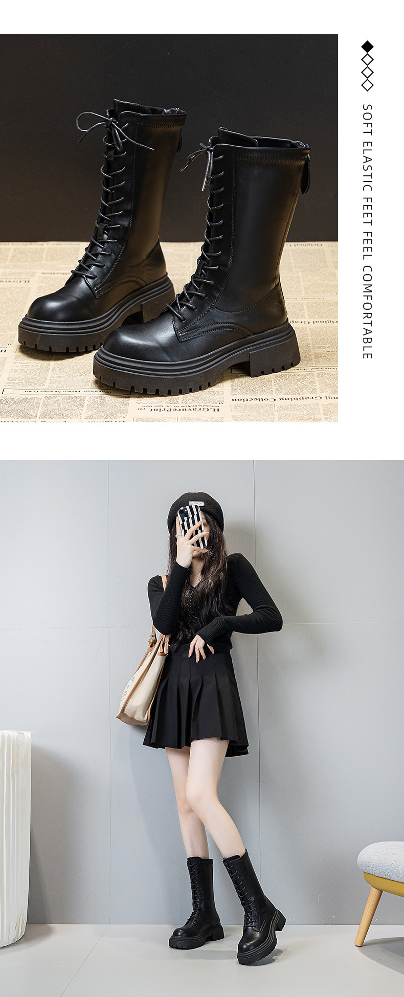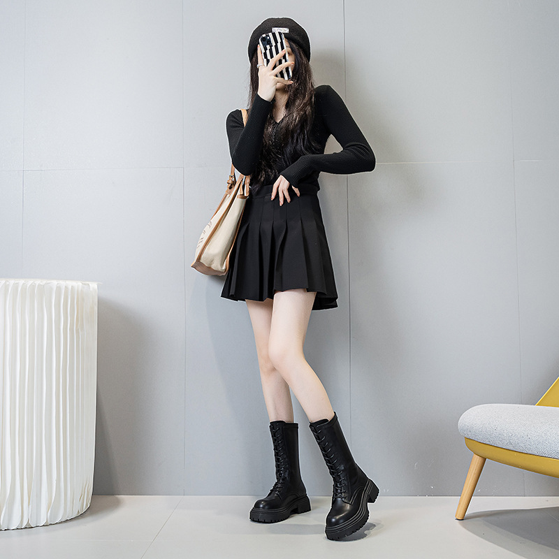 여성용 롱부츠 2026년 신상 봄가을 무릎길이 중간부츠 영국풍 키 작은 사람들을 위한 마틴부츠 키높이 롱부츠스토어 가기