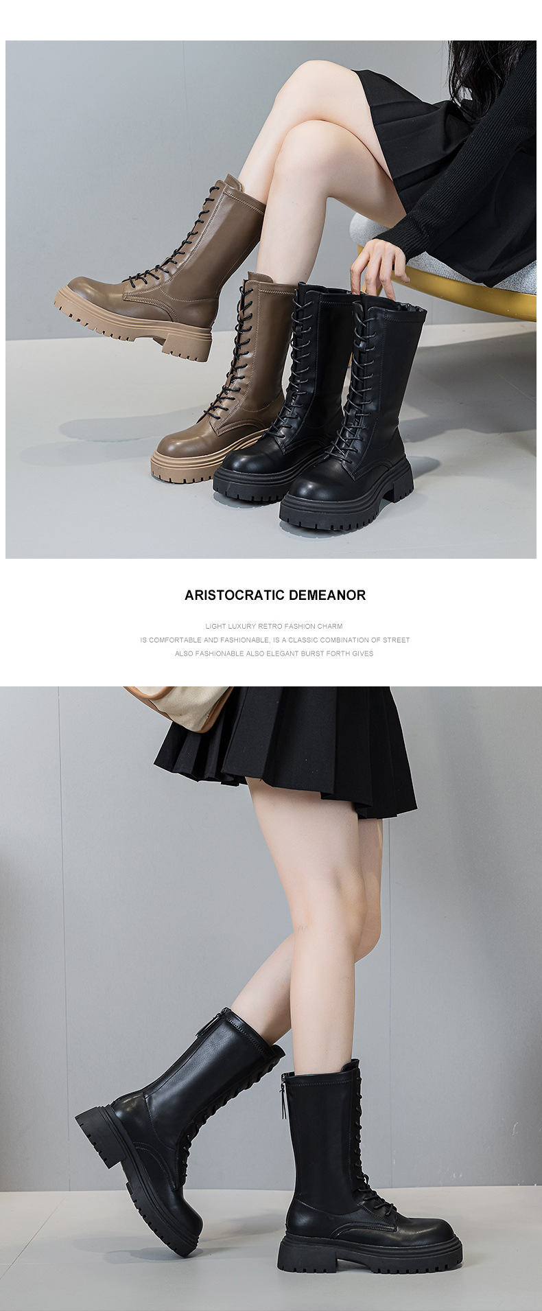 여성용 롱부츠 2026년 신상 봄가을 무릎길이 중간부츠 영국풍 키 작은 사람들을 위한 마틴부츠 키높이 롱부츠