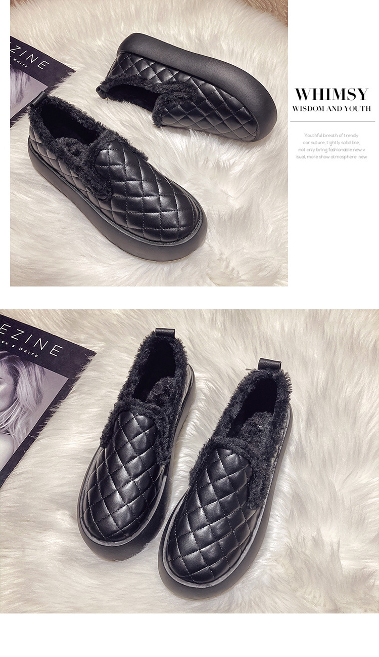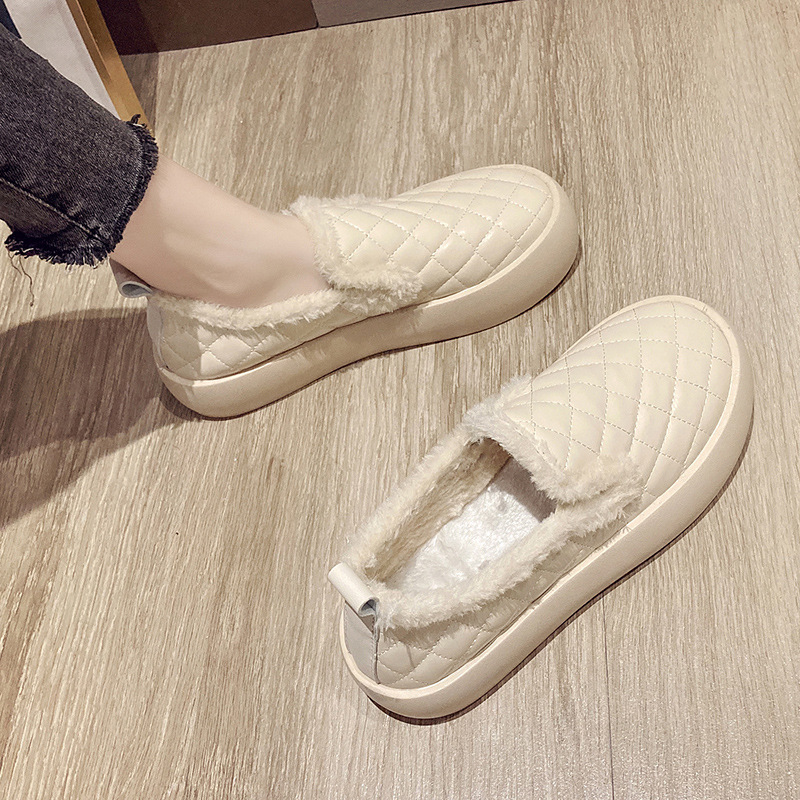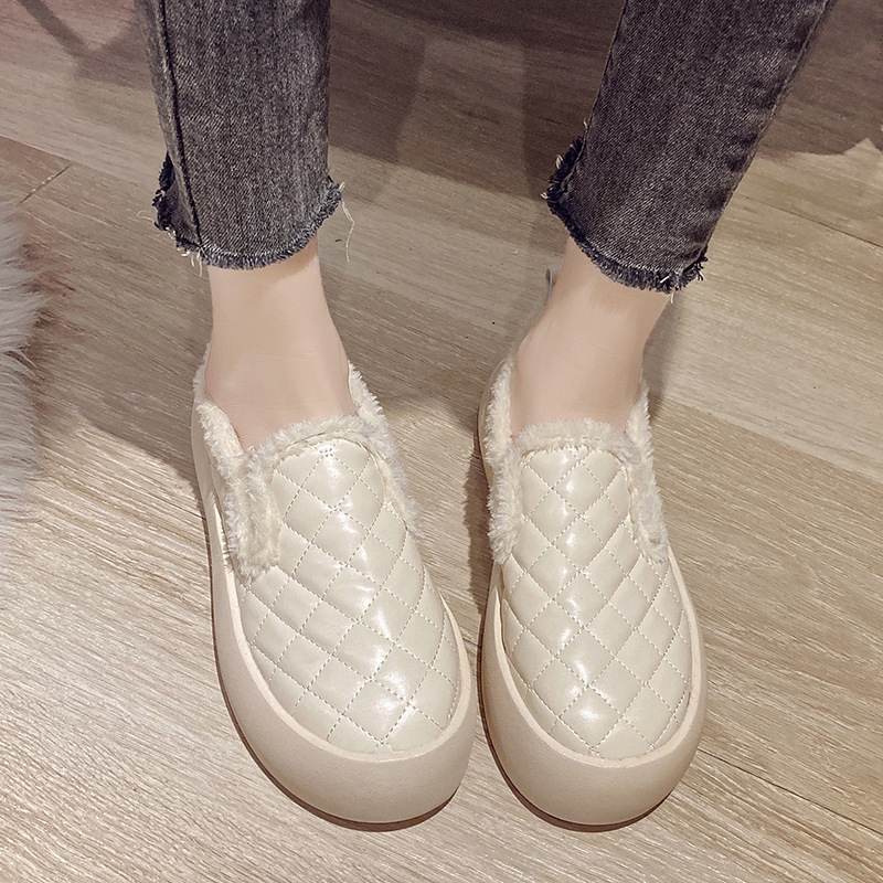 얕은 입 콩 신발 여성 2023 가을과 겨울 새로운 한국 패션 기모 게으른 페달 두꺼운 바닥 로퍼
