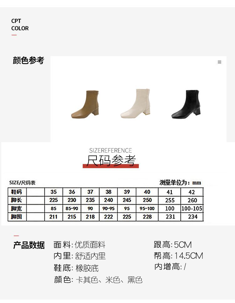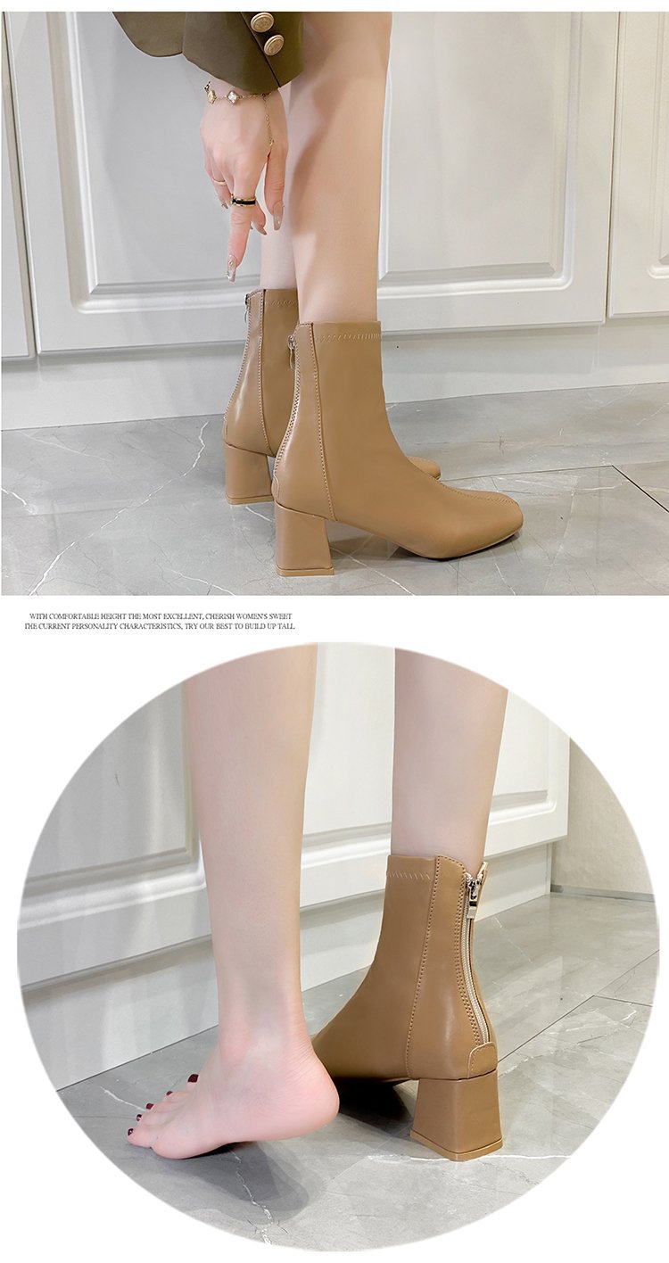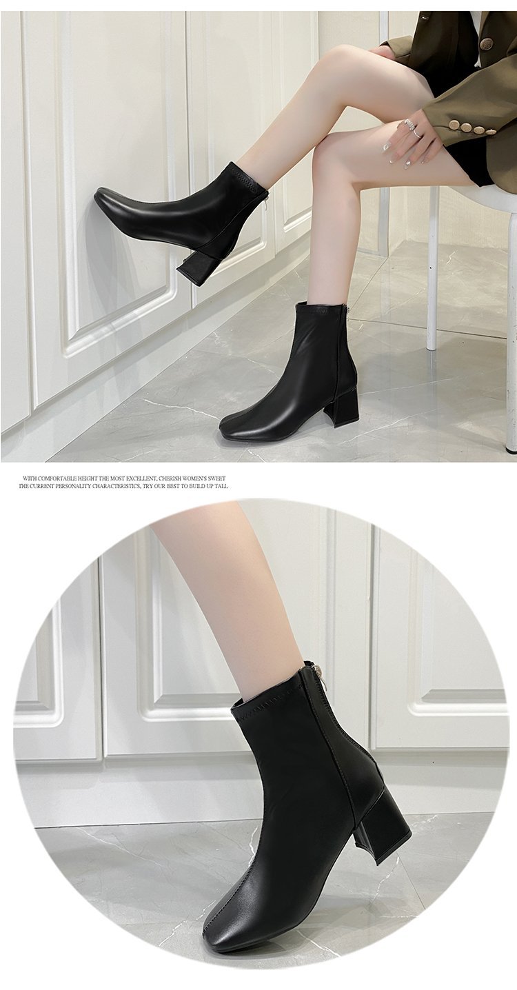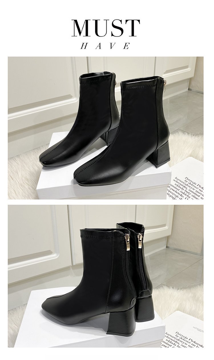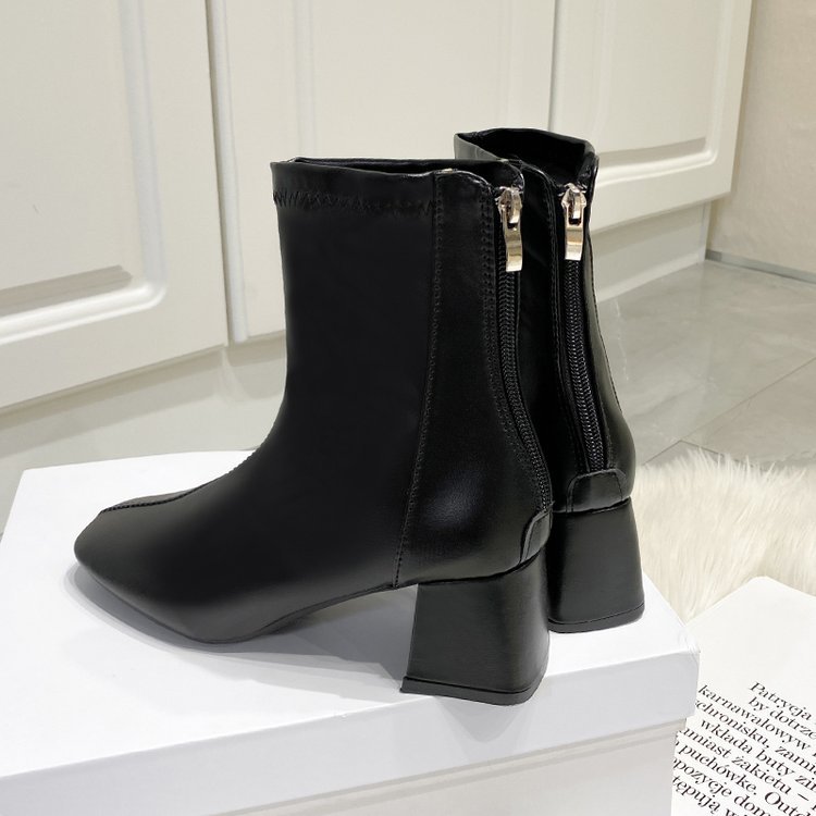 마틴 부츠 여성용 2023 새로운 여성용 부츠 겨울 유럽 및 미국 스타일 스퀘어 헤드 리어 지퍼 쇼트 부츠 여성용 두꺼운 힐 미드 힐 부츠 여성용