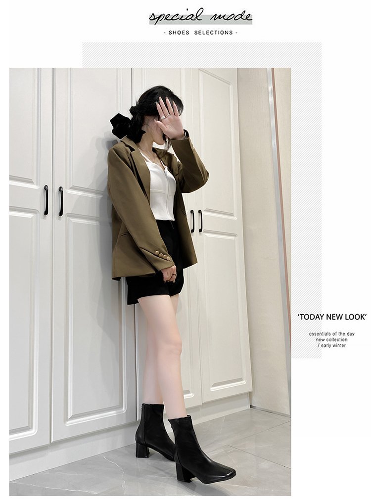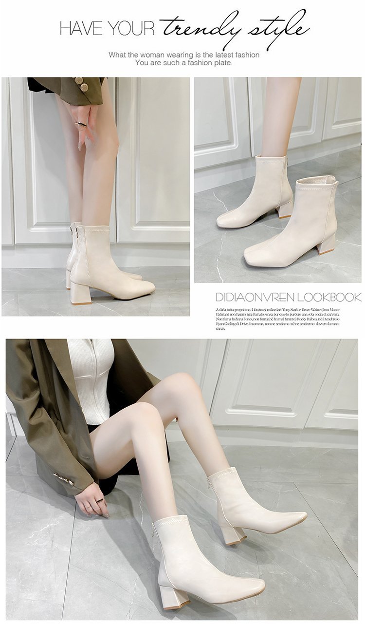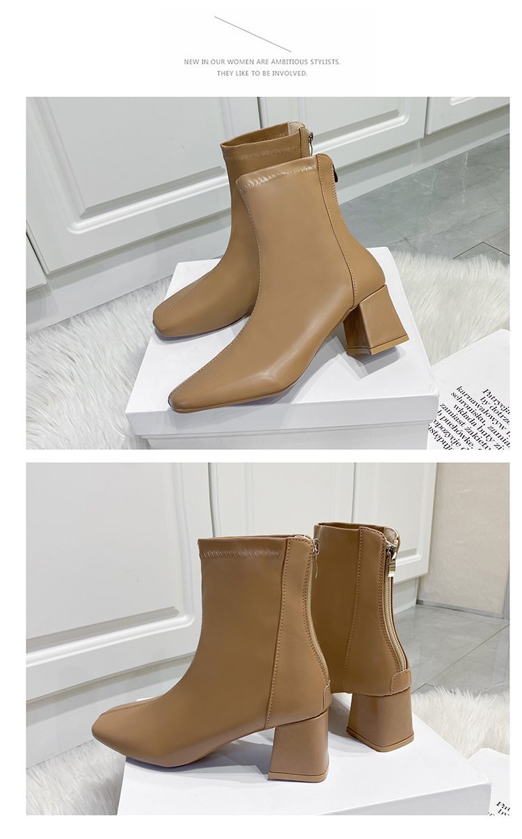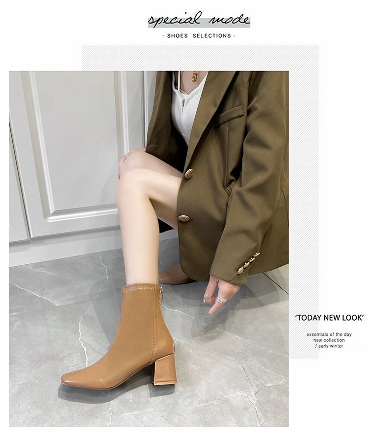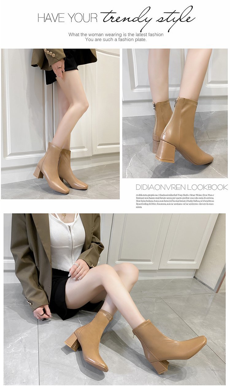 마틴 부츠 여성용 2023 새로운 여성용 부츠 겨울 유럽 및 미국 스타일 스퀘어 헤드 리어 지퍼 쇼트 부츠 여성용 두꺼운 힐 미드 힐 부츠 여성용