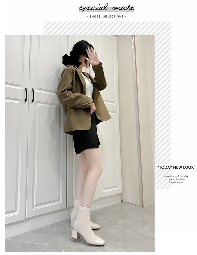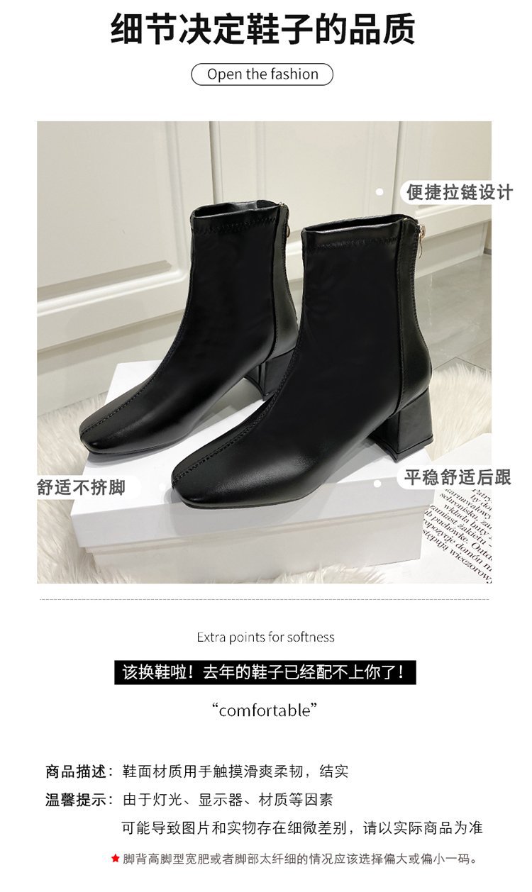 마틴 부츠 여성용 2023 새로운 여성용 부츠 겨울 유럽 및 미국 스타일 스퀘어 헤드 리어 지퍼 쇼트 부츠 여성용 두꺼운 힐 미드 힐 부츠 여성용스토어 가기