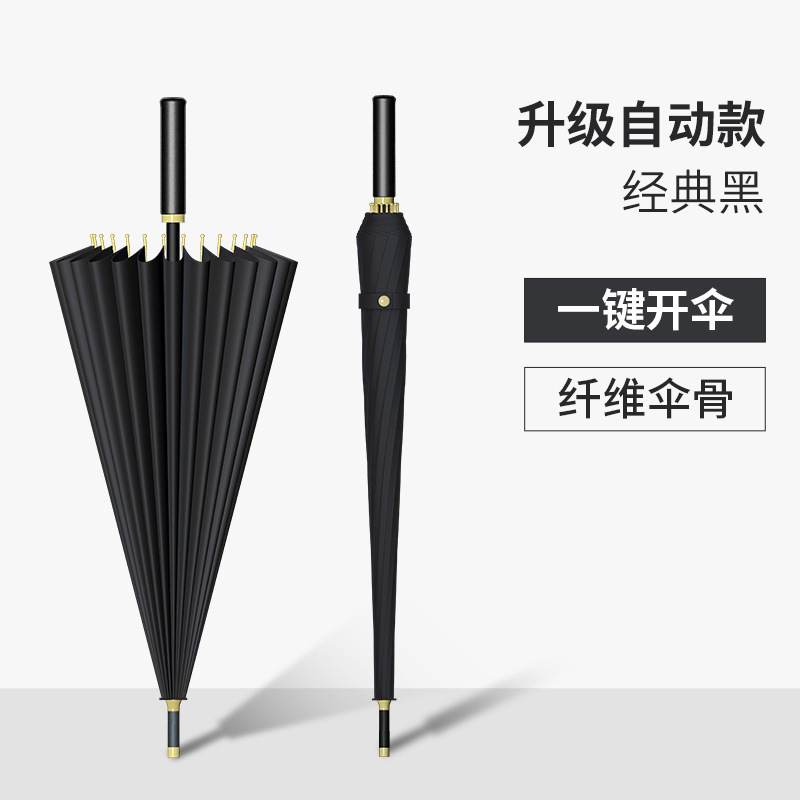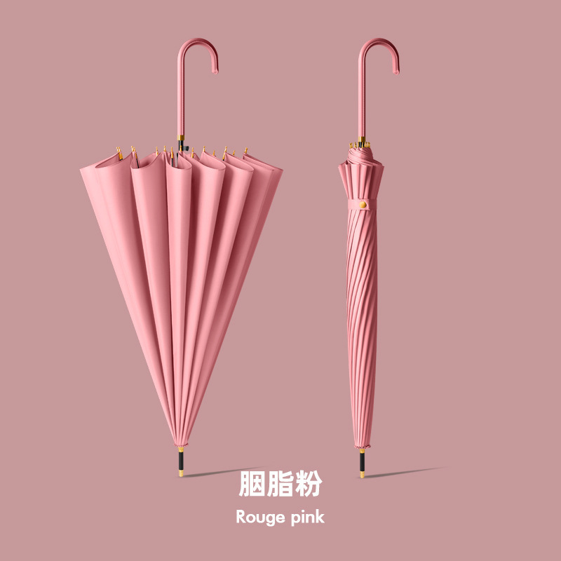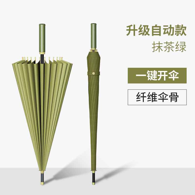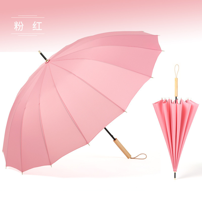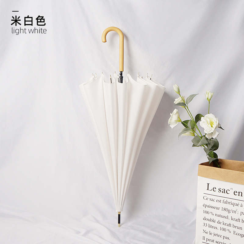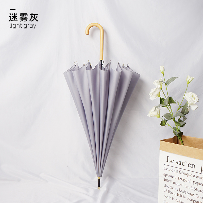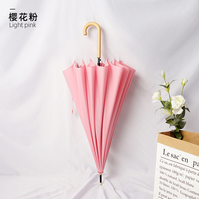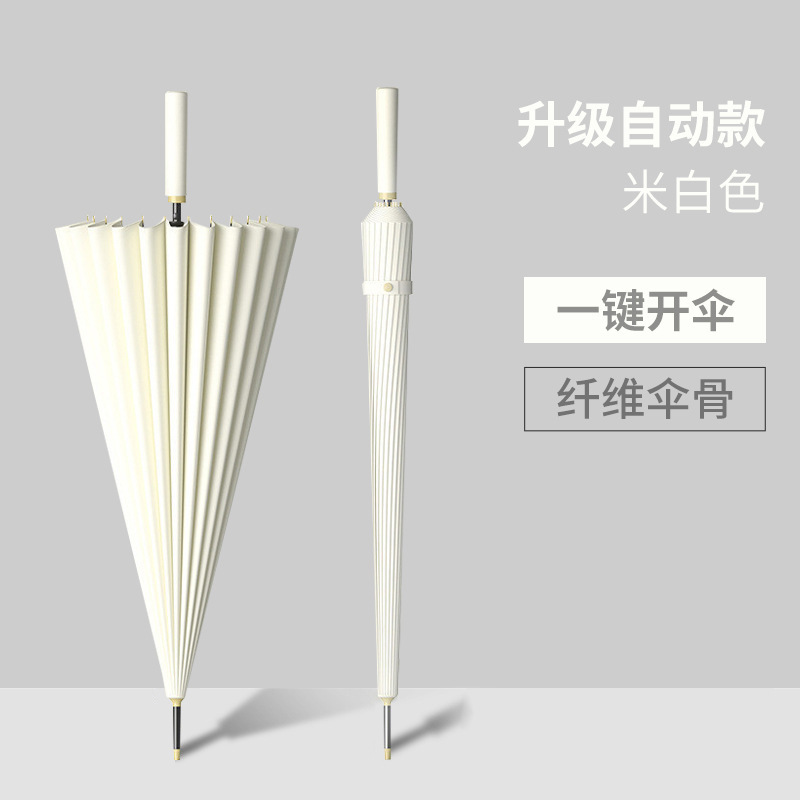 새로운 자동 16본 태양 우산, 긴 손잡이 우산, 더블 우드 곡선 손잡이, 이중 목적 ins 스타일 작은 투명 우산스토어 가기