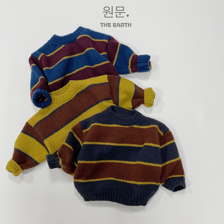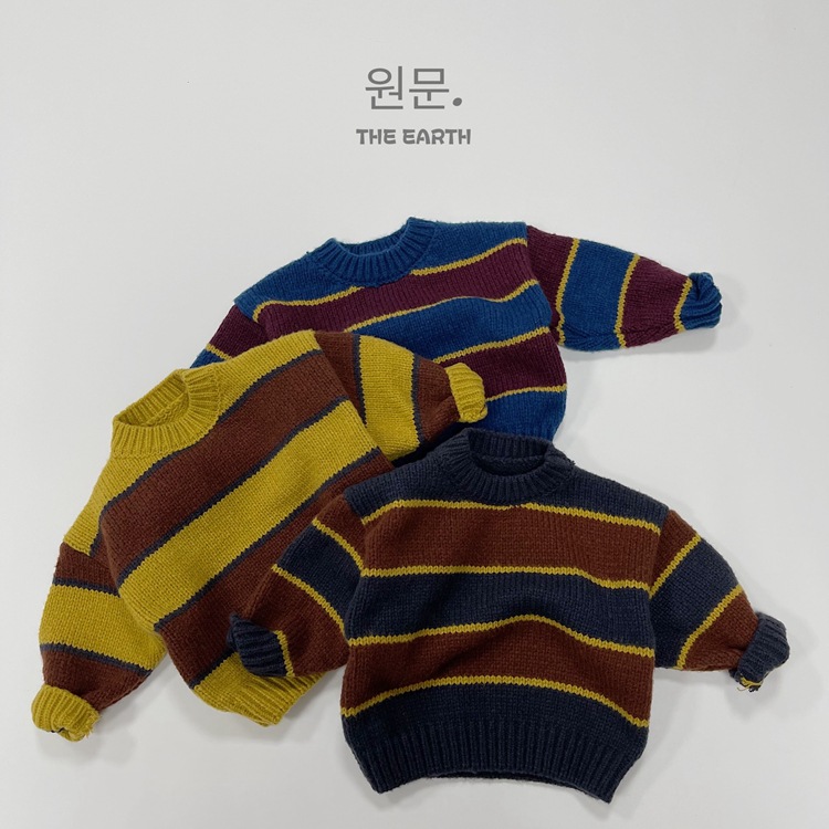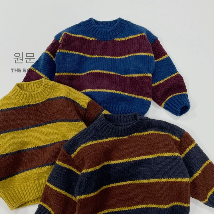 한국 아동 의류 어린이 가을과 겨울 거친 스웨터 풀오버 남자와 여자의 아기 일본과 한국 스타일 복고풍 줄무늬 스웨터 조수스토어 가기