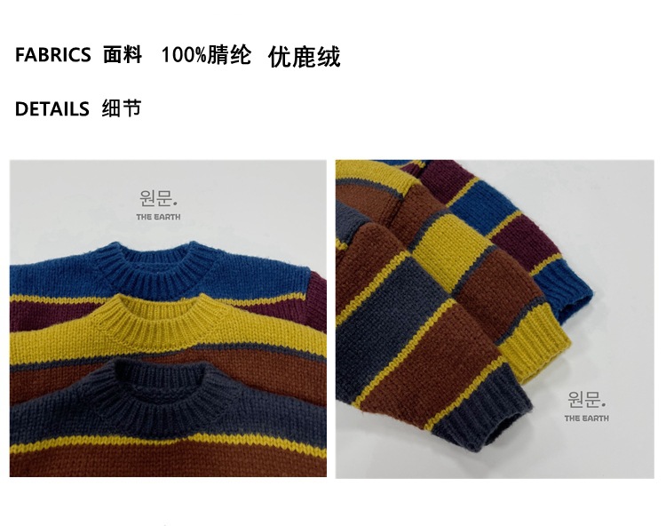 한국 아동 의류 어린이 가을과 겨울 거친 스웨터 풀오버 남자와 여자의 아기 일본과 한국 스타일 복고풍 줄무늬 스웨터 조수