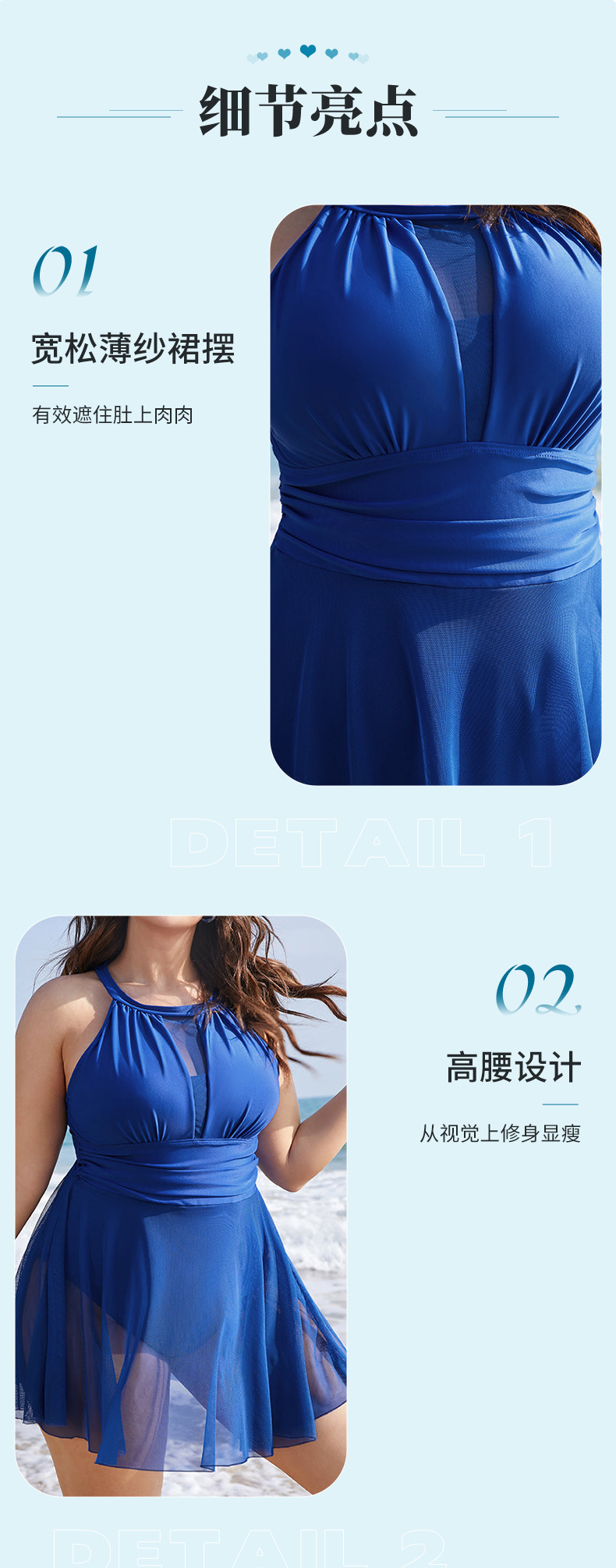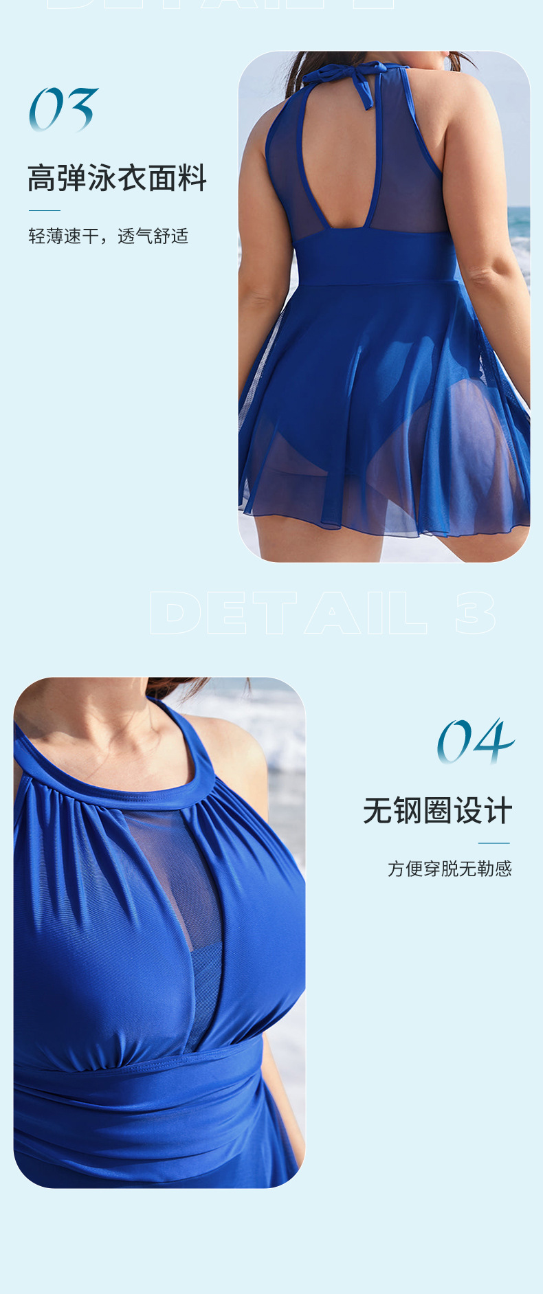 맞춤형 유럽과 미국 단색 온천 플러스 사이즈 수영복 보수적 인 라운드 넥 슬링 등이없는 하이 웨이스트 대형 스커트스토어 가기