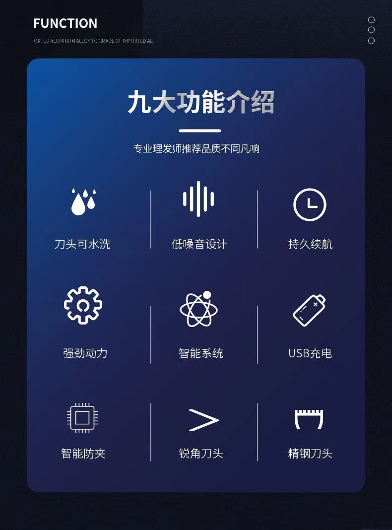 产品配件:说明书、四个限位梳、一个USB充电线、一瓶润滑油、一只清洁刷、
