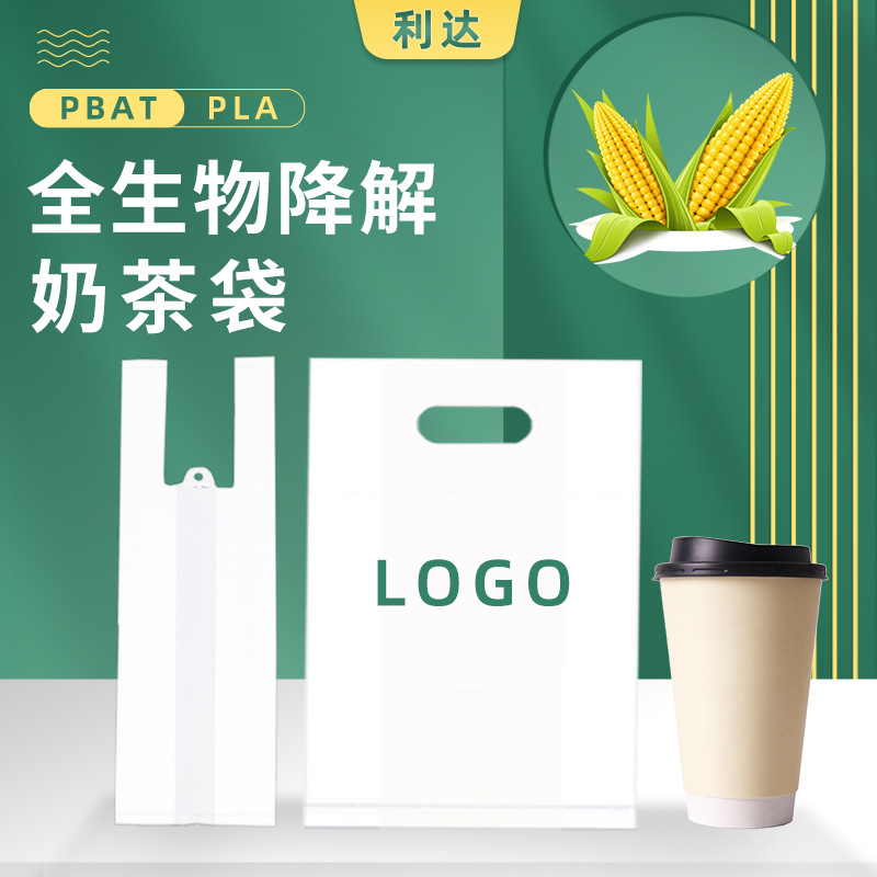 PLA 분해 가능한 우유 차 가방 완전 생분해 성 복합 환경 친화적 인 휴대용 플라스틱 가방 음료 포장 가방