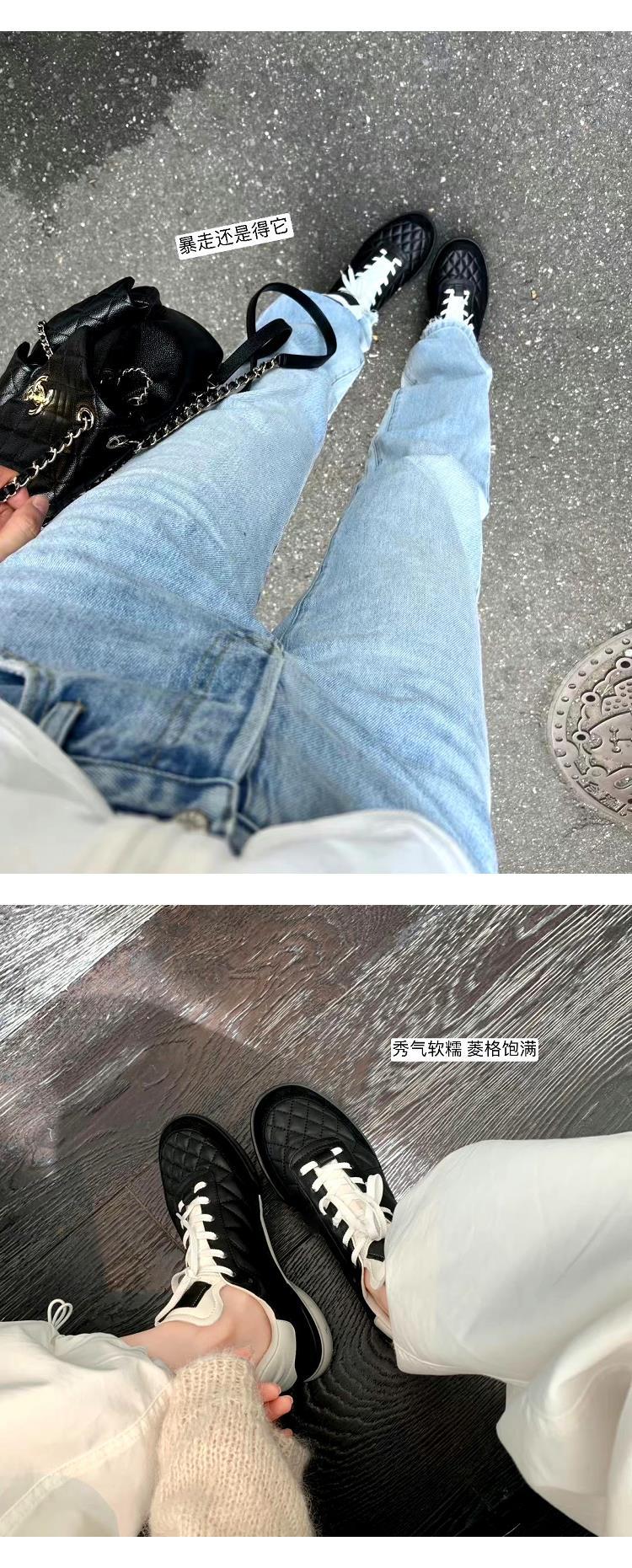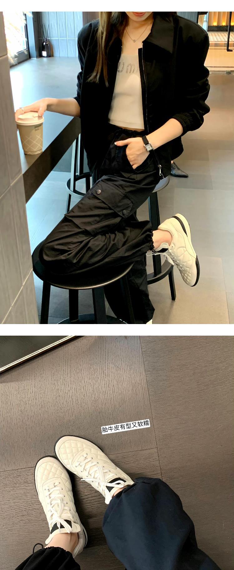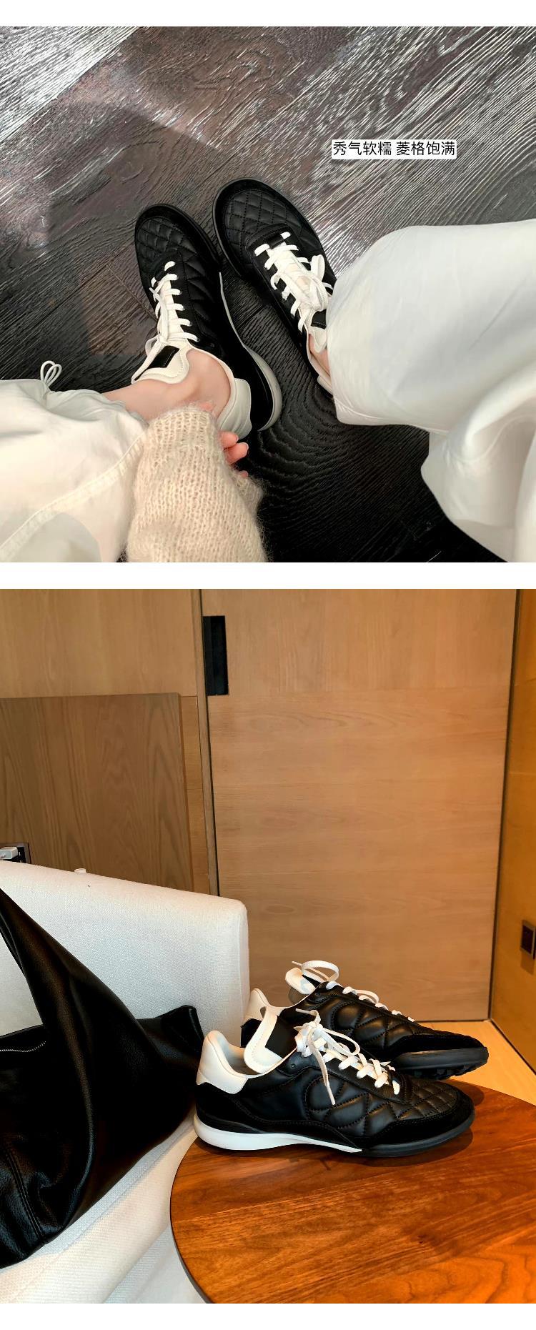 소가죽 버전~다이아몬드 패턴의 작은 향수풍 타이프 소가죽 끈 달린 캐주얼 운동화 여성용 트렌디한 천연 가죽 두꺼운 밑창 러닝화 스니커즈스토어 가기