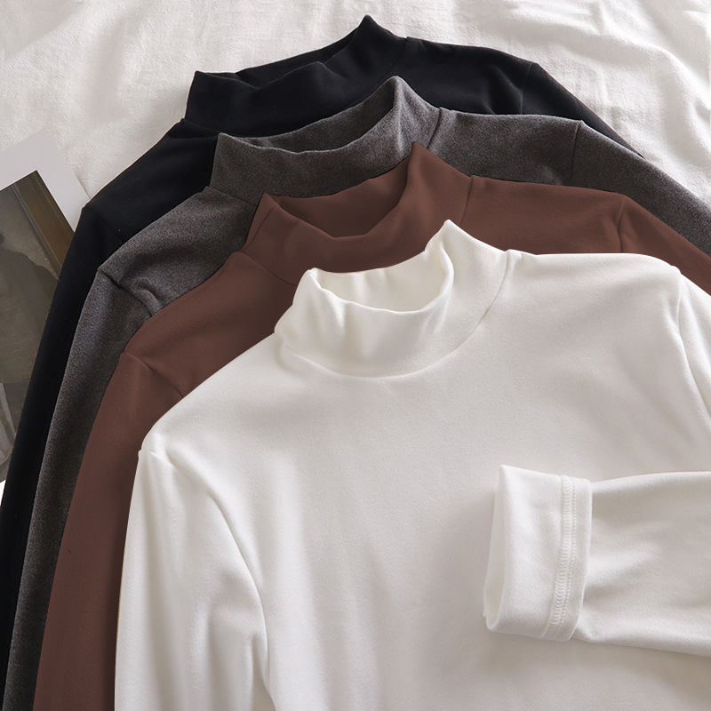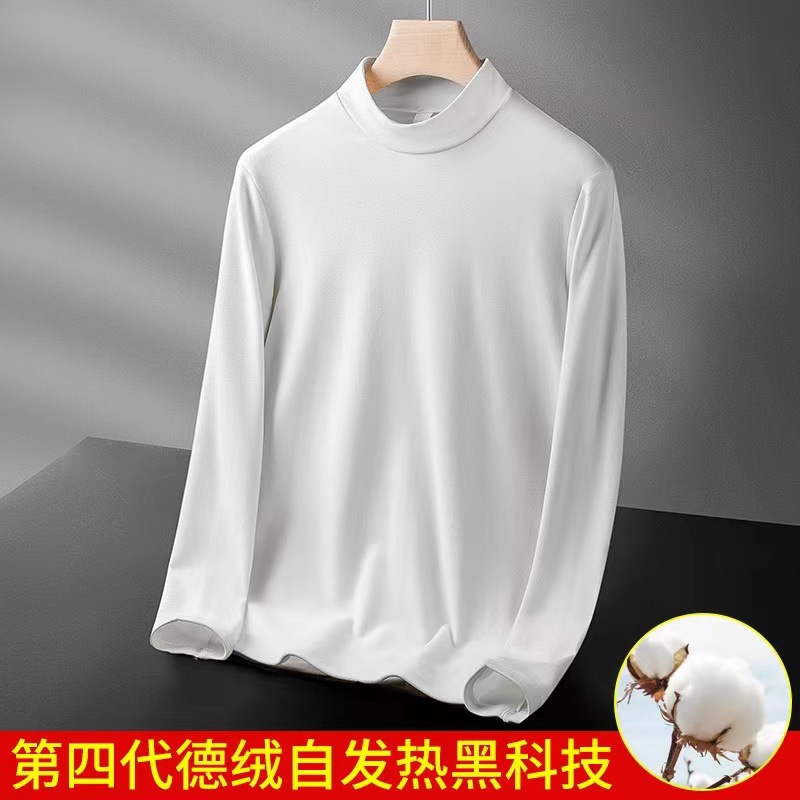 가을과 겨울 양털 세미 하이 칼라 베이스 셔츠 남성용 가을과 겨울 단색 두꺼운 양면 양털 따뜻한 내부 반 긴 소매 티셔츠 남성용스토어 가기