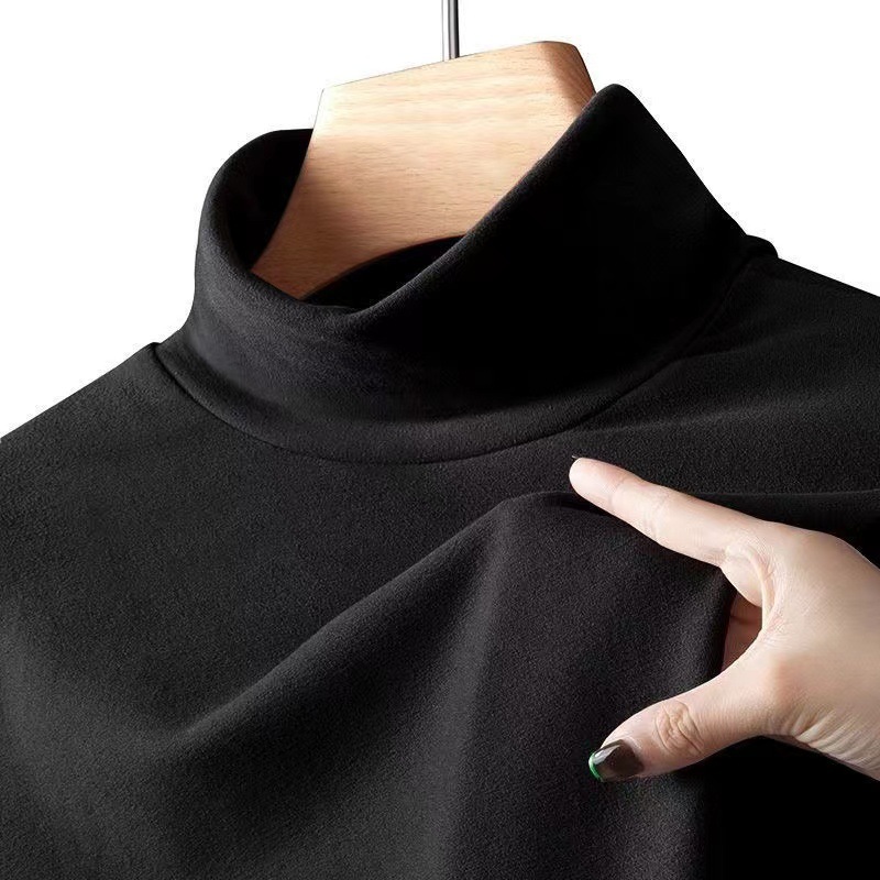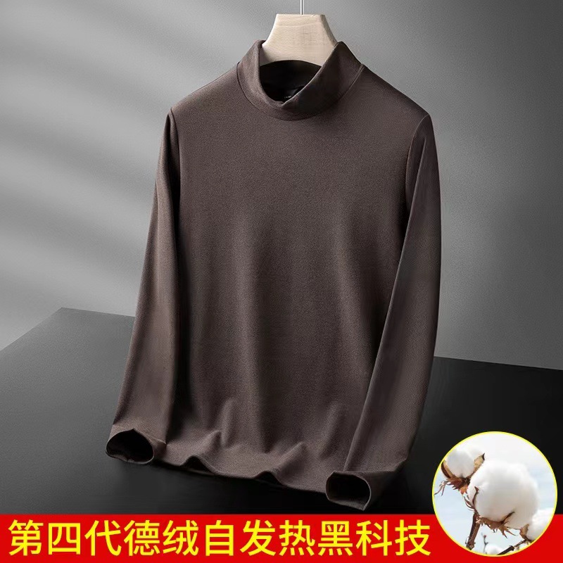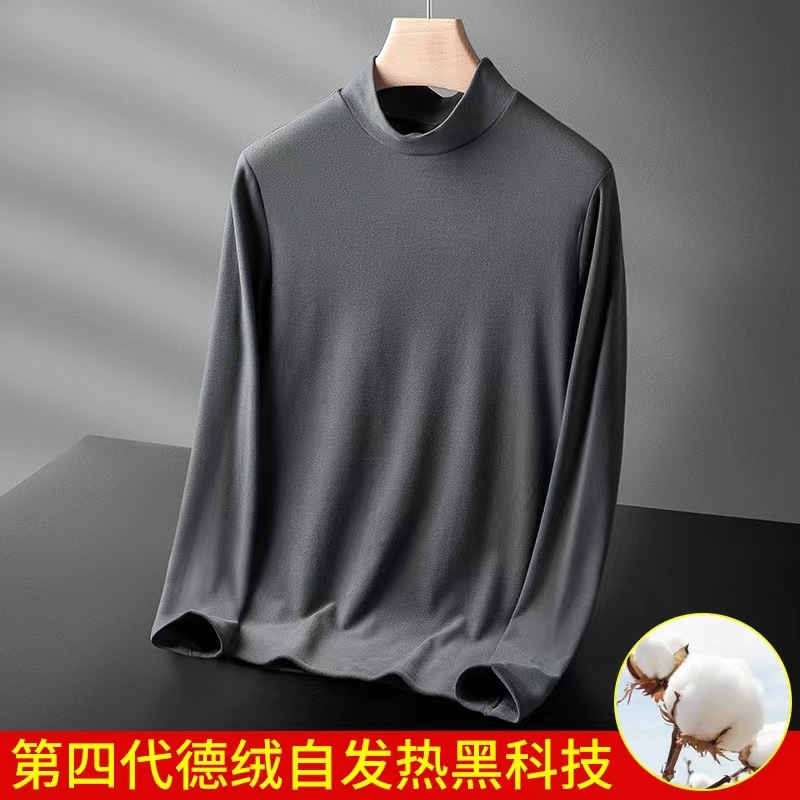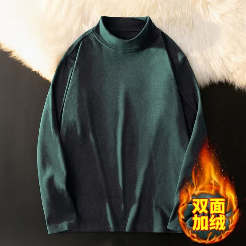 가을과 겨울 양털 세미 하이 칼라 베이스 셔츠 남성용 가을과 겨울 단색 두꺼운 양면 양털 따뜻한 내부 반 긴 소매 티셔츠 남성용