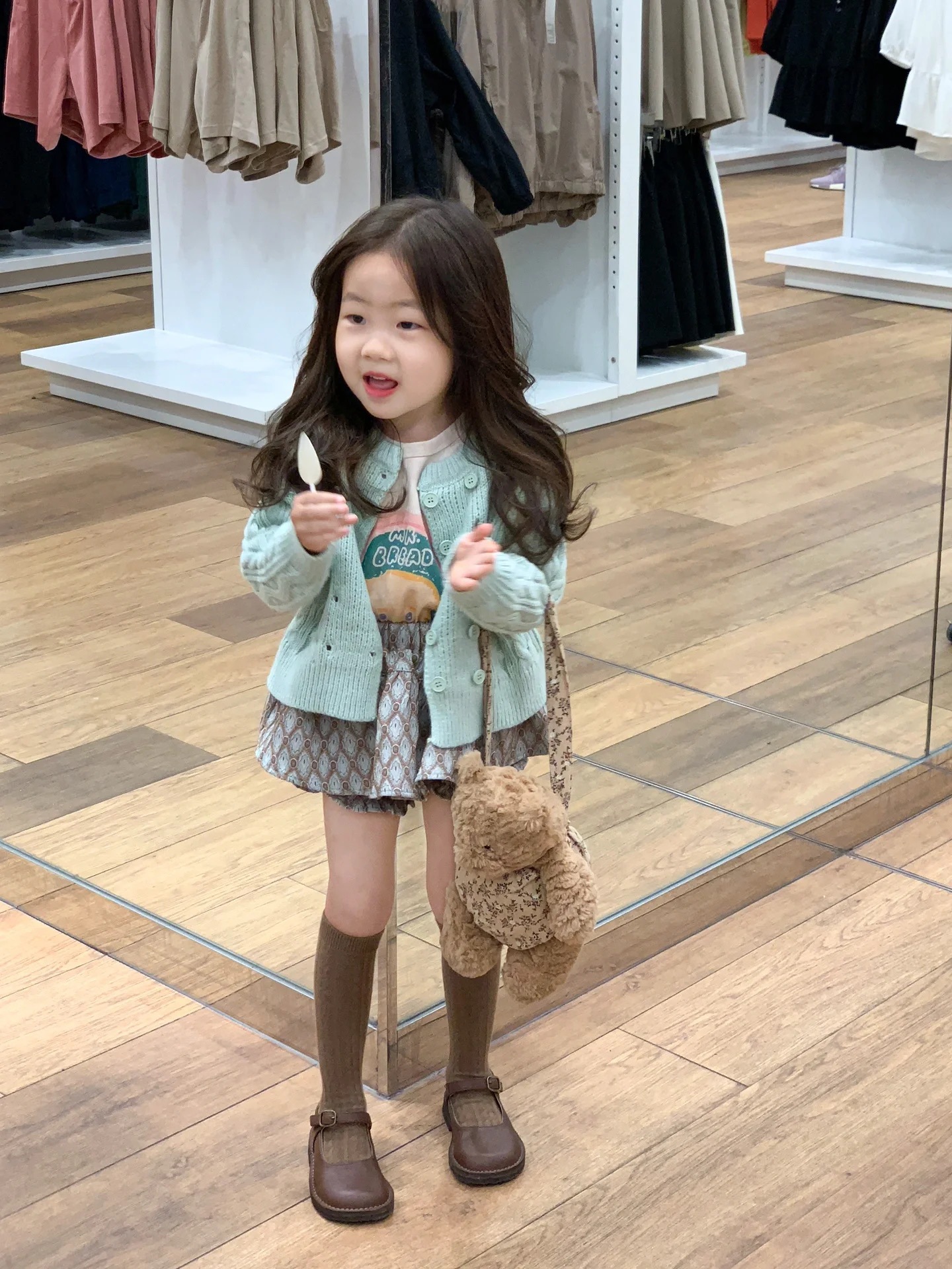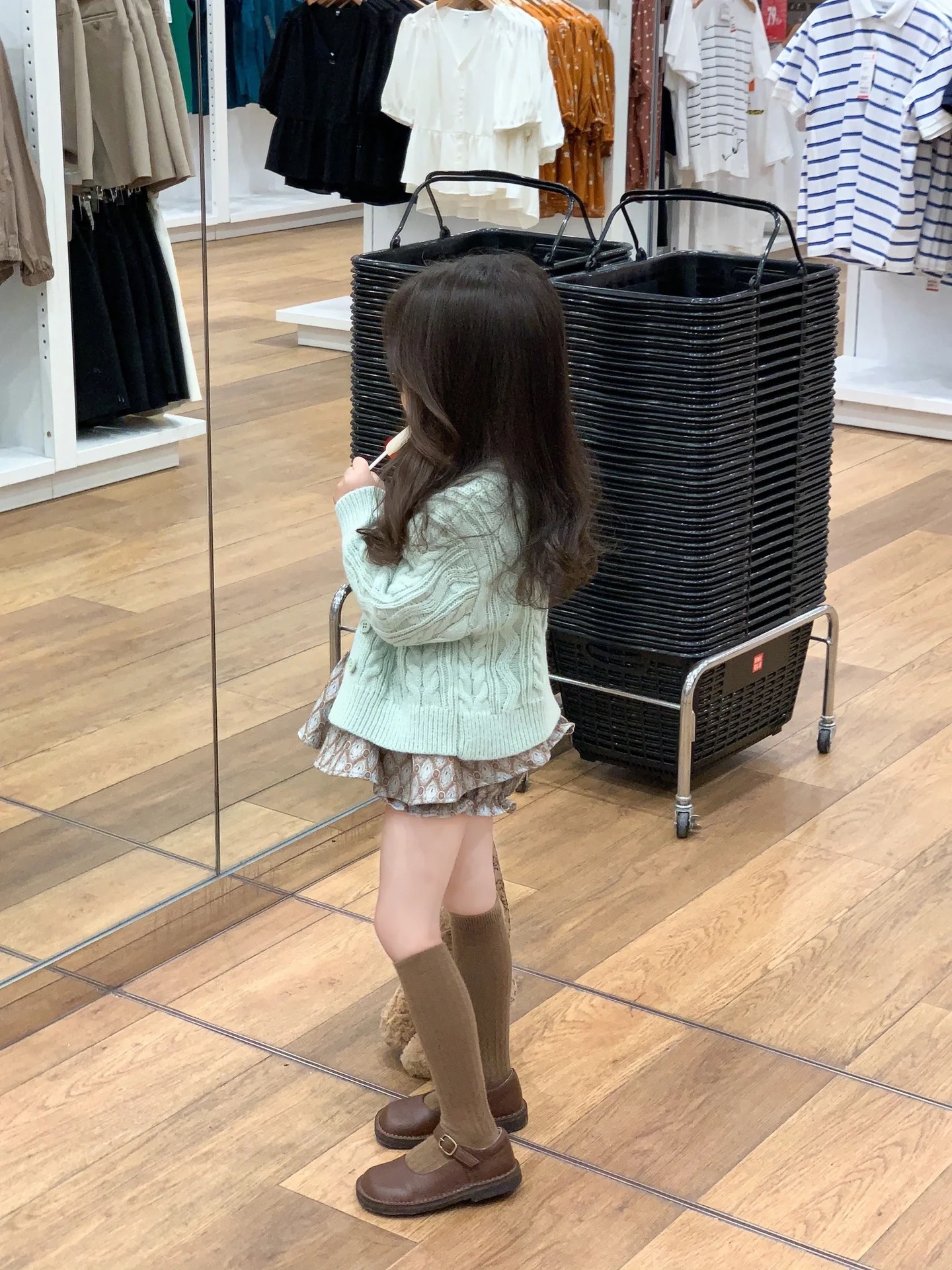 여자 가을 달콤한 자매 바람 블루 니트 울 카디건 + 레트로 마름모 스커트 바지 + 바느질 바닥 셔츠 별도 촬영스토어 가기