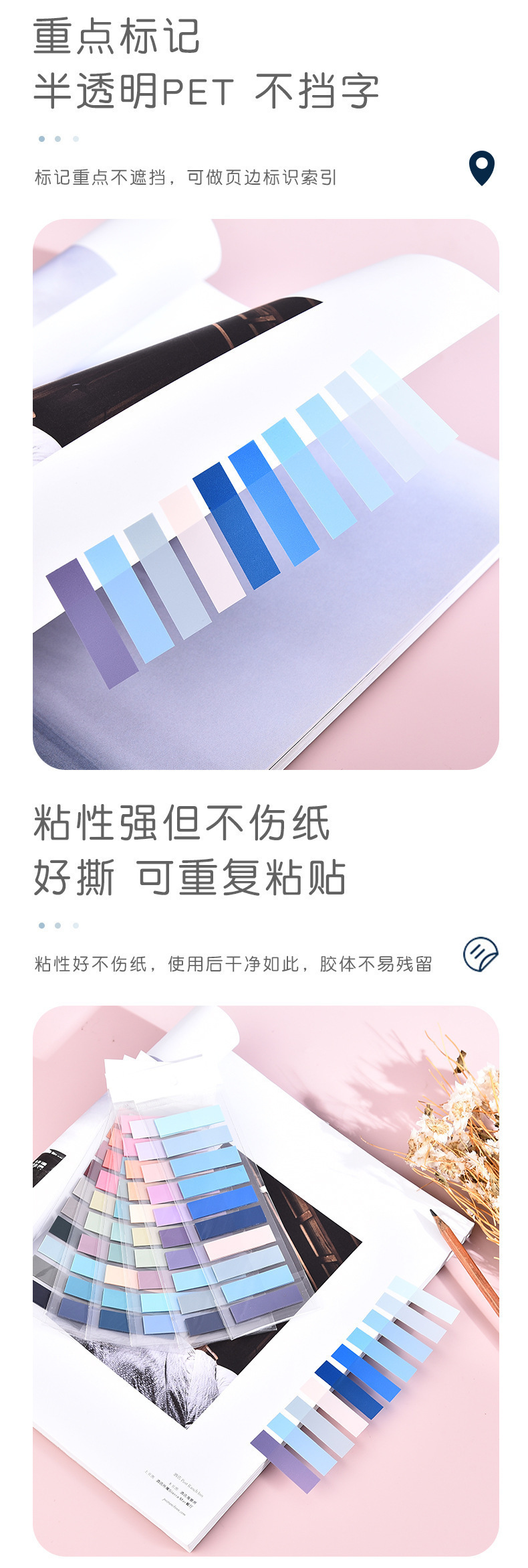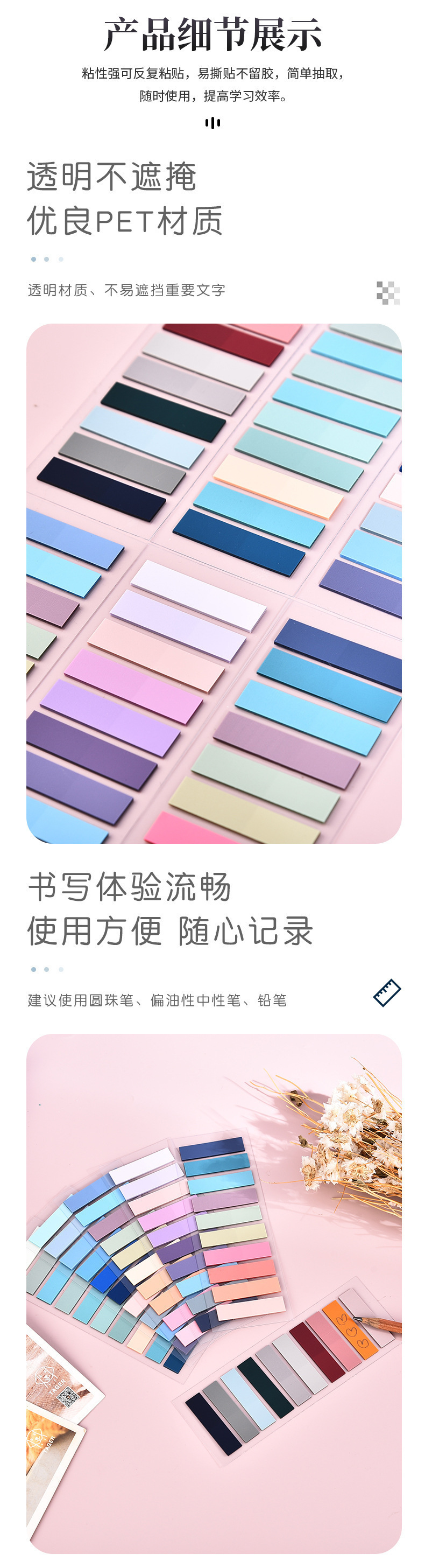 모란디 인덱스 스티커 PET 느슨한 잎 인 바람 색 스티커 노트 분류 책갈피 자체 접착 라벨 포스트잇 노트 도매