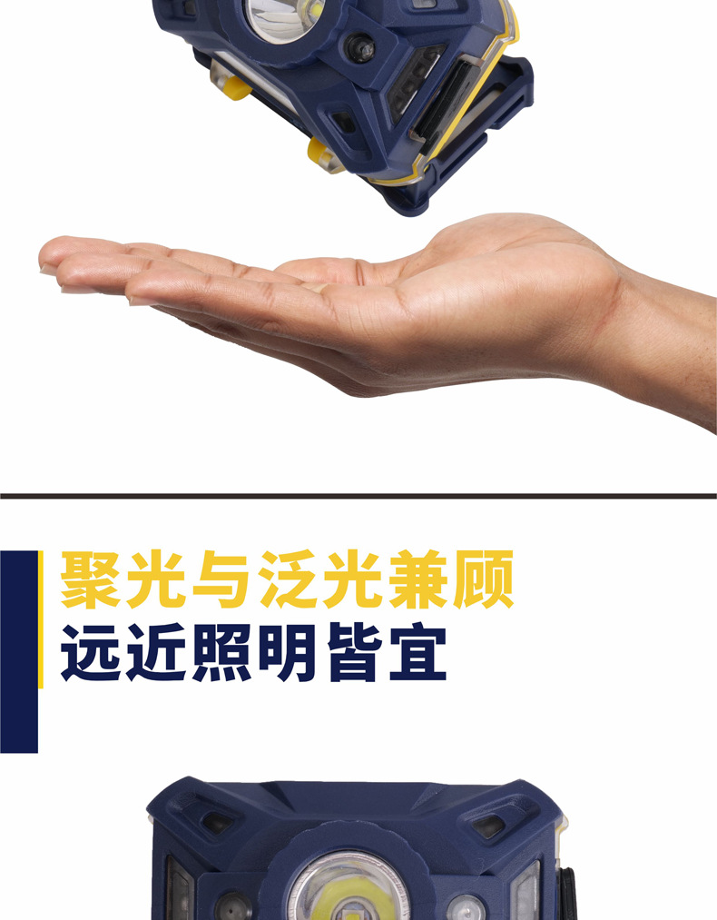 만리장성 세이코 유도 투광 조명 이중 목적 전조등 LED 강한 빛 충전식 손전등 광부 램프 야간 낚시 야외스토어 가기