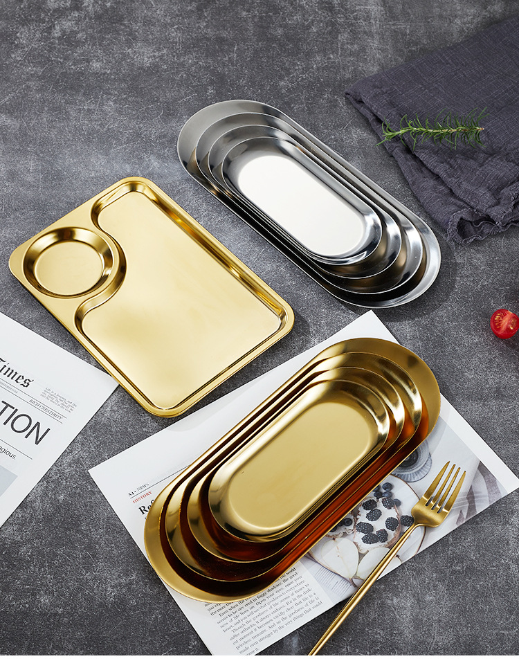 스테인레스 접시 한국식 사각 만두 접시, 호텔 디너 접시, 트레이, 바베큐 가게 접시, 식기
