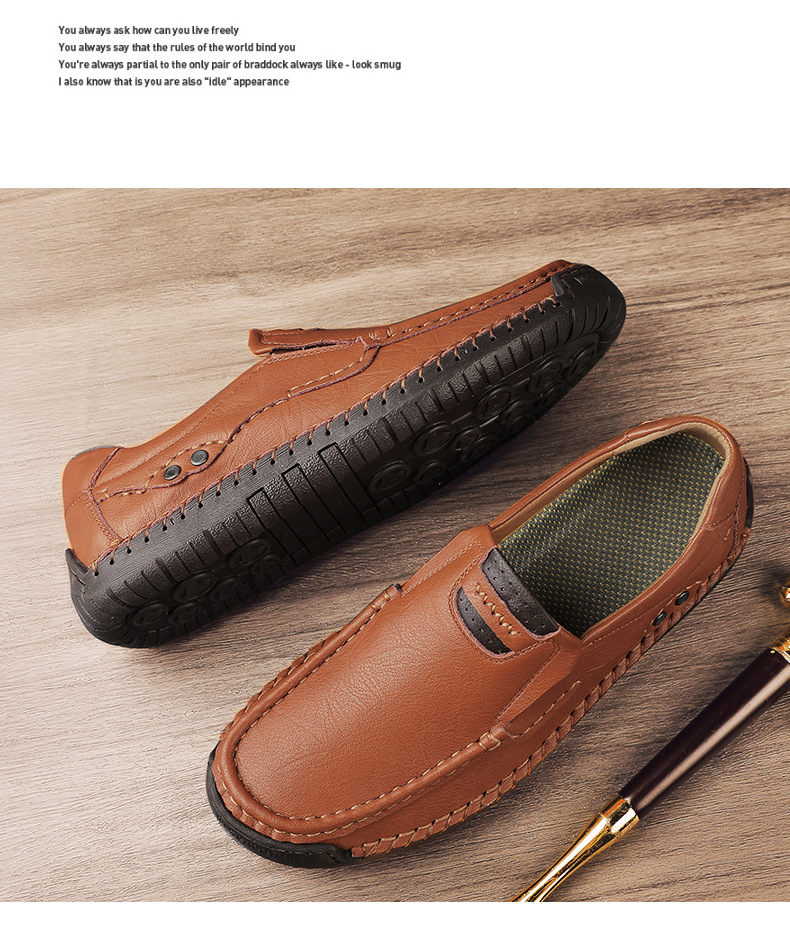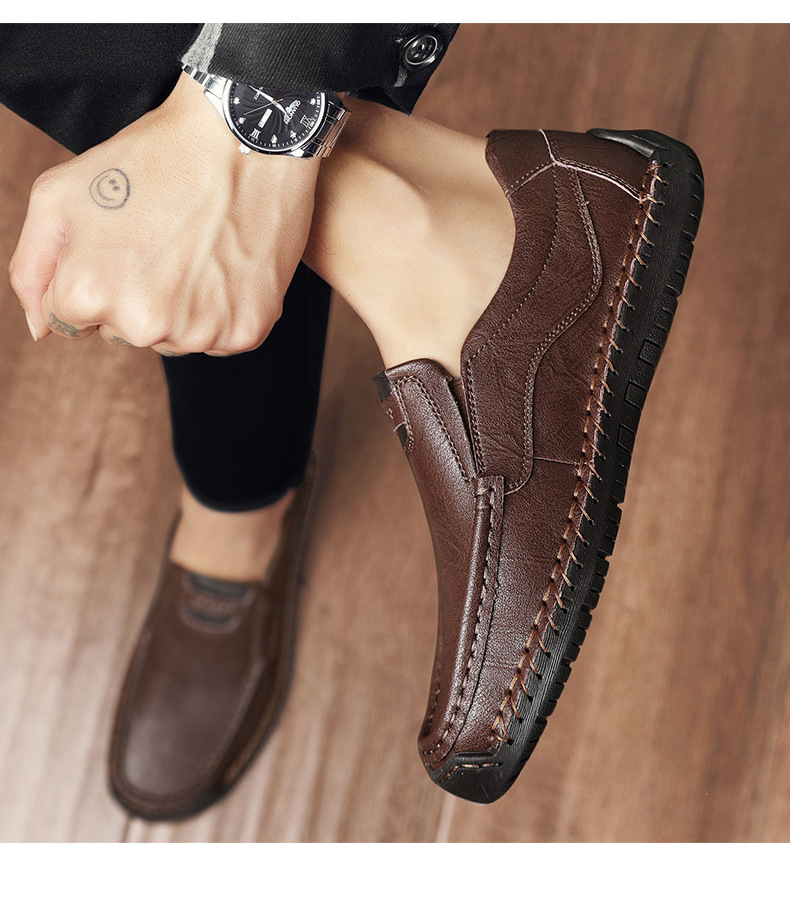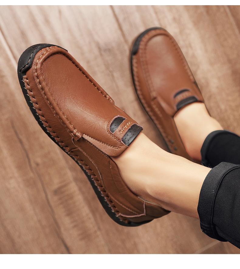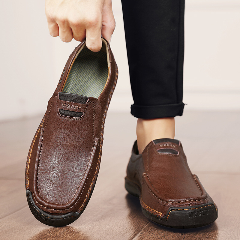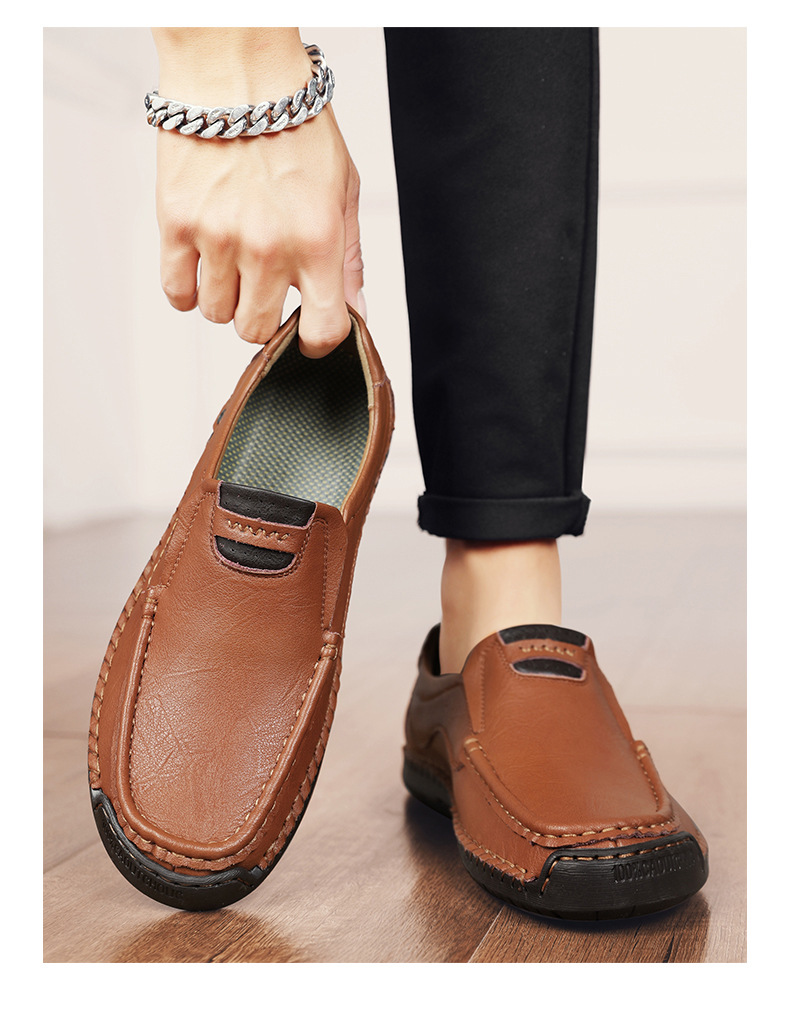 외국 무역 남자의 가죽 신발 손 스티치 가죽 신발 유행 간단한 모든 매치 신발 남자의 야외 크로스 보더 플러스 사이즈 캐주얼 신발