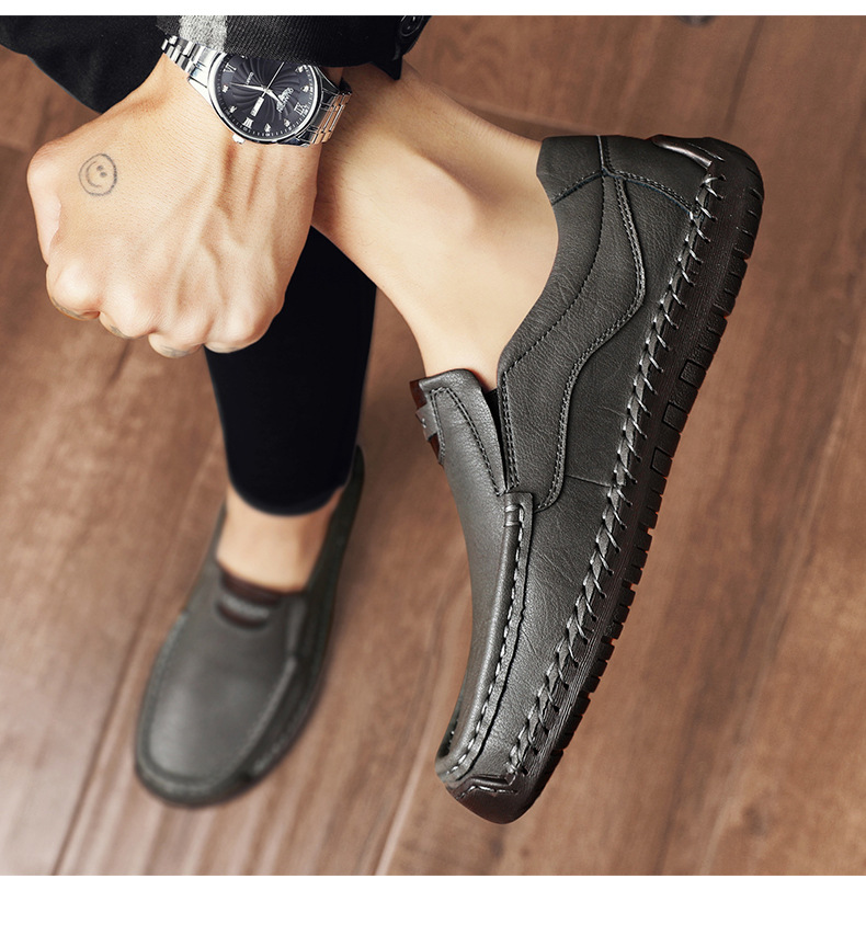 외국 무역 남자의 가죽 신발 손 스티치 가죽 신발 유행 간단한 모든 매치 신발 남자의 야외 크로스 보더 플러스 사이즈 캐주얼 신발스토어 가기