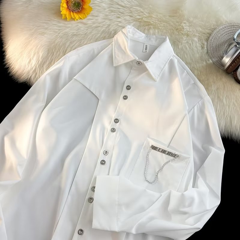 셔츠 남성용 긴팔 봄과 가을 얇은 듀플렉스 잘 생긴 홍콩 스타일 일본식 트렌디 브랜드 틈새 디자인 센스 모든 매치 트렌디 재킷 남성용스토어 가기