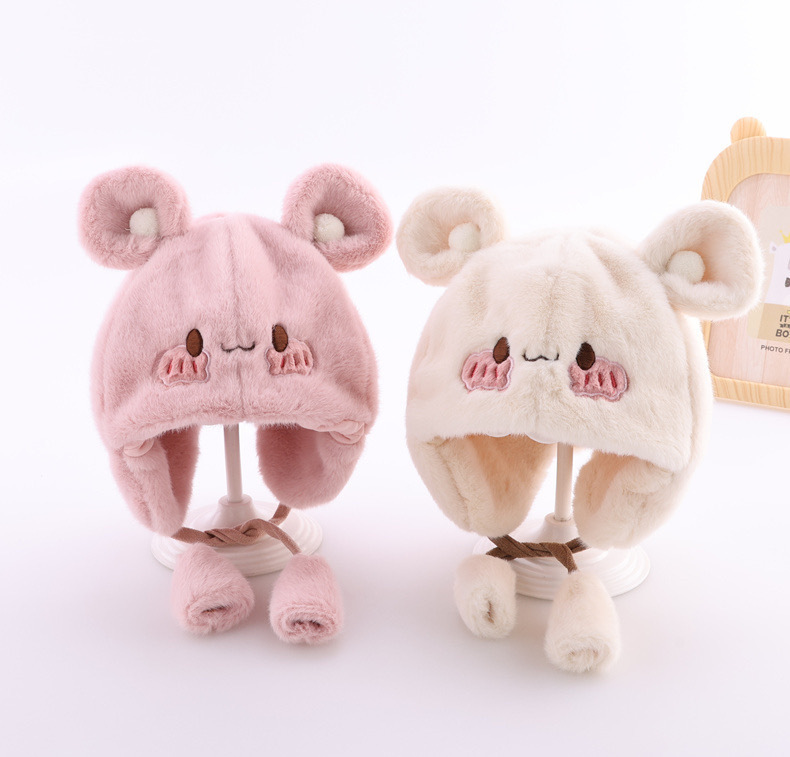 아기 모자 겨울 귀여운 슈퍼 귀여운 5-24 개월 아기 소년과 소녀 봉제 모자 겨울 따뜻한 어린이 귀 보호 모자