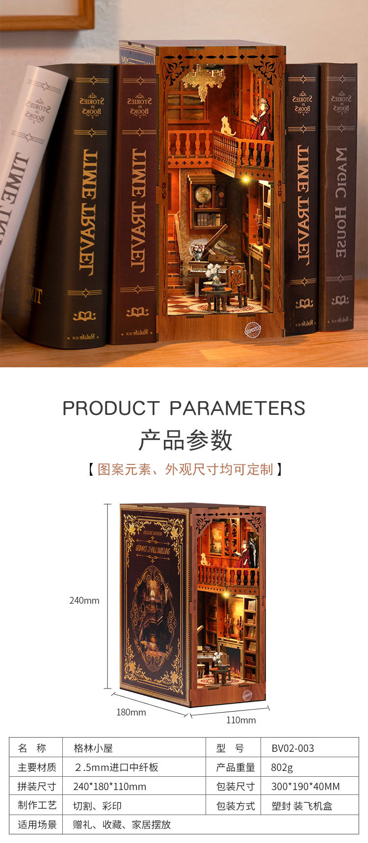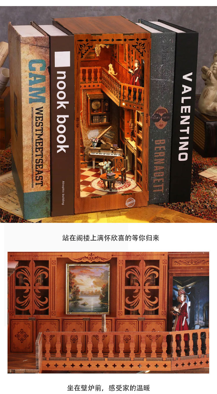 3D 입체 책 모델 diy 손으로 조립 입체 오두막 퍼즐 빛나는 북엔드 크리 에이 티브 생일 선물스토어 가기