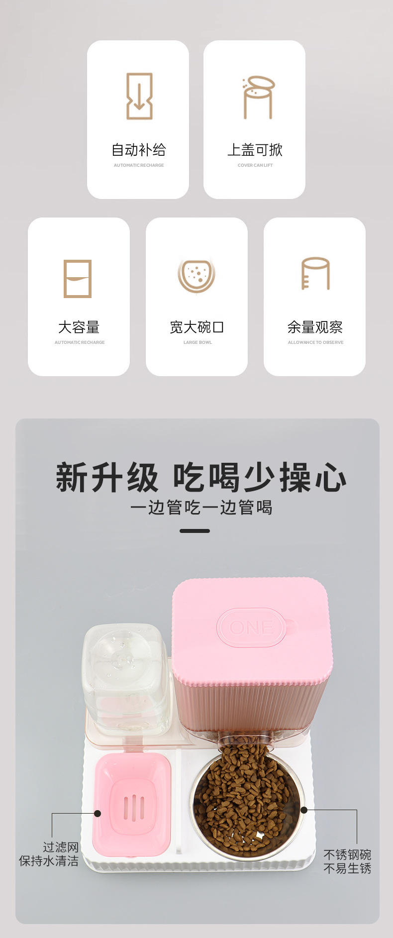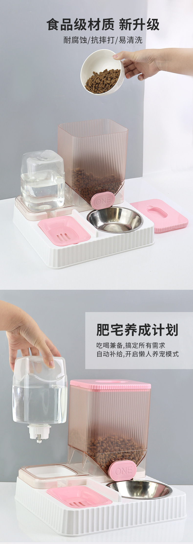 플라스틱 자동 고양이 급식기 및 급수기, 강아지 밥그릇, 고양이 그릇, 2-in-1 급수기, 고양이 그릇 공장 도매 애완동물 용품스토어 가기