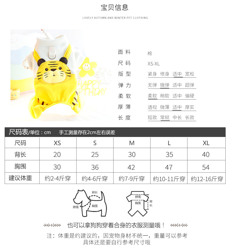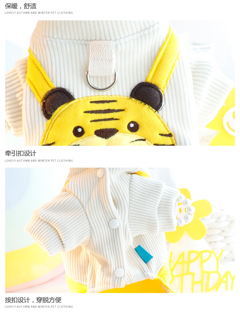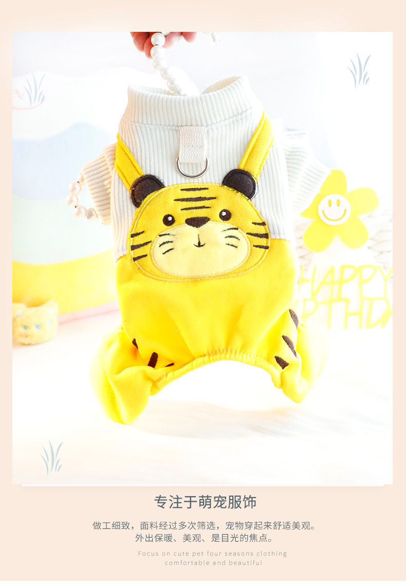 개 옷 가을 네 발 귀여운 호랑이 멜빵 바지 세트 견인 작은 개 테디 애완 동물 5292스토어 가기