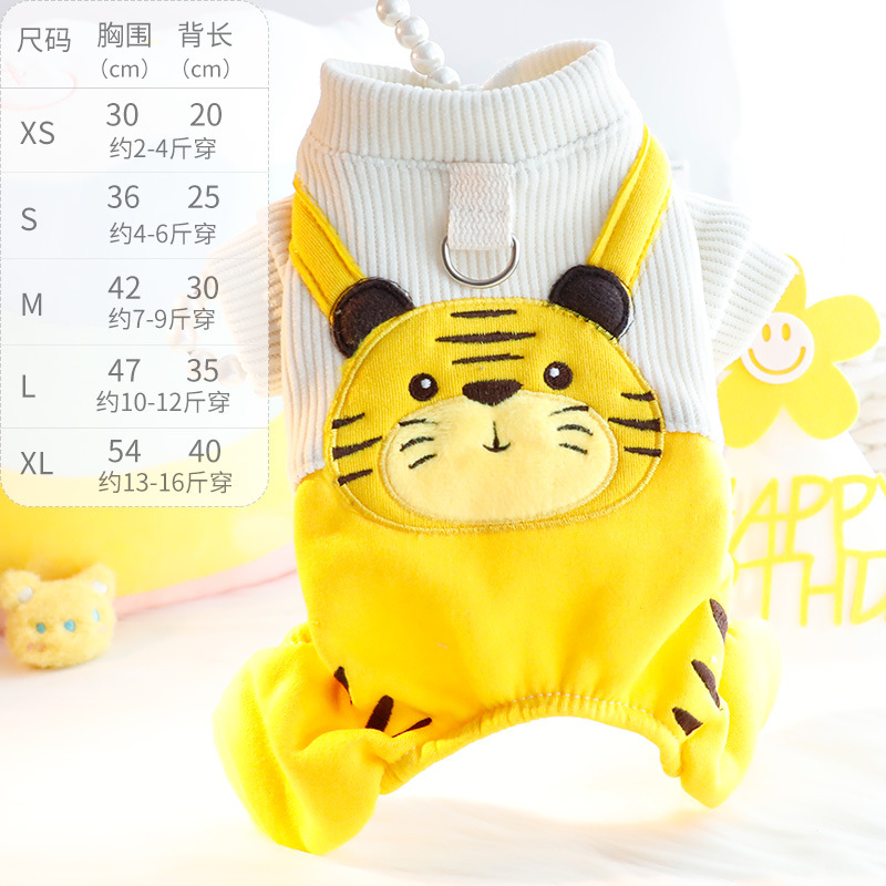 개 옷 가을 네 발 귀여운 호랑이 멜빵 바지 세트 견인 작은 개 테디 애완 동물 5292