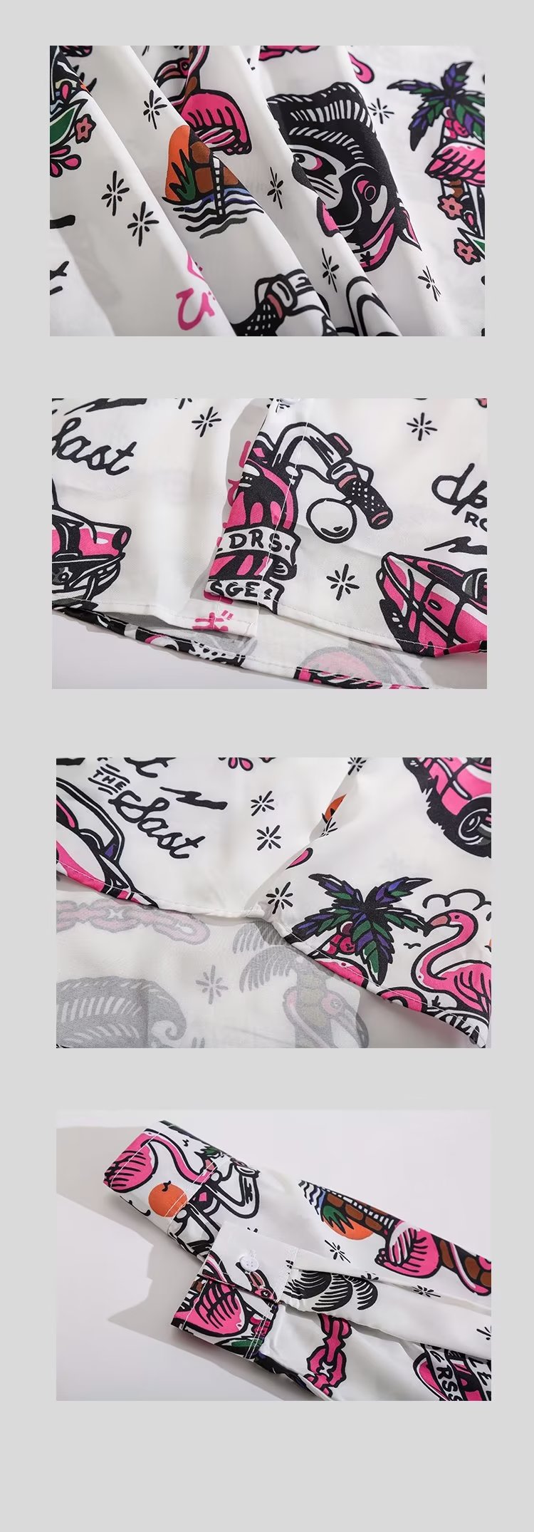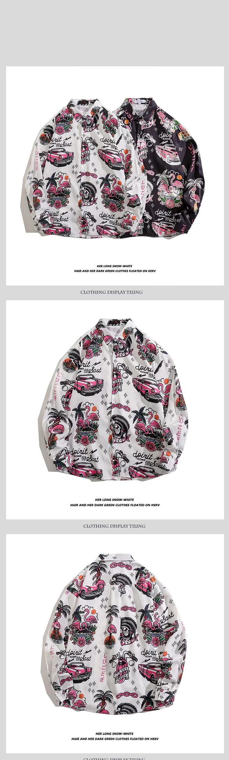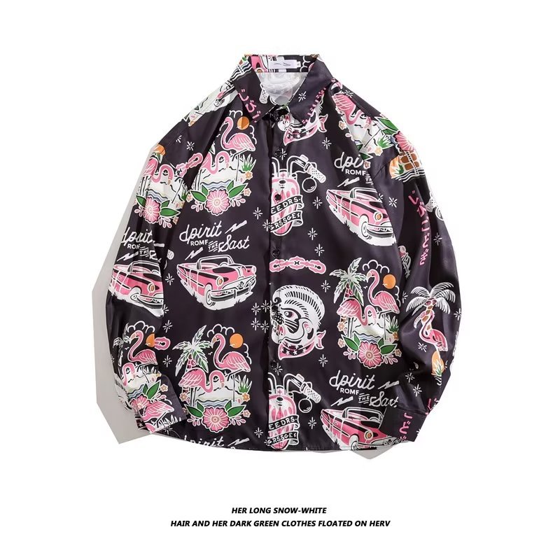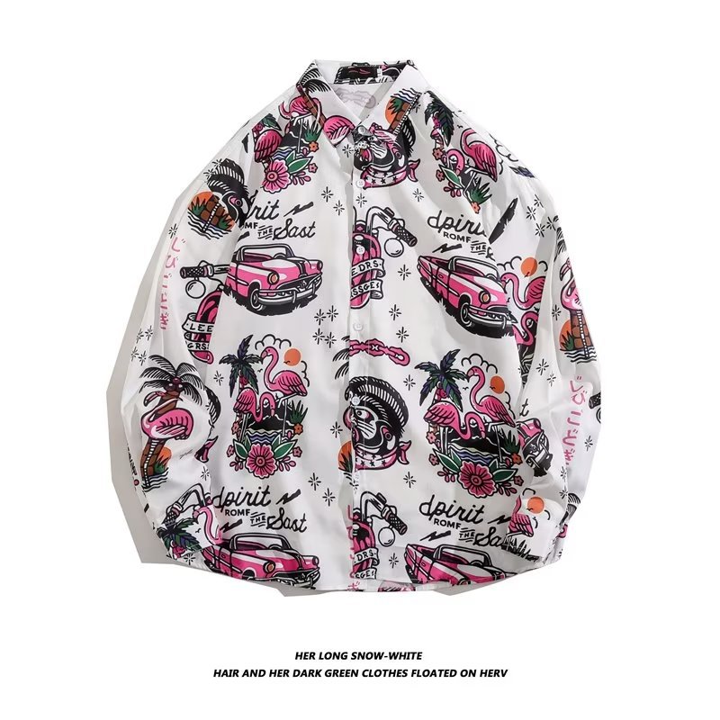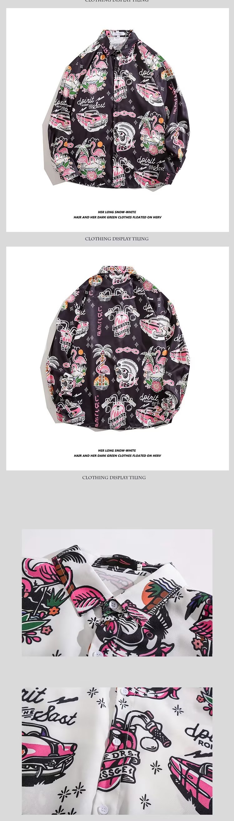 2024 만화 캐주얼 긴 소매 꽃 셔츠 남자의 유행 일본 셔츠 대학 스타일 십대 세련된 디자인 센스 탑스토어 가기
