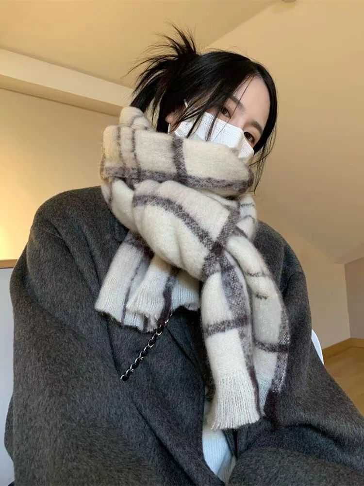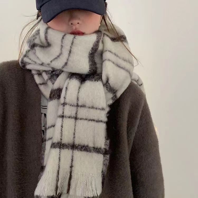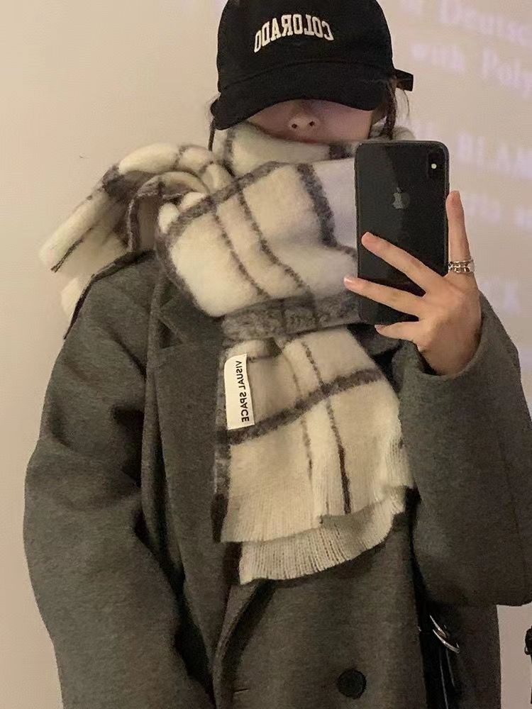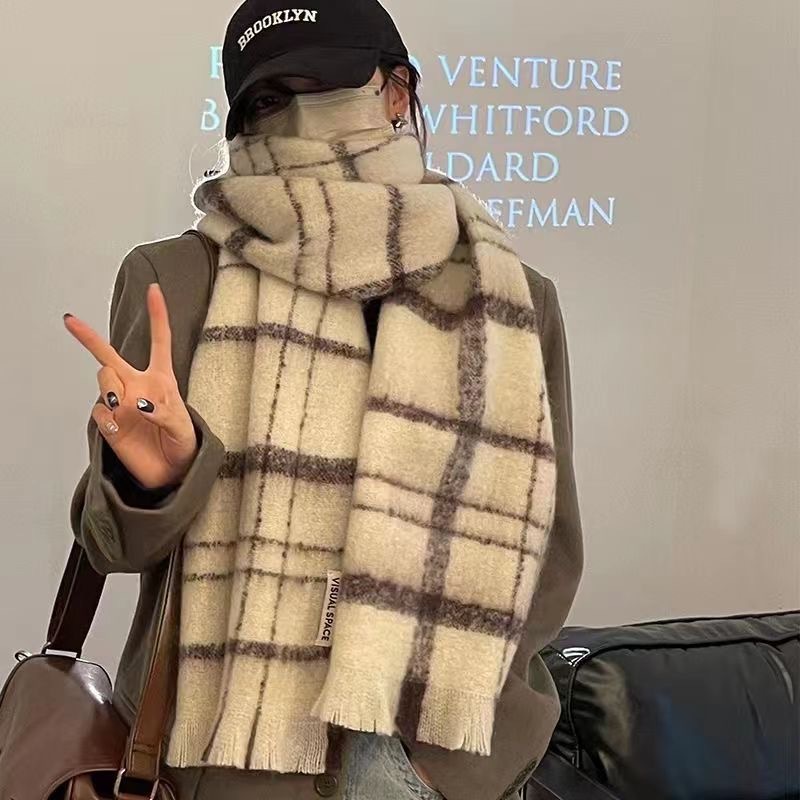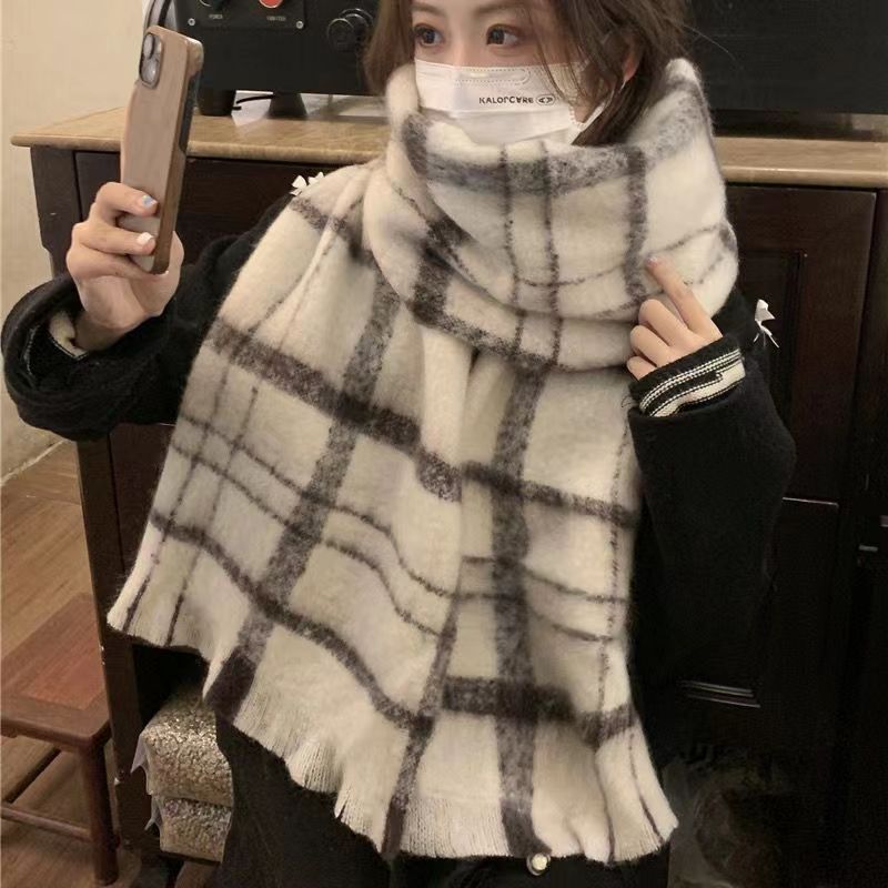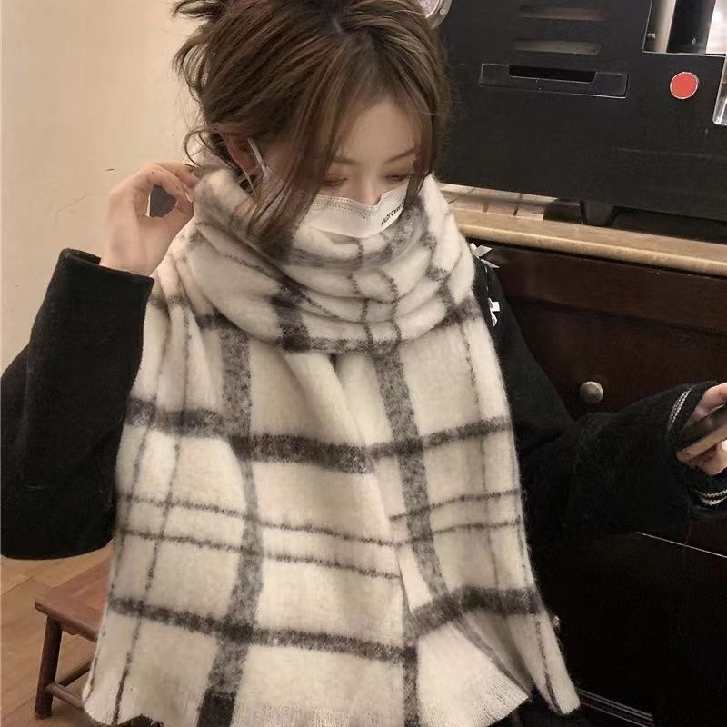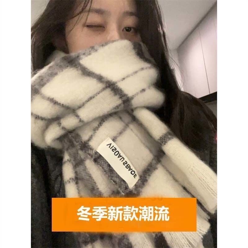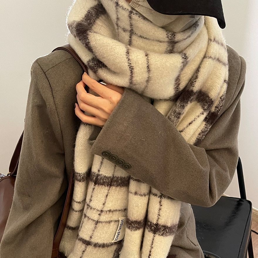 분위기 감각 격자 무늬 스카프 여성의 겨울 조커 복고풍 따뜻한 두꺼운 새로운 학생 스카프 제조 업체의 한국어 버전 도매스토어 가기