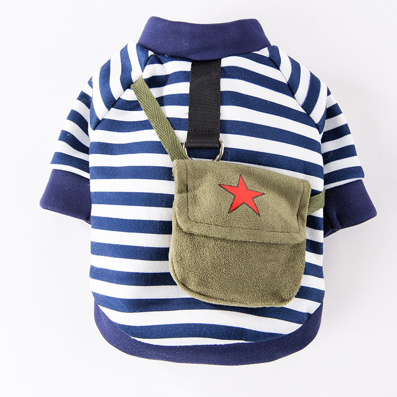 가을 개 옷 스트라이프 네이비 스타일 소형 개 가을과 겨울 따뜻한 견인 가능 메신저 가방 고양이 애완 동물 스웨터
