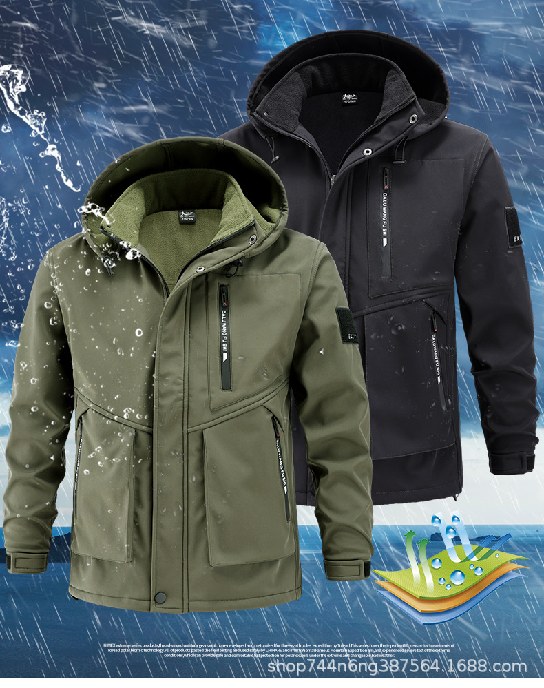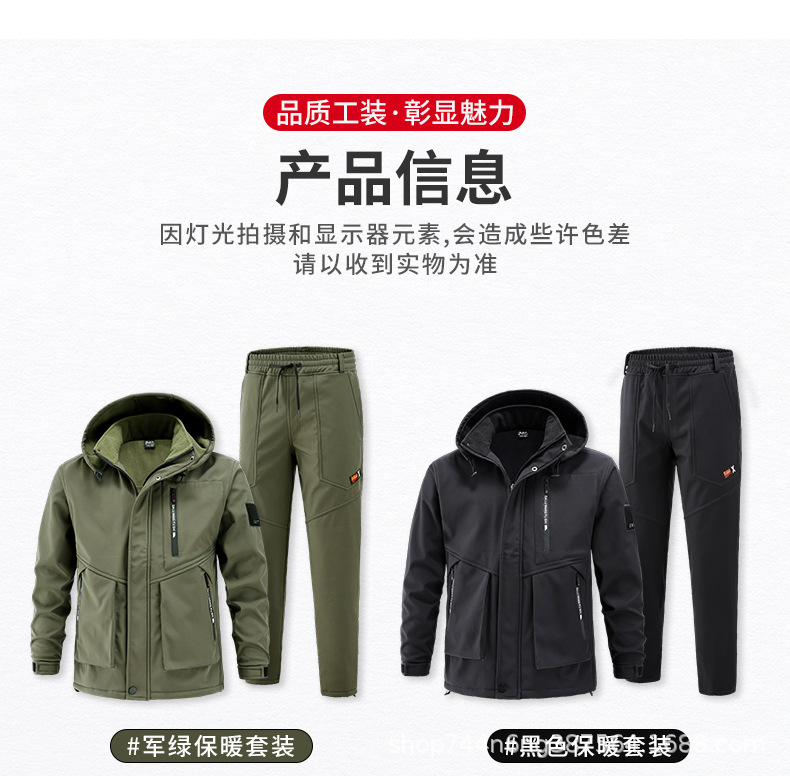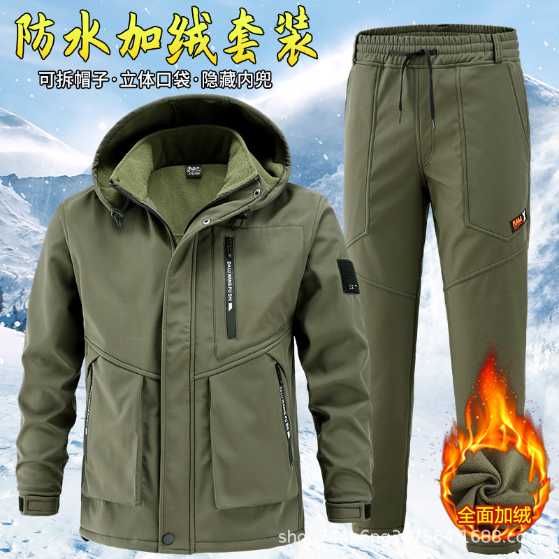 겨울 충전 옷 세트 남자의 기모 두꺼운 방풍 방수 따뜻한 옷 사이클링 야외 등산 세트스토어 가기