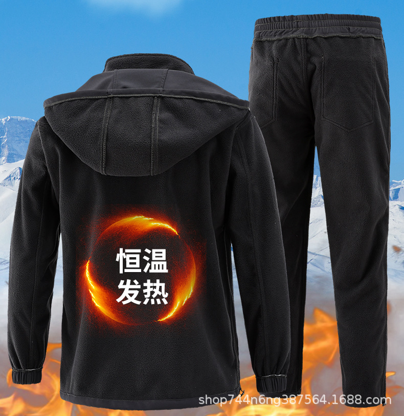 겨울 충전 옷 세트 남자의 기모 두꺼운 방풍 방수 따뜻한 옷 사이클링 야외 등산 세트