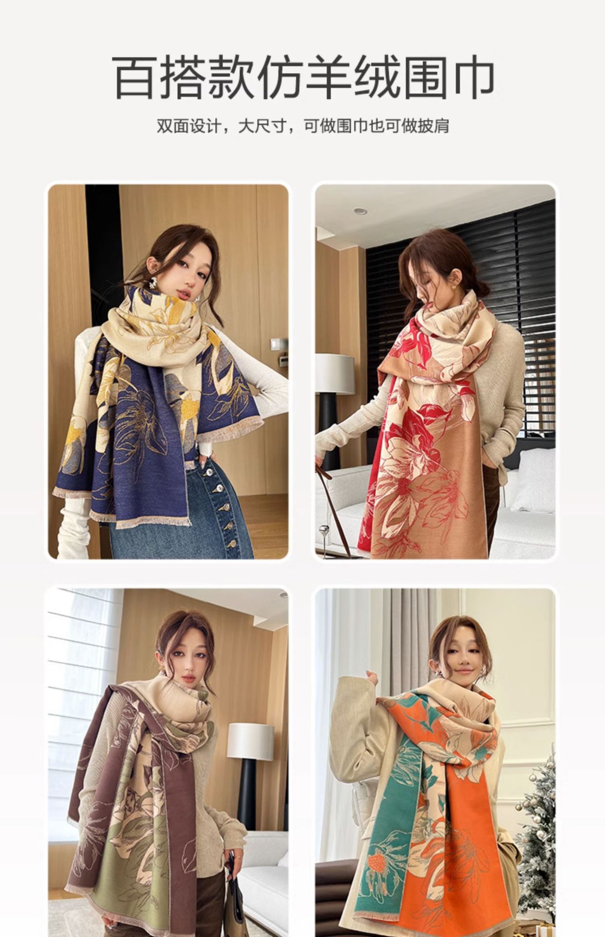 스카프 여성용 겨울 내셔널 스타일 내셔널 패션 모든 매치 두꺼운 캐시미어 에어컨 룸 숄 목 보호 스카프 외부 따뜻한 이중 사용스토어 가기