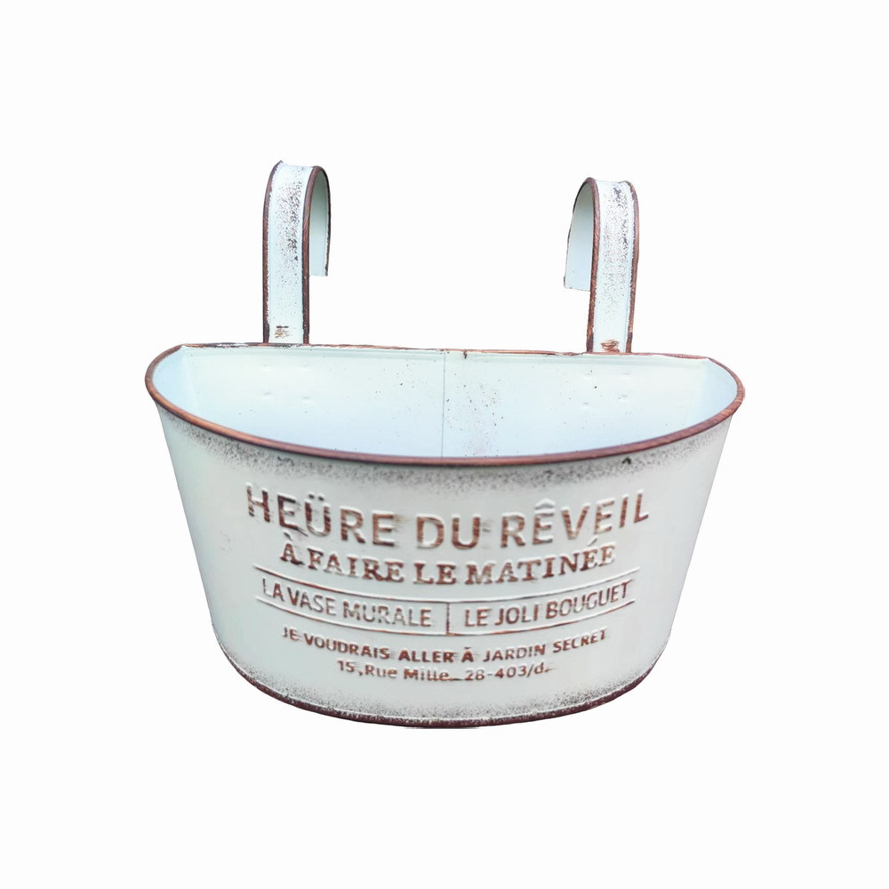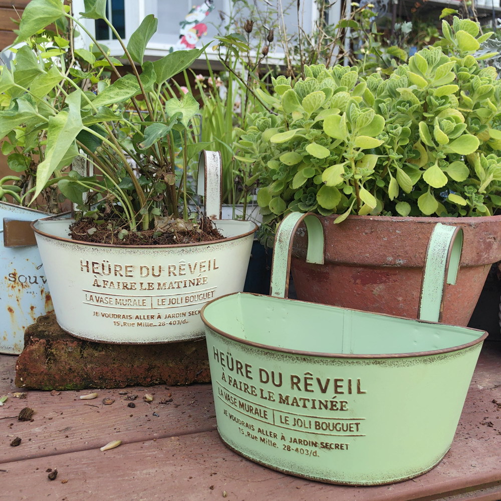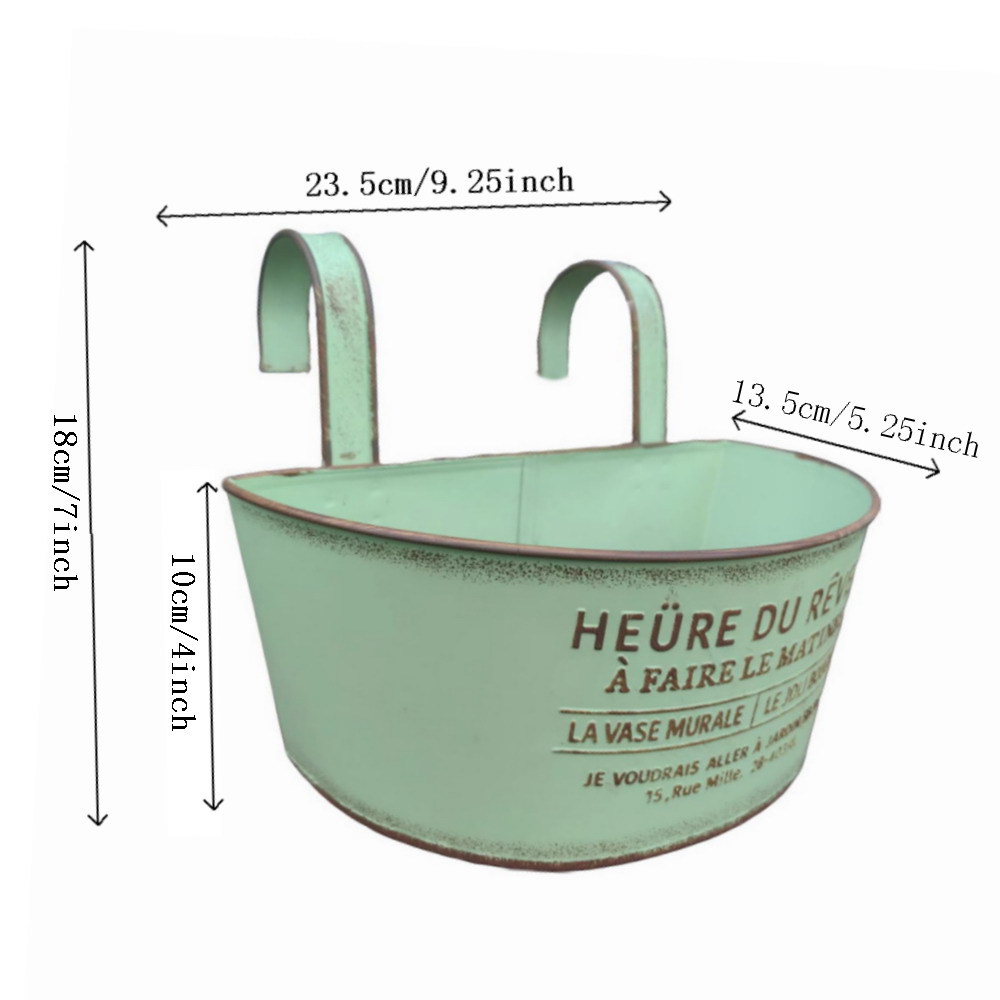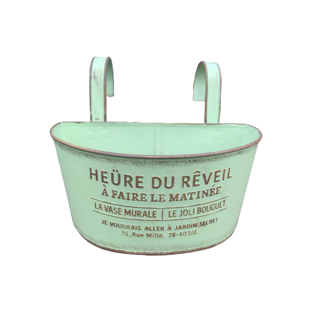 Youmei 재고 스트레이트 헤어 복고풍 일본식 반 타원형 발코니 교수형 보드 정원 장식품 철 화분 꽃병