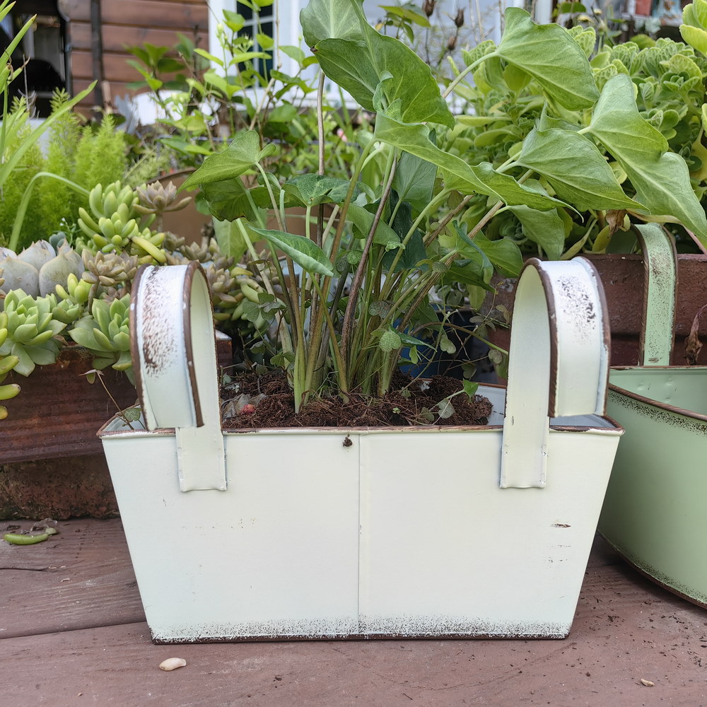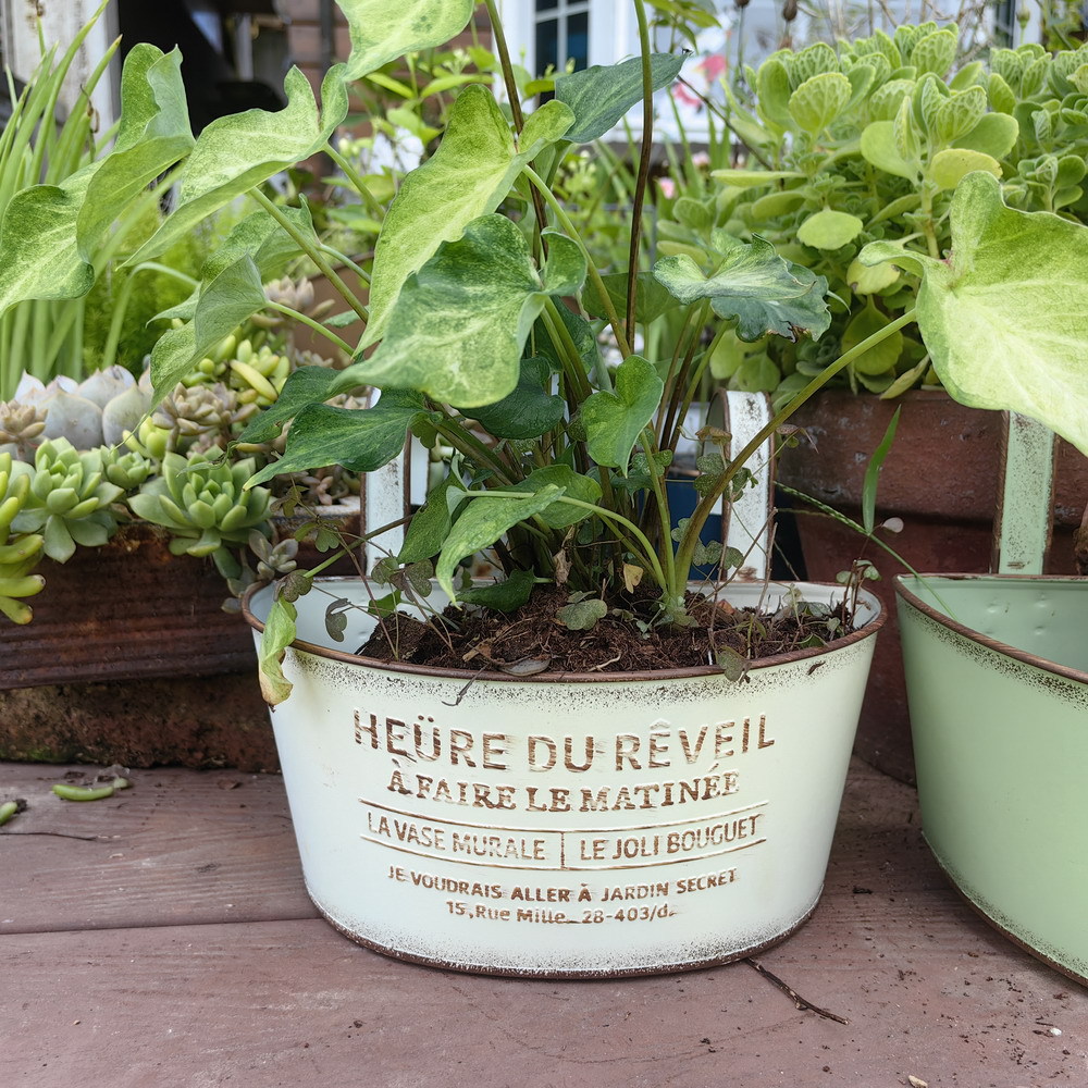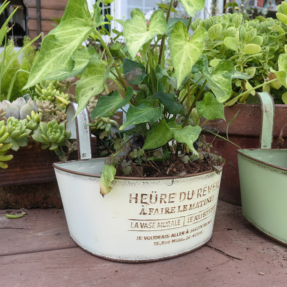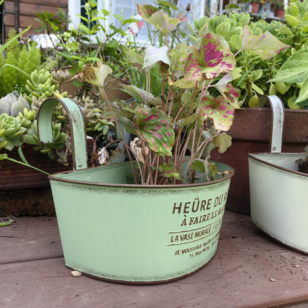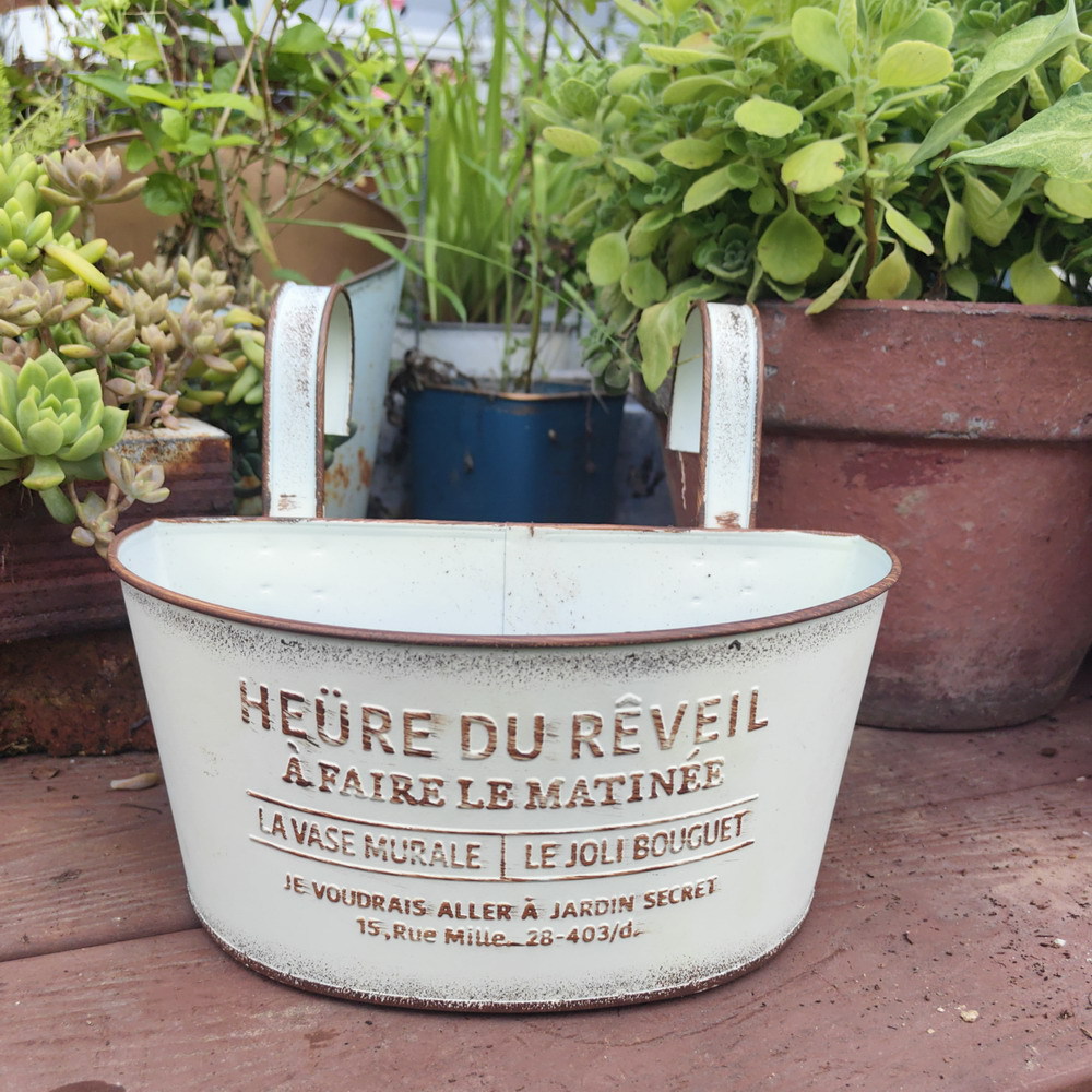 Youmei 재고 스트레이트 헤어 복고풍 일본식 반 타원형 발코니 교수형 보드 정원 장식품 철 화분 꽃병