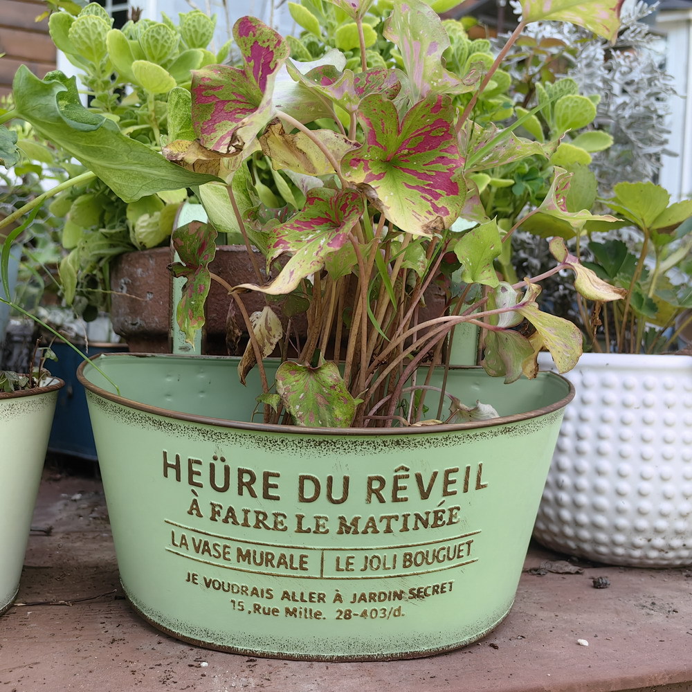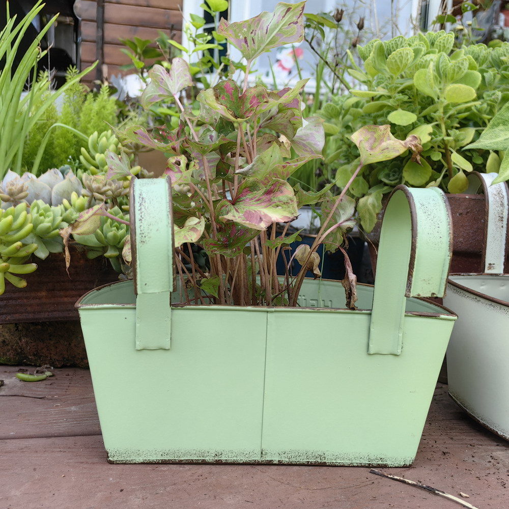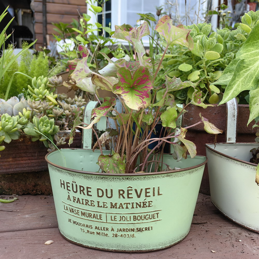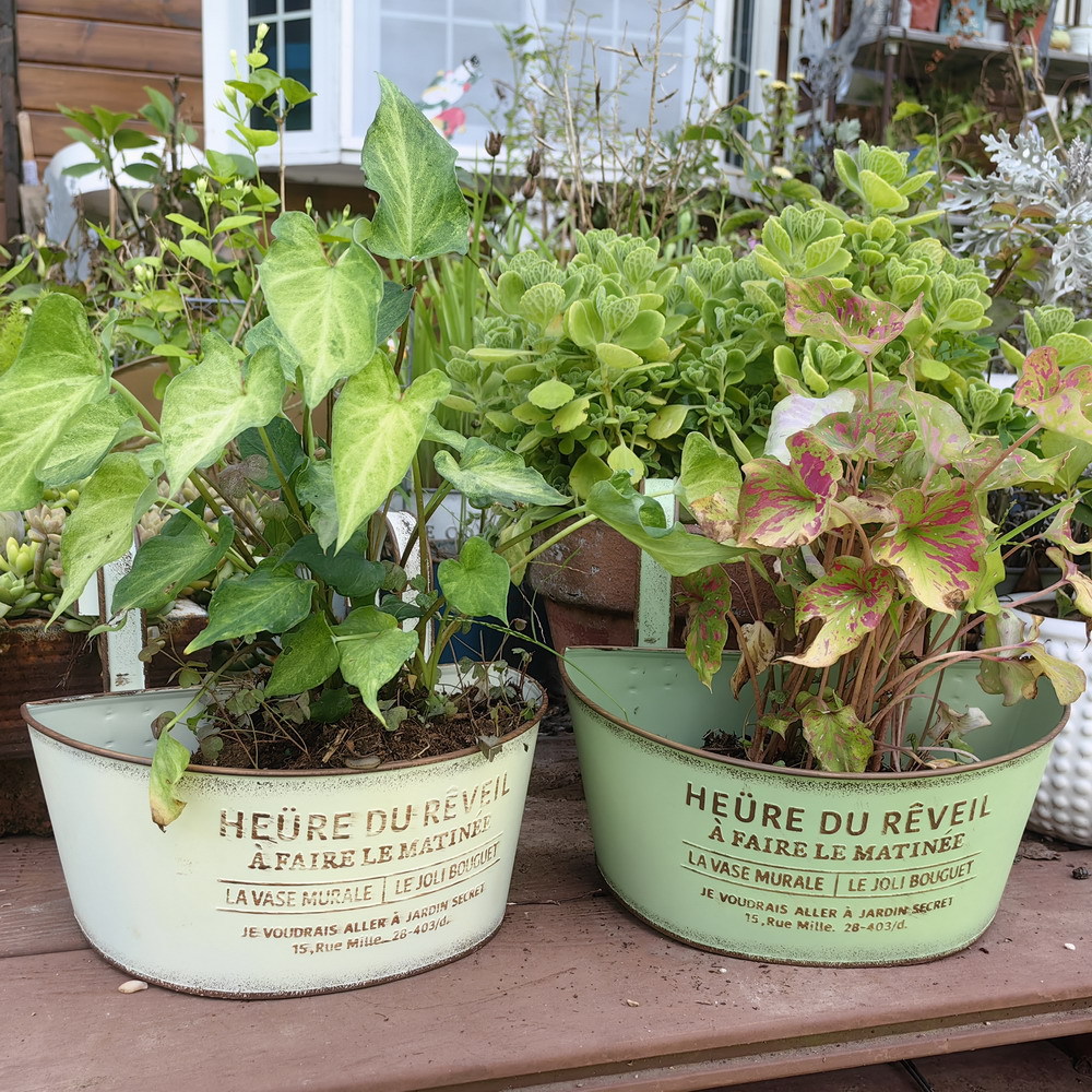 Youmei 재고 스트레이트 헤어 복고풍 일본식 반 타원형 발코니 교수형 보드 정원 장식품 철 화분 꽃병