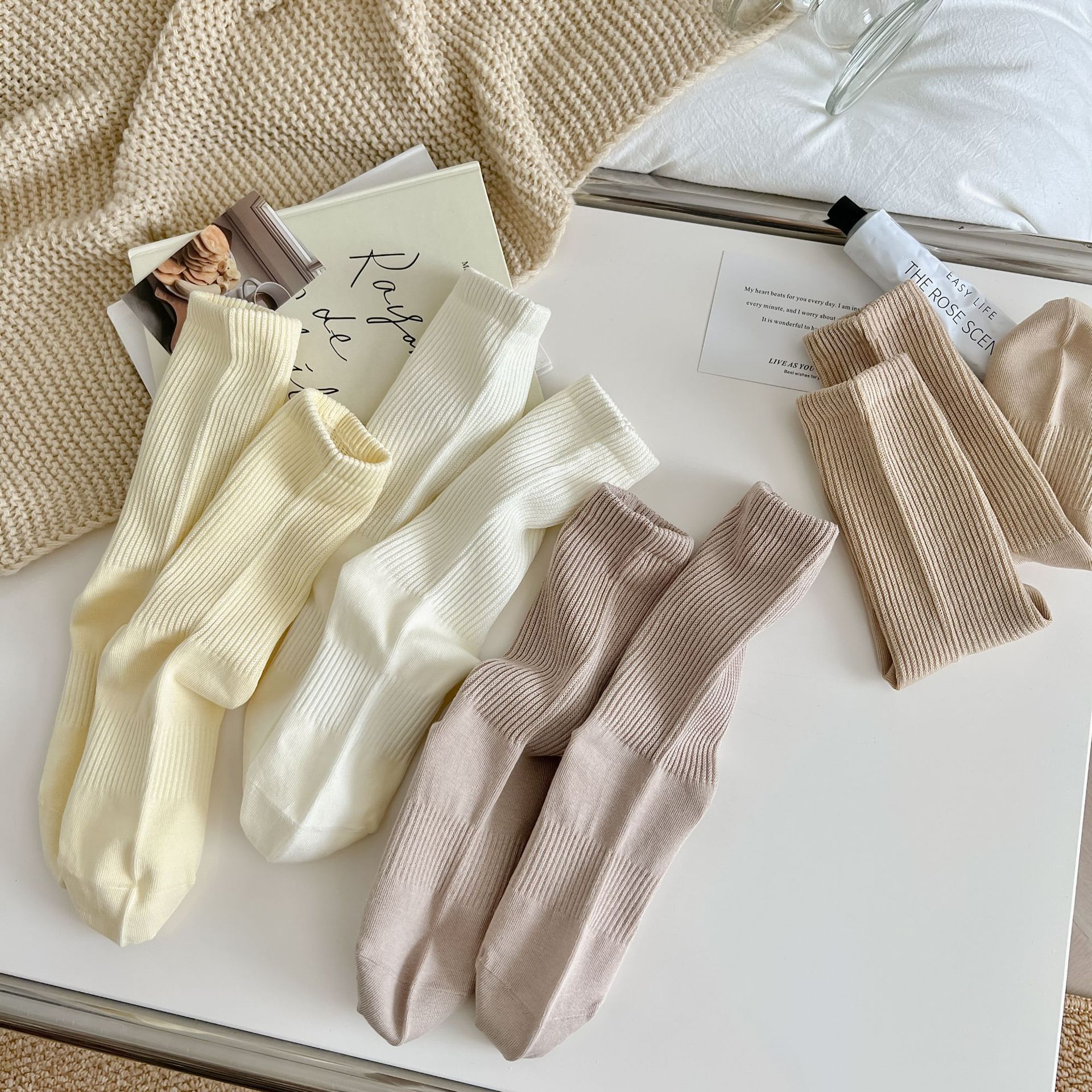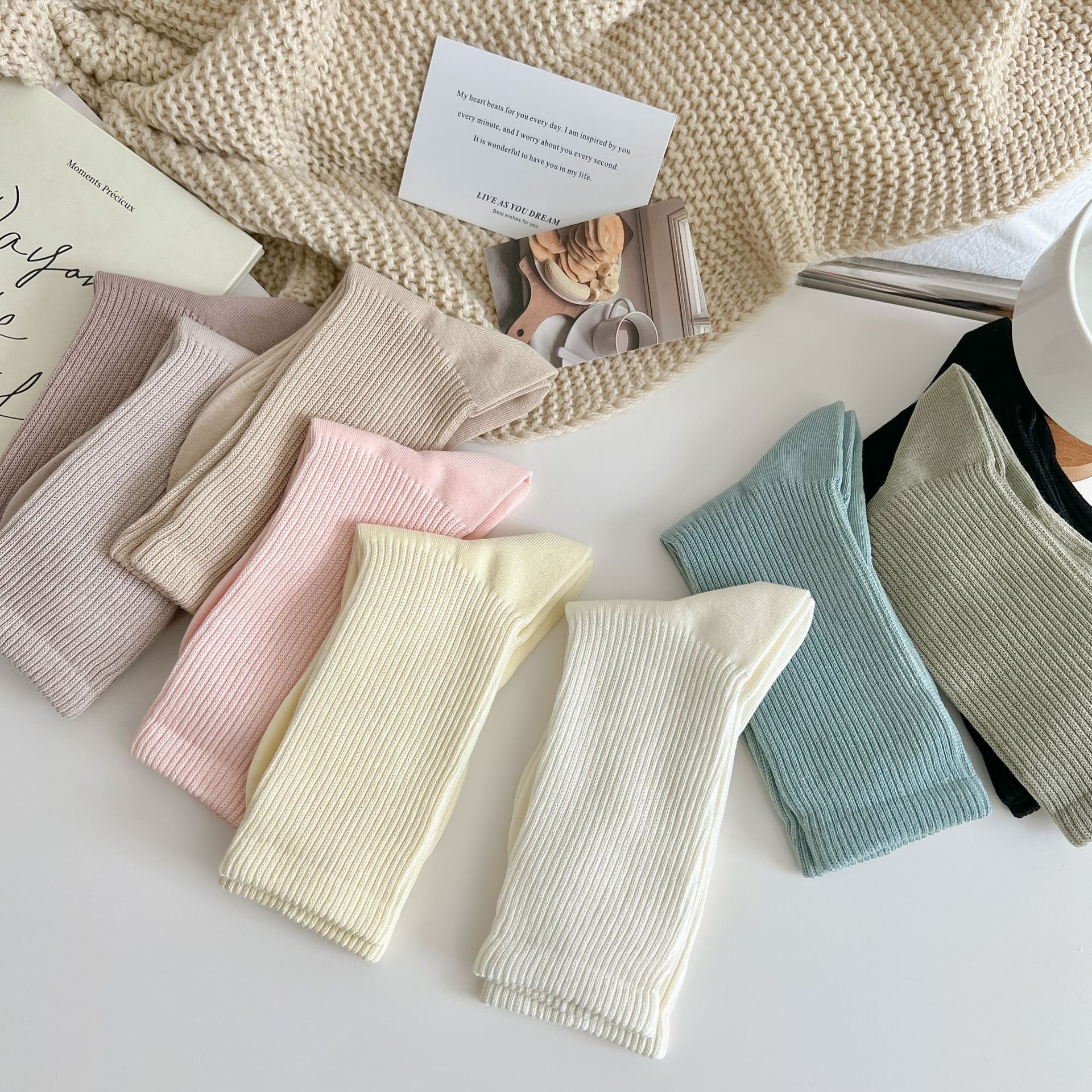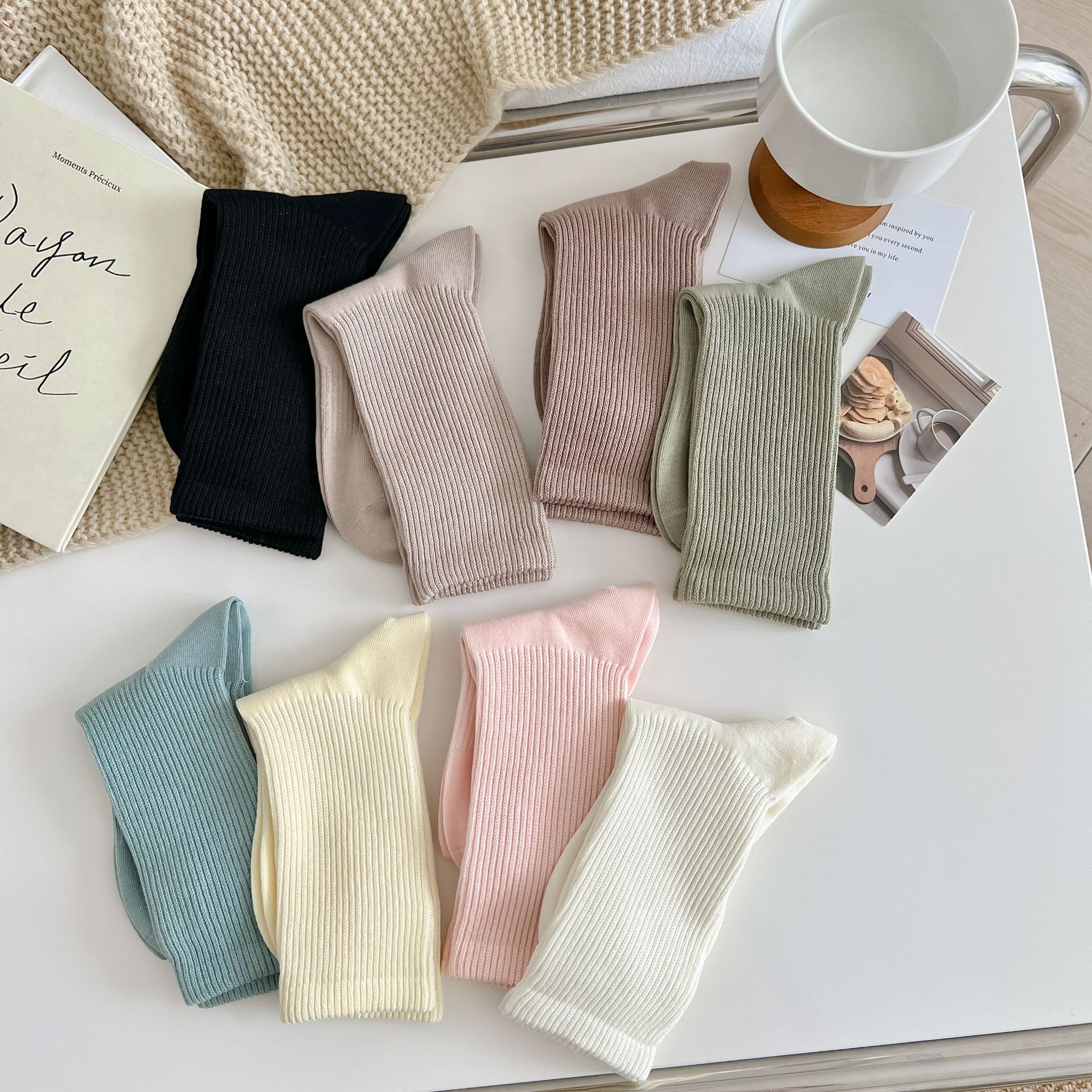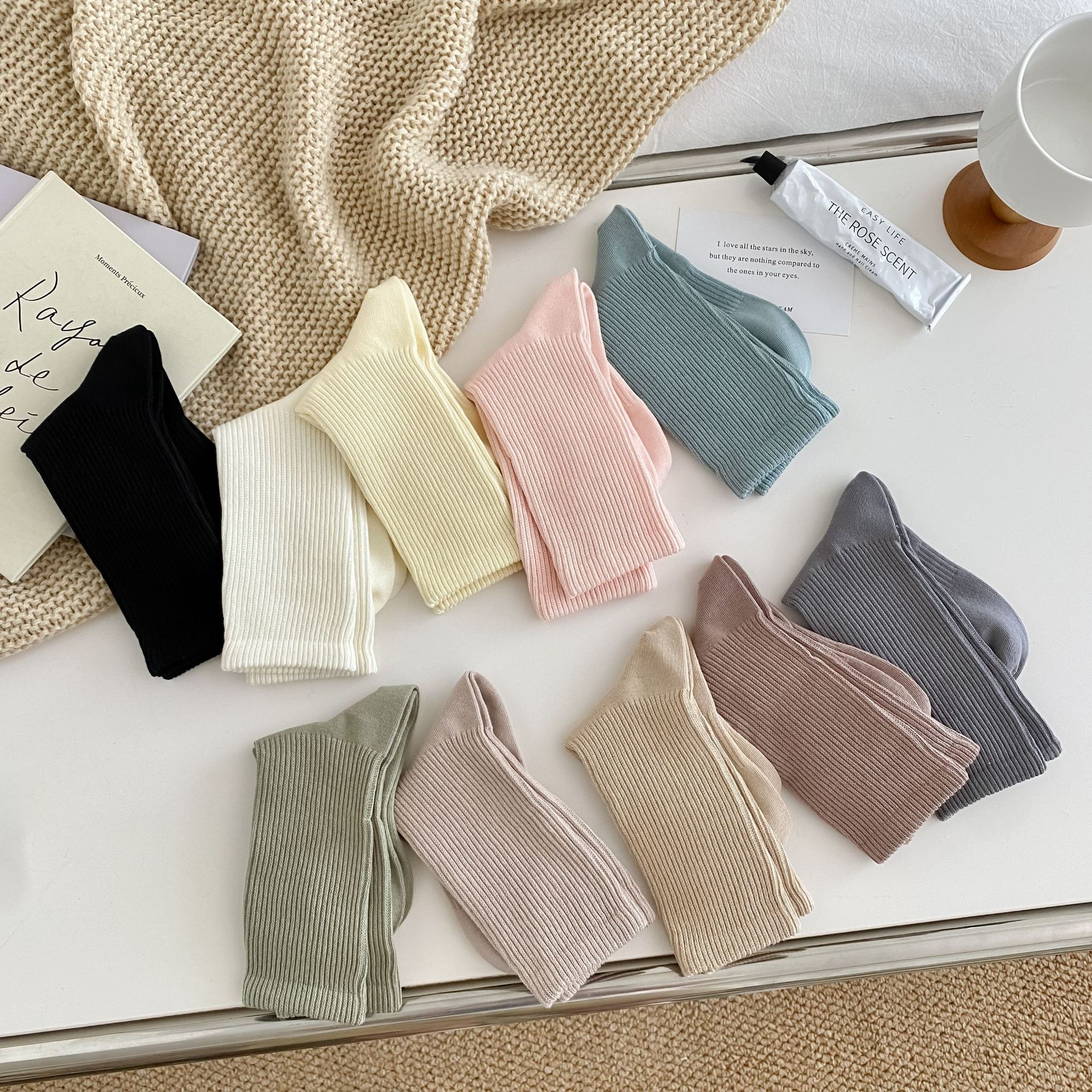 여성용 단색 양말 봄 가을 겨울 새로운 2023 여성 양말 한국 스타일 작은 얇은 면 양말