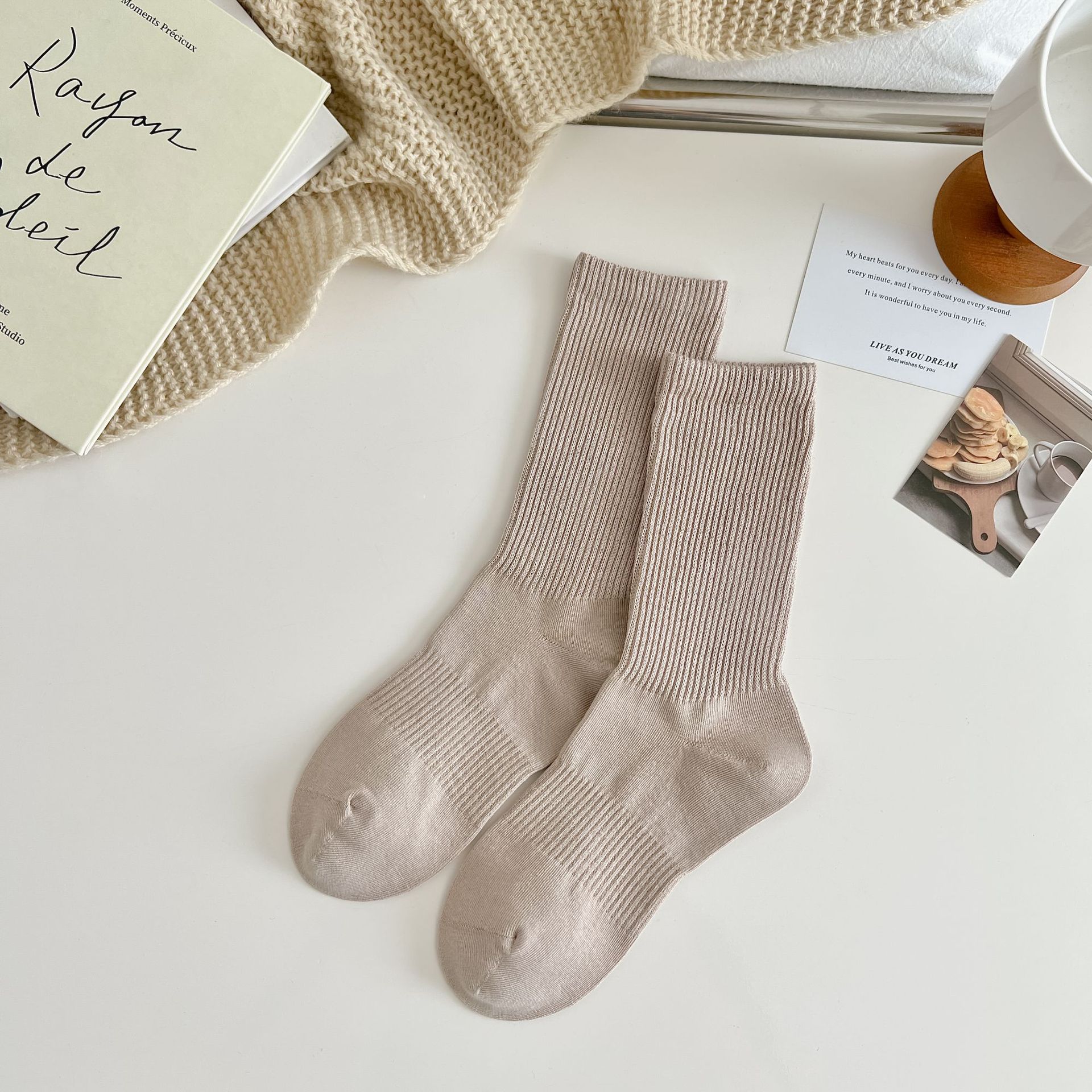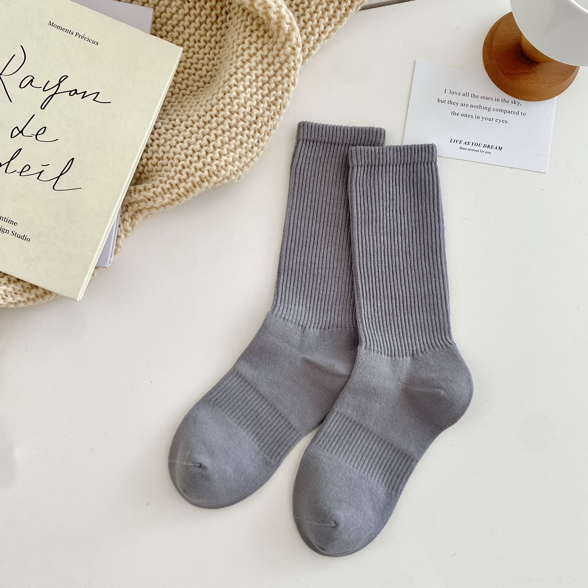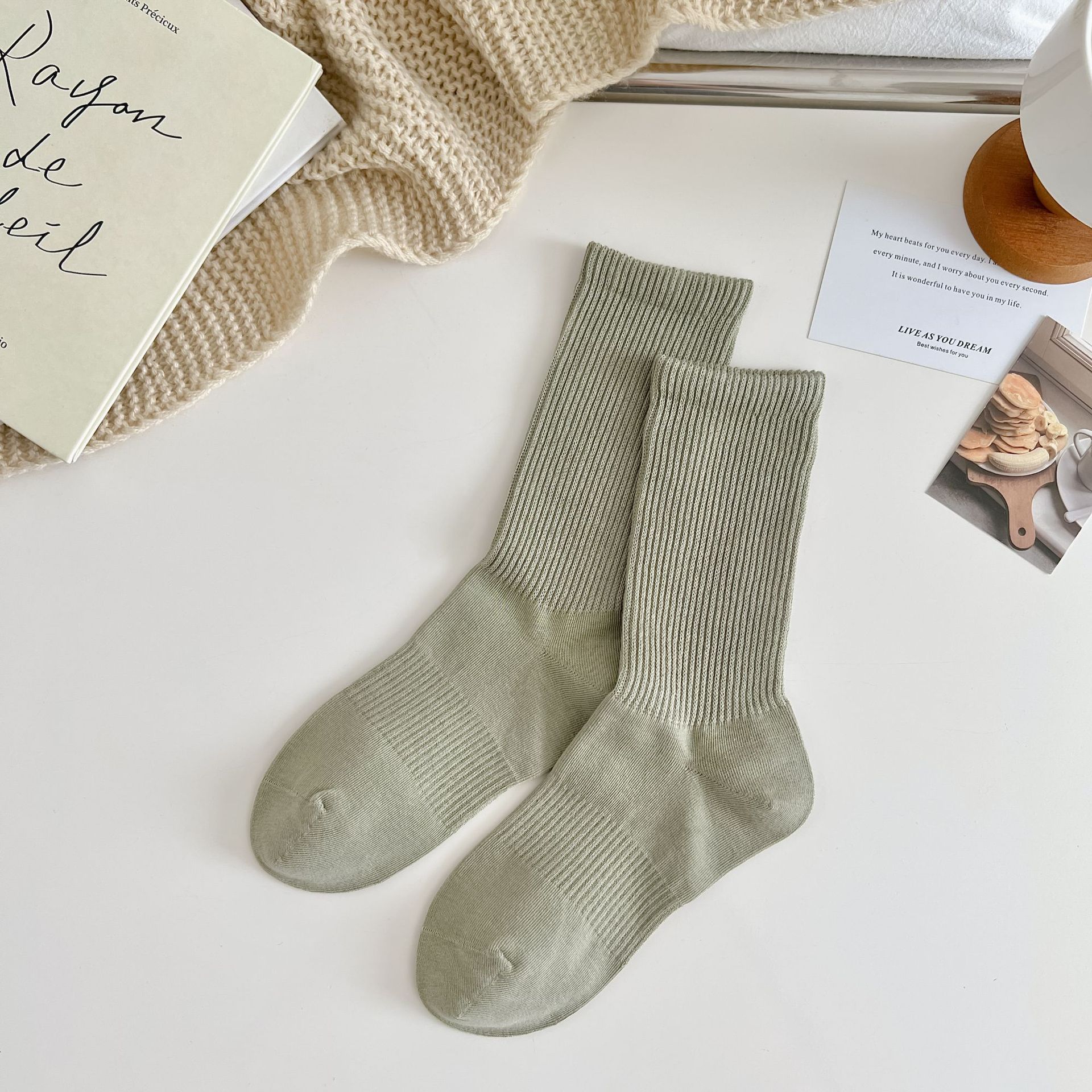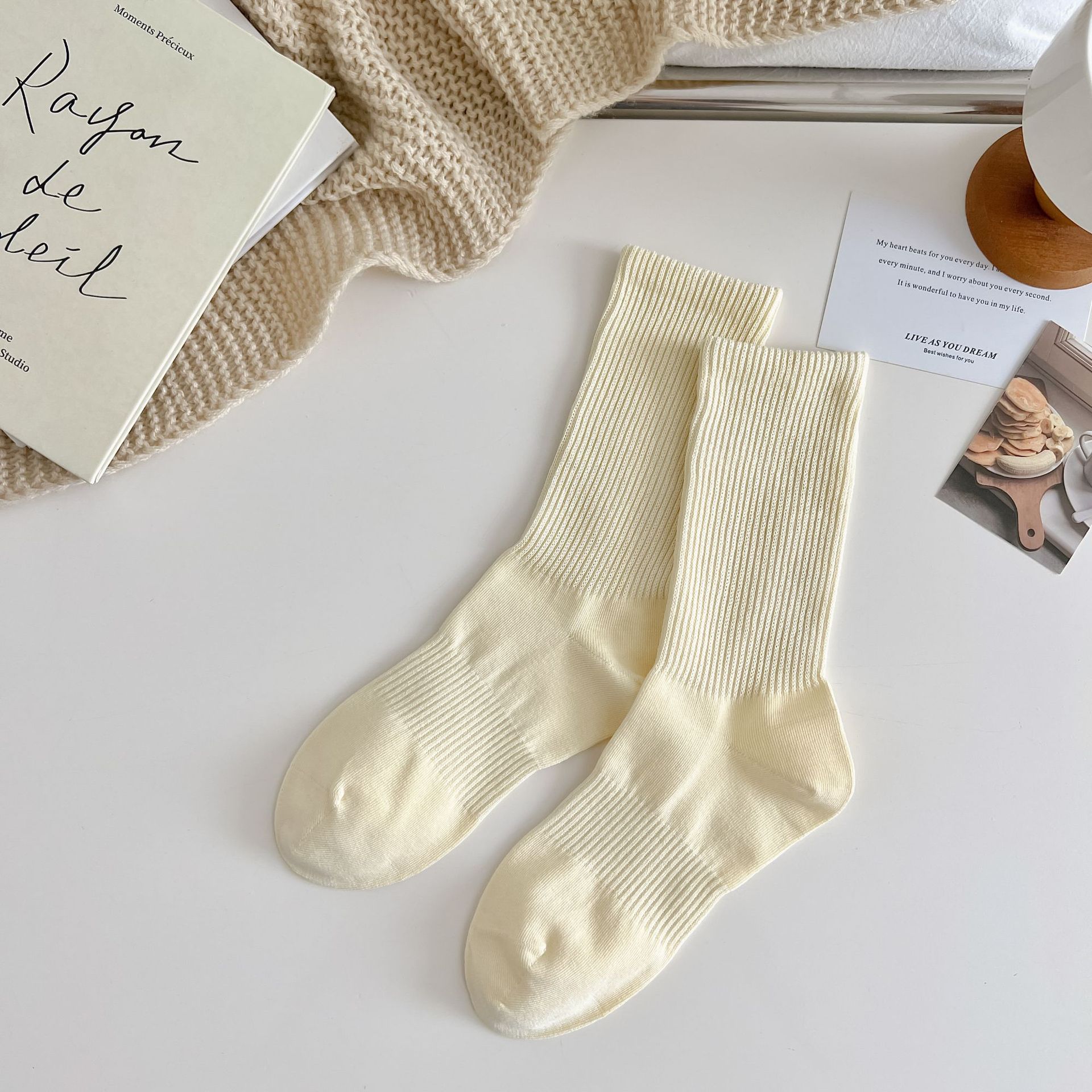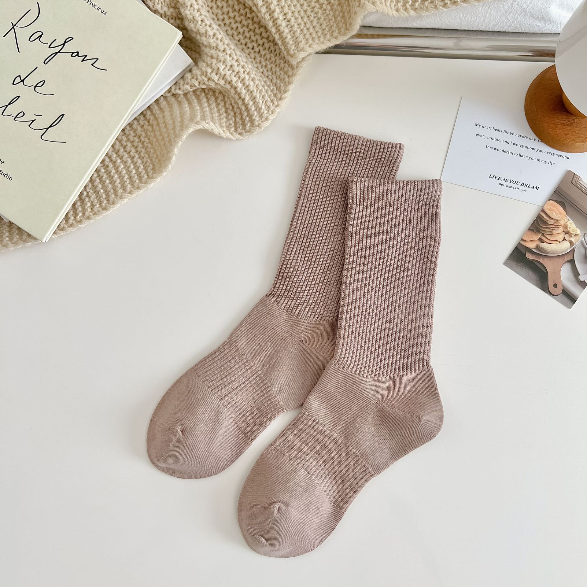 여성용 단색 양말 봄 가을 겨울 새로운 2023 여성 양말 한국 스타일 작은 얇은 면 양말