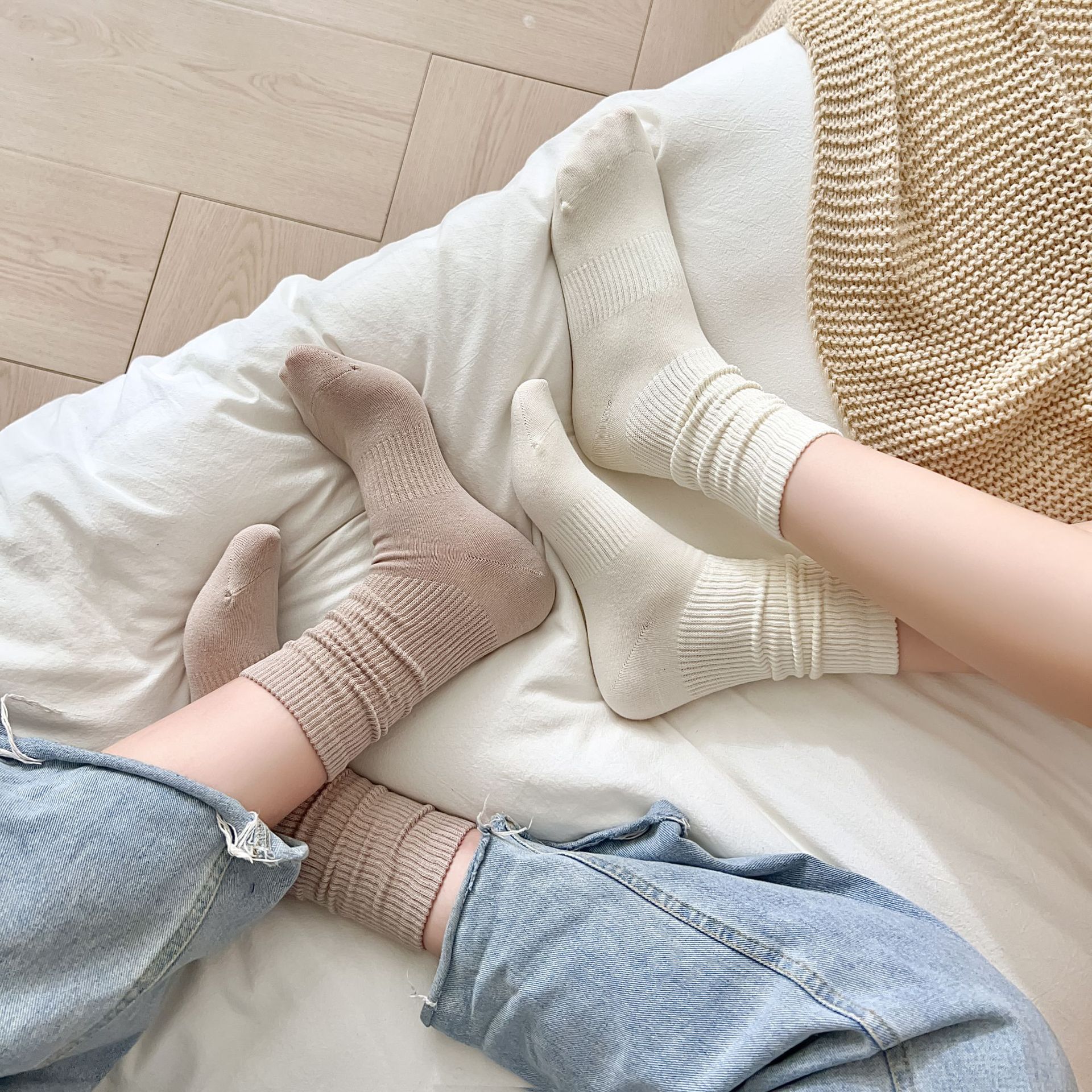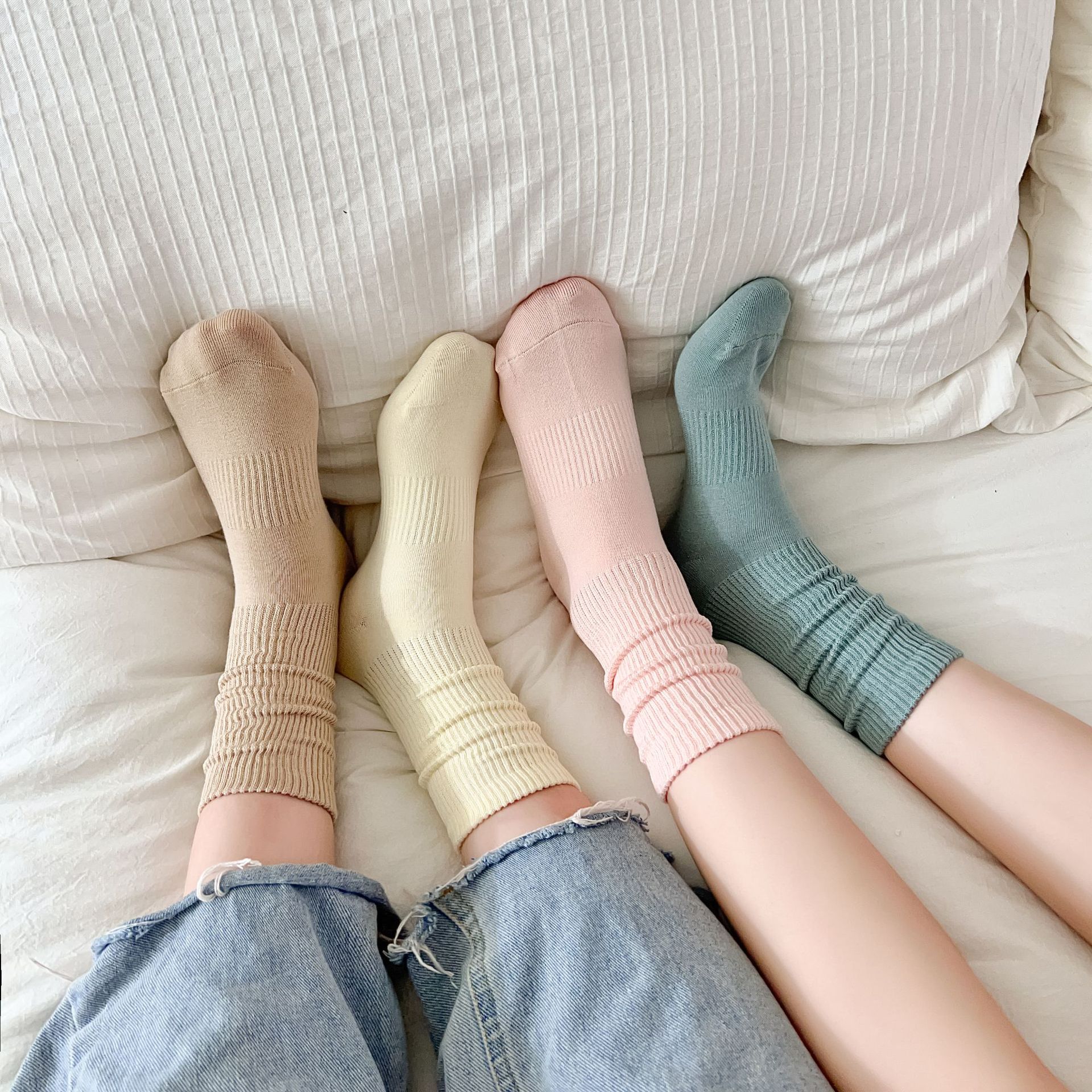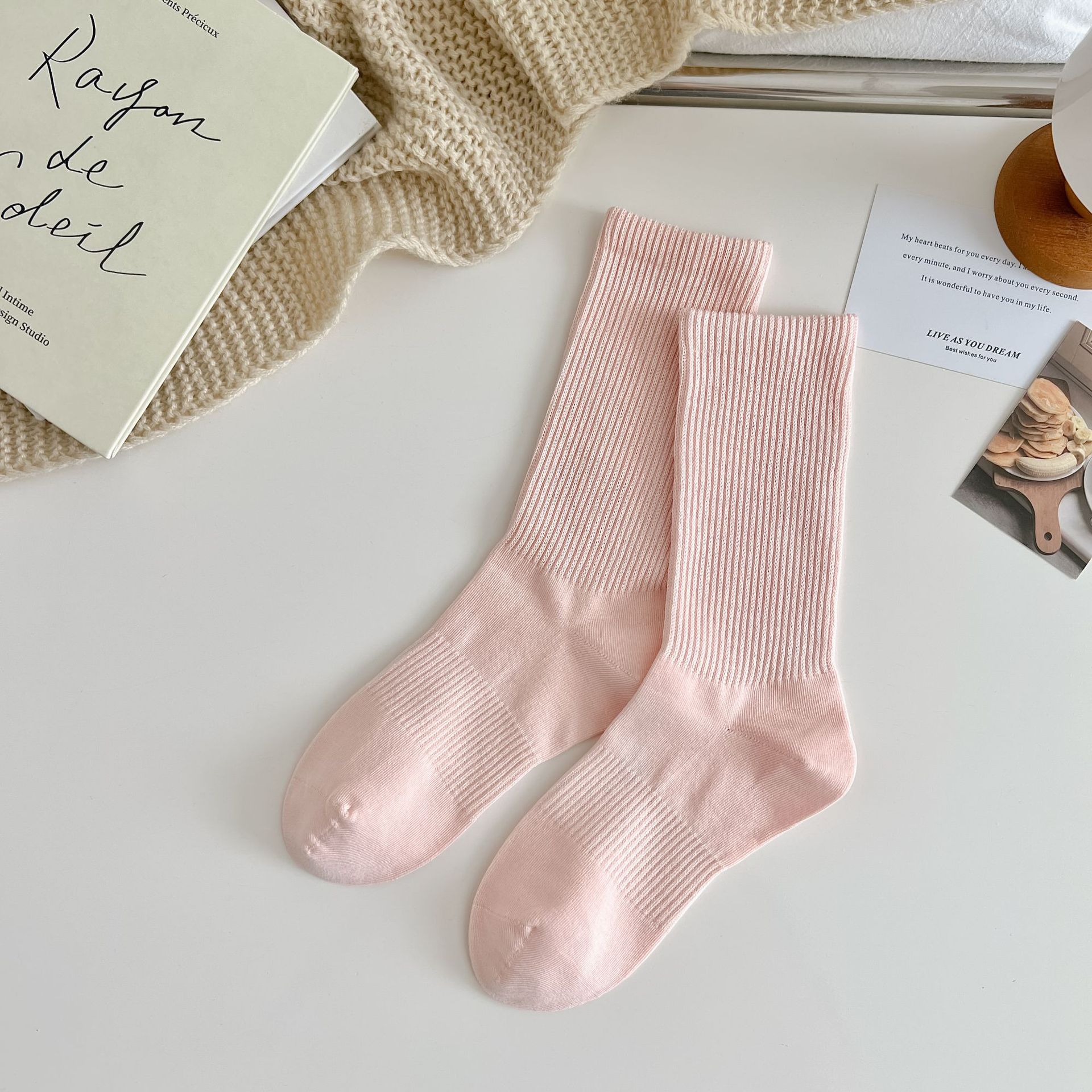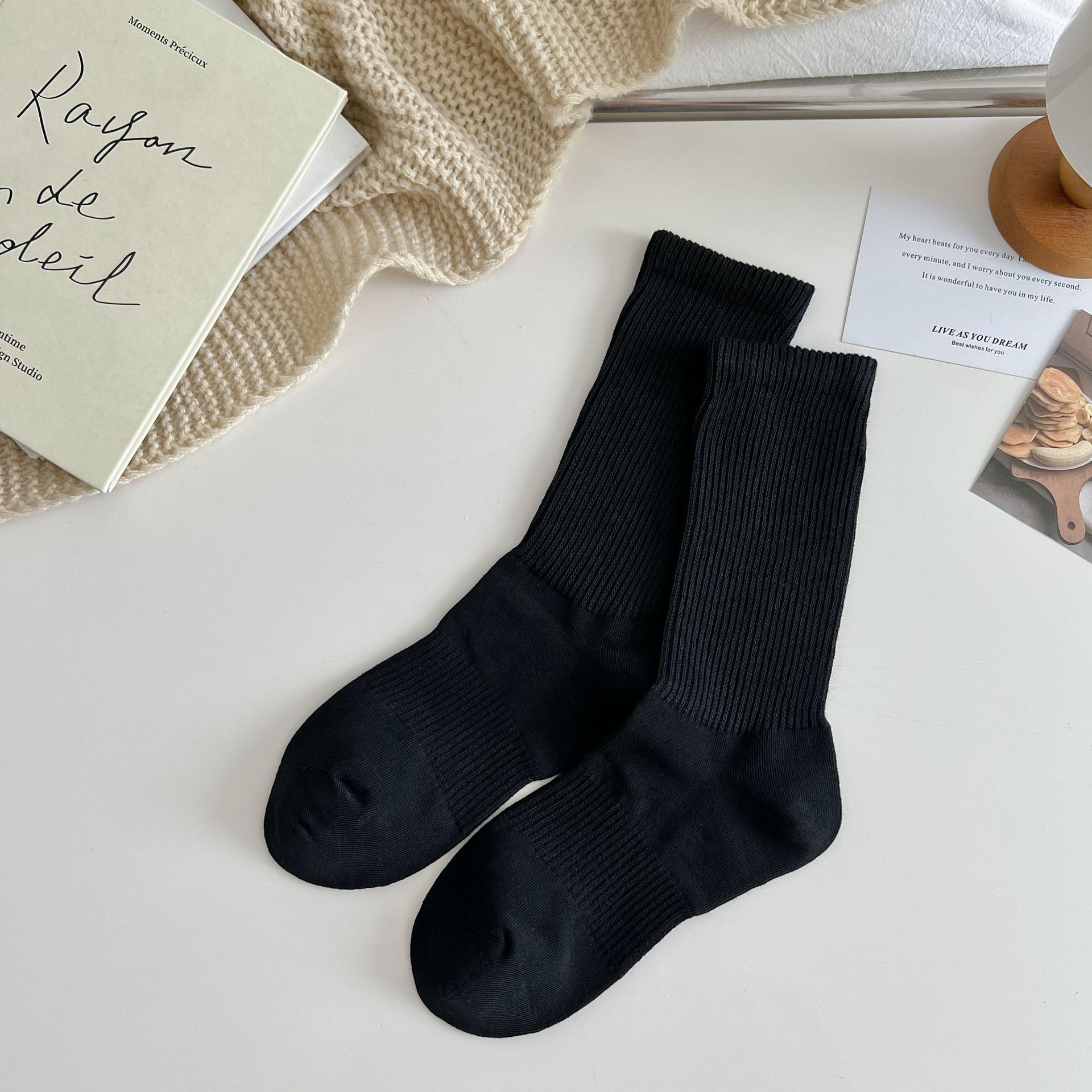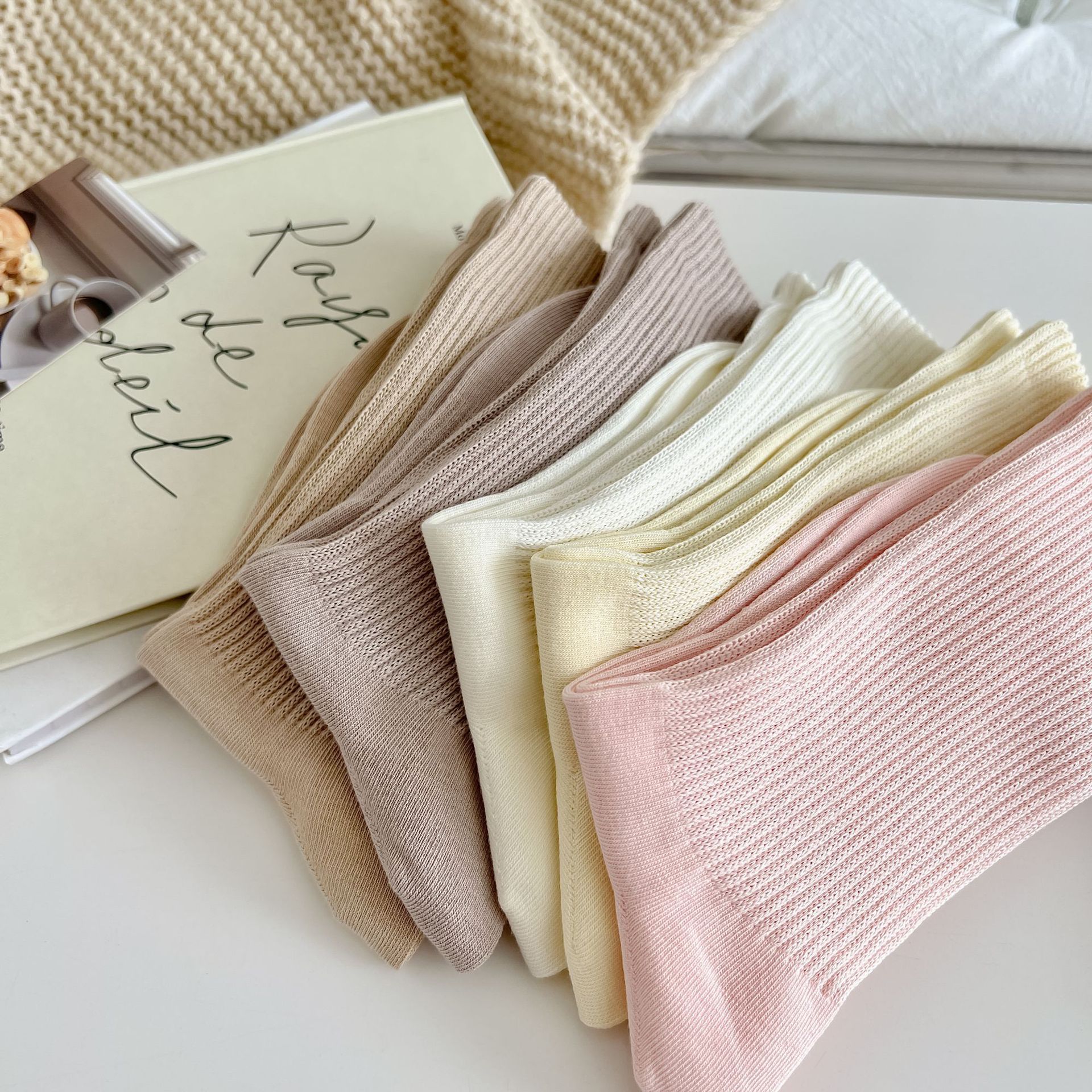 여성용 단색 양말 봄 가을 겨울 새로운 2023 여성 양말 한국 스타일 작은 얇은 면 양말스토어 가기