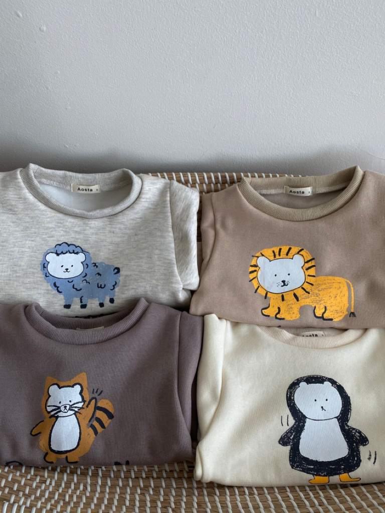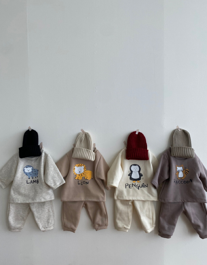 동물의 세계에서 한국 스타일 인쇄 귀여운 새로운 긴팔 바지 세트 아기 소년과 소녀 봄과 가을 새로운 모든 매치스토어 가기