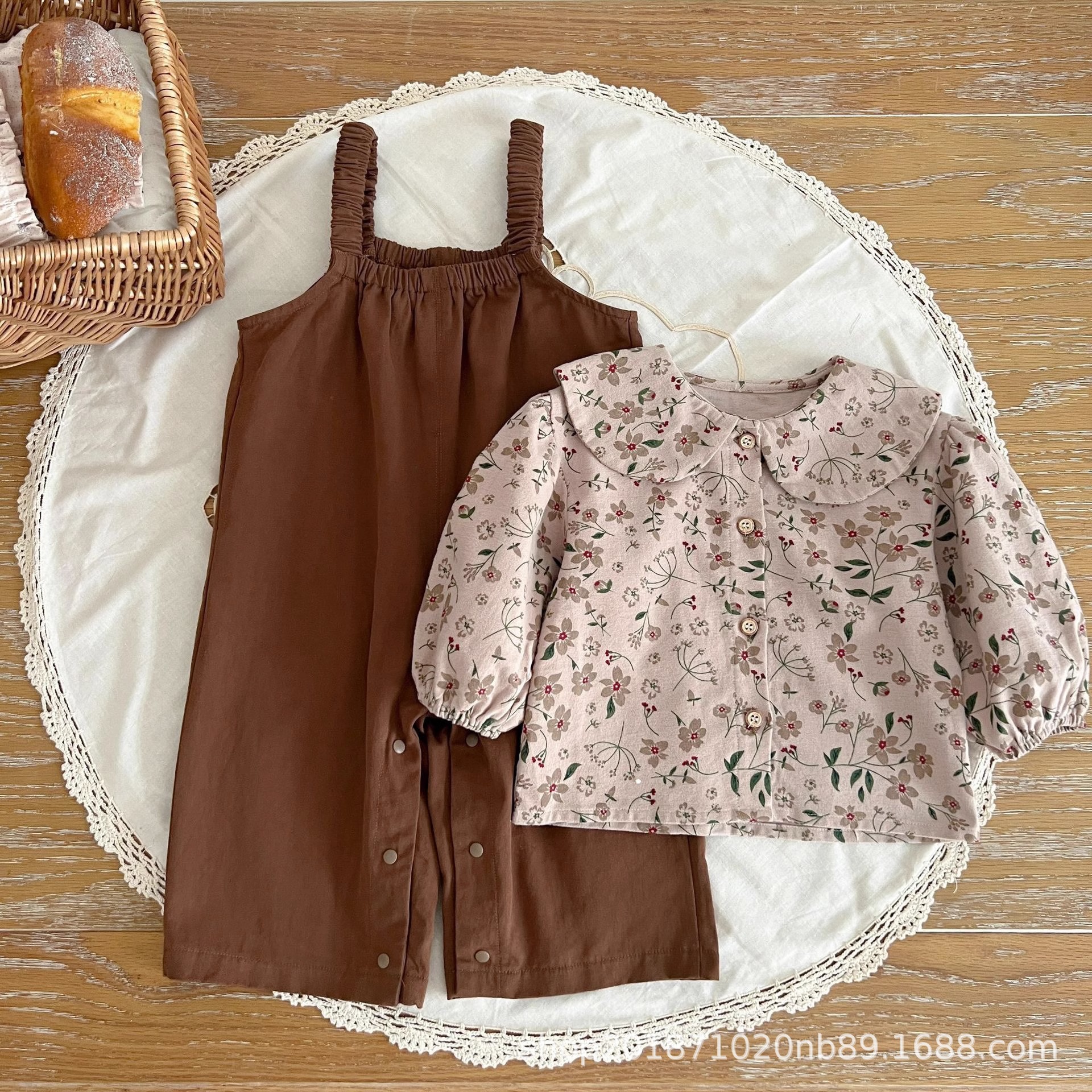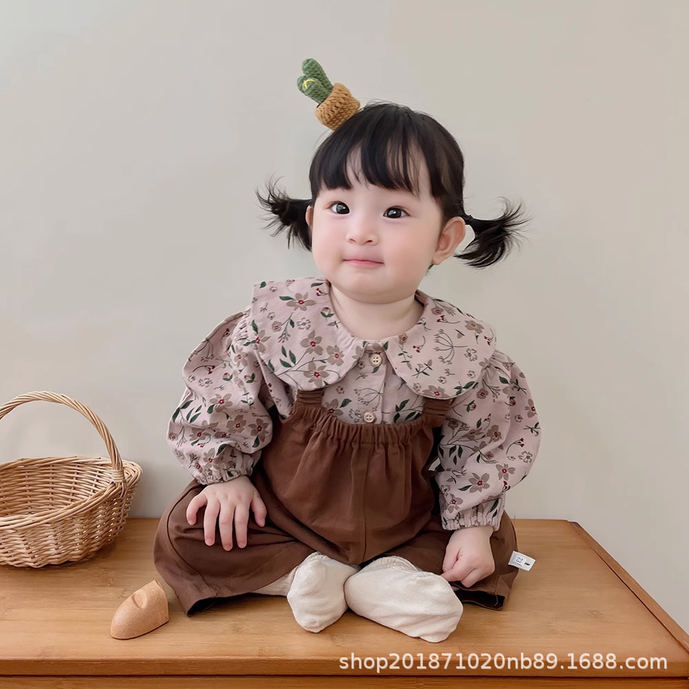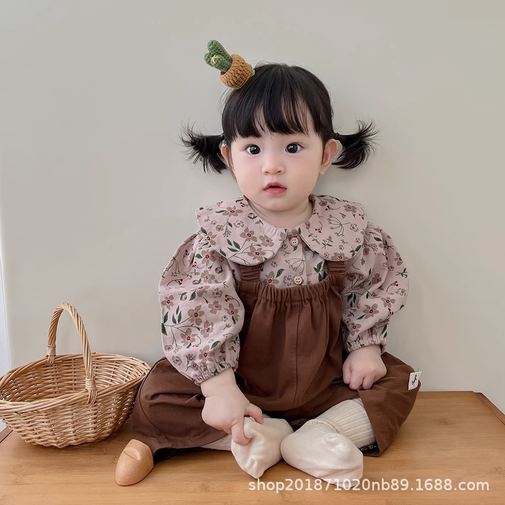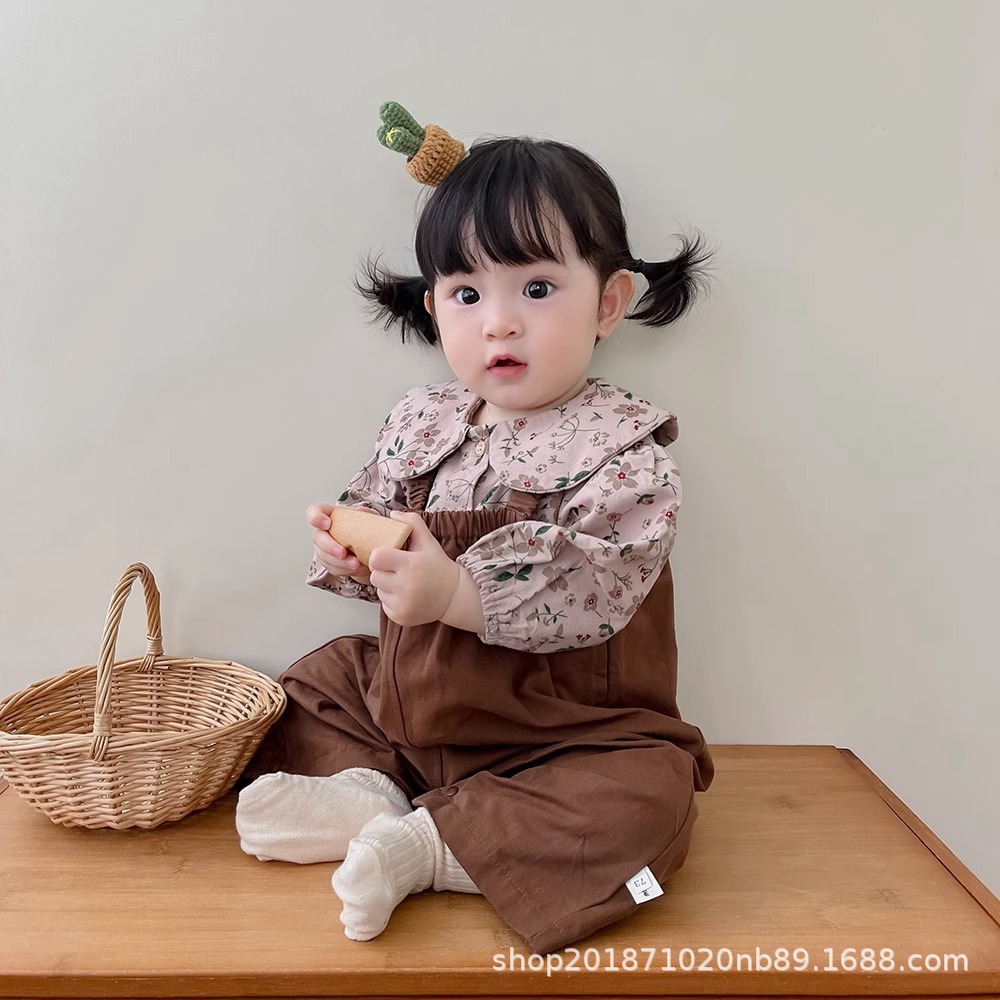 한국 스타일 아기 옷 가을 새로운 도착 세트 소녀 아기 귀여운 꽃 탑 스트랩 아기 등산 옷스토어 가기
