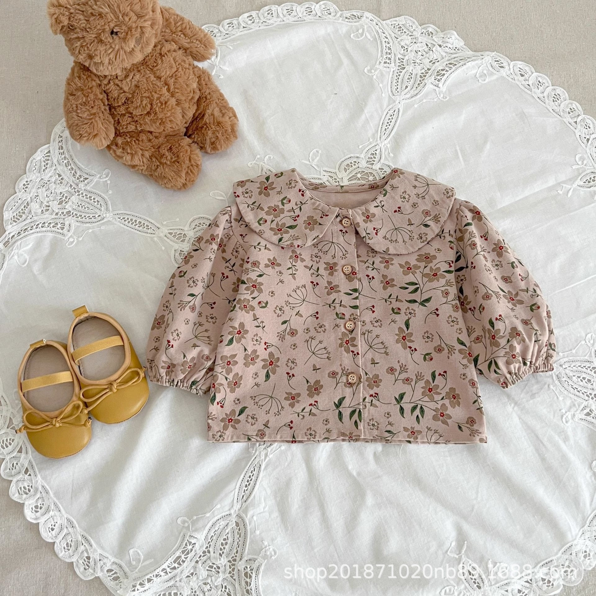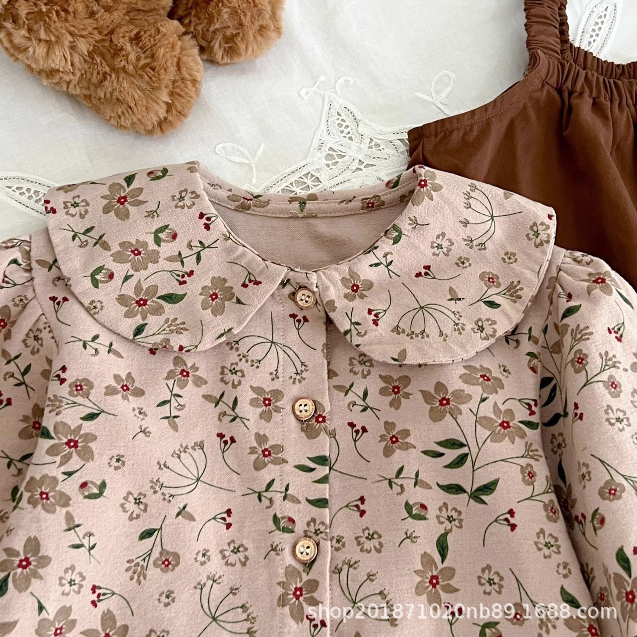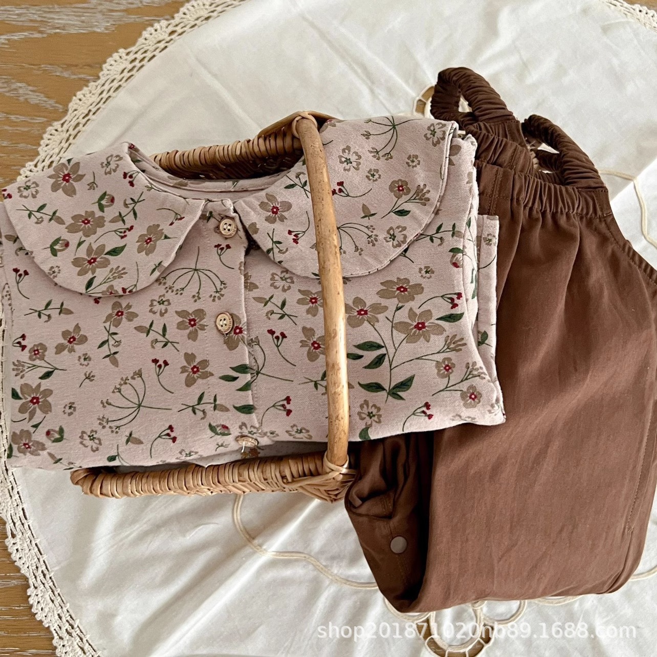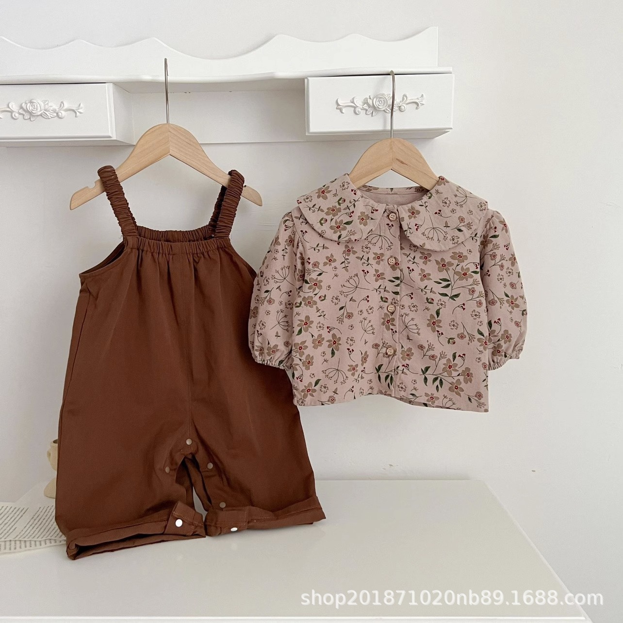 한국 스타일 아기 옷 가을 새로운 도착 세트 소녀 아기 귀여운 꽃 탑 스트랩 아기 등산 옷스토어 가기