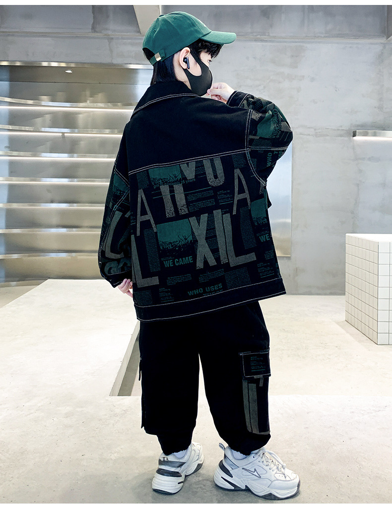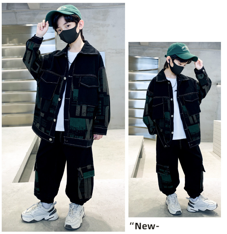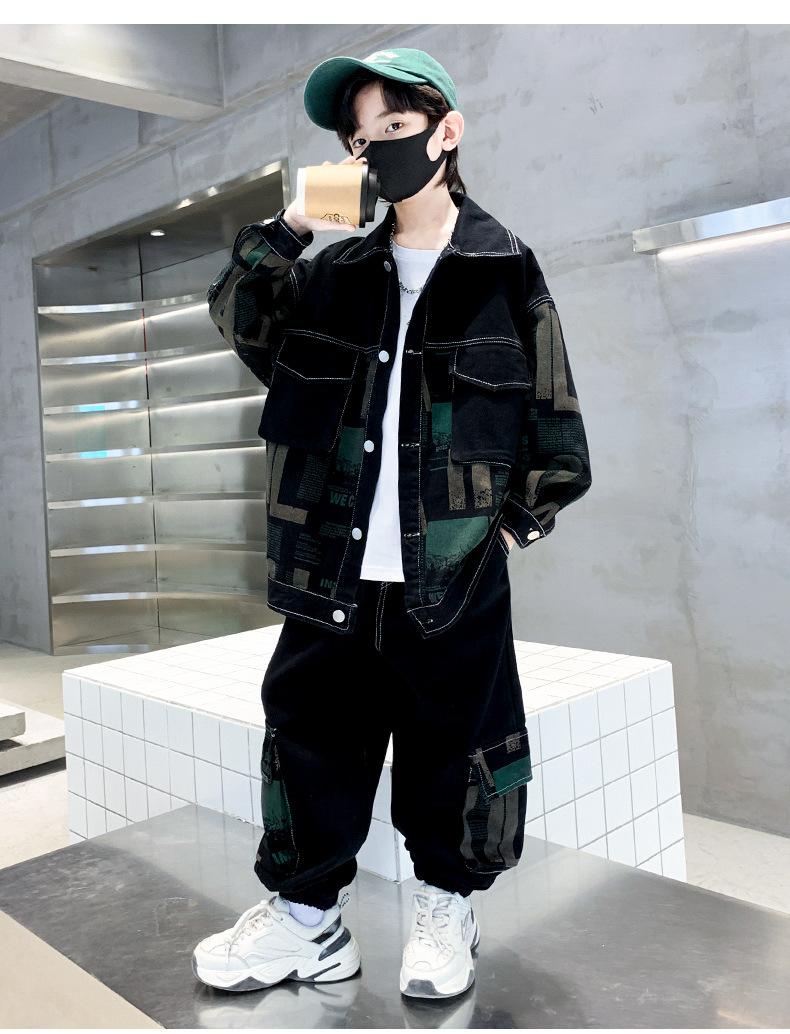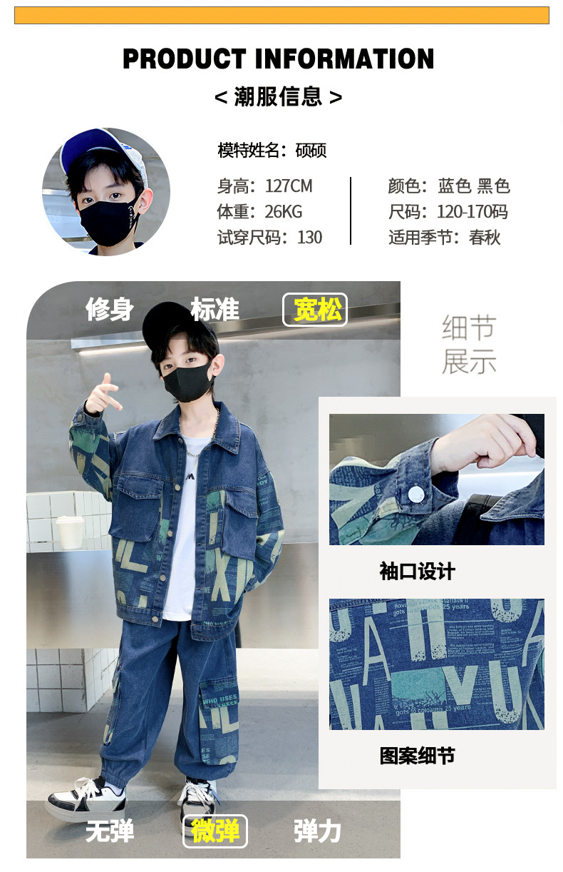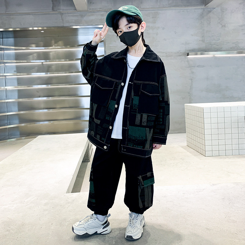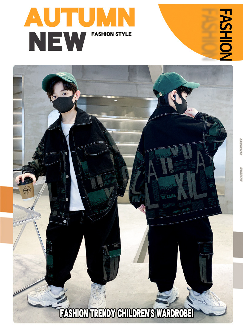 소년 가을 세트 2023 새로운 잘 생긴 큰 아이들의 봄과 가을 데님 코트 유행 어린이 바지 튀김 거리스토어 가기