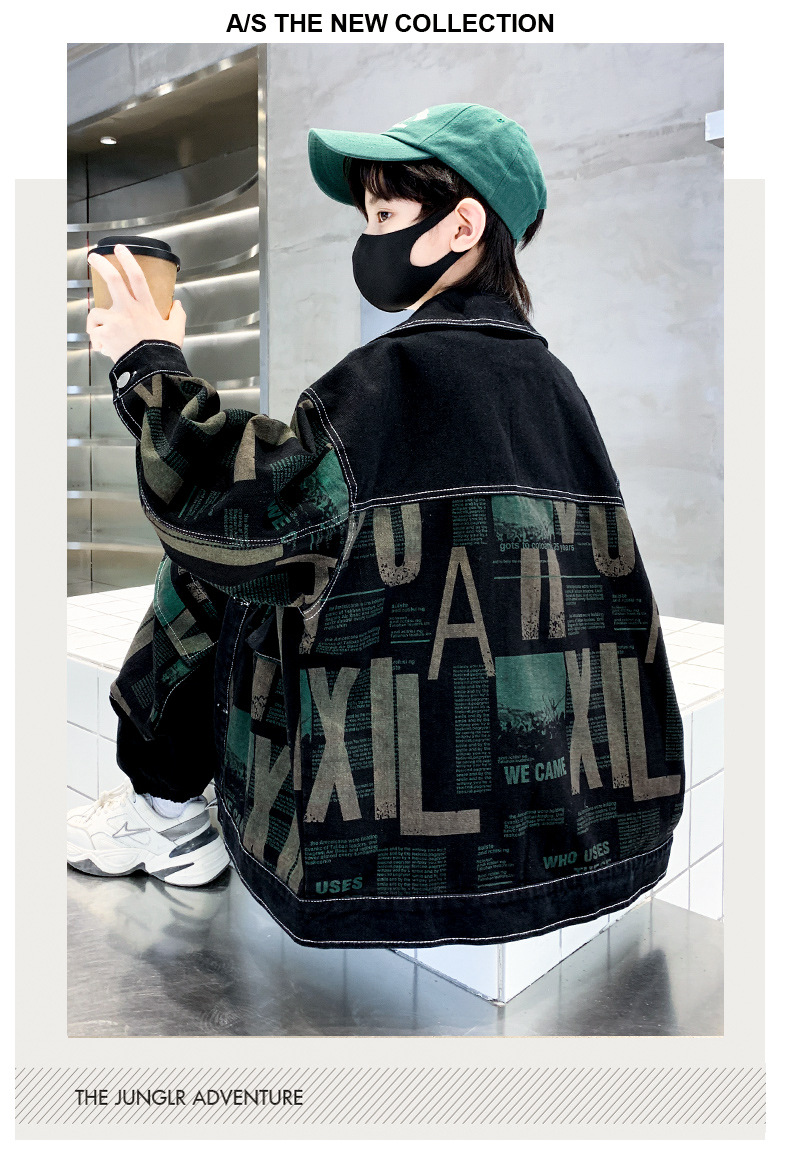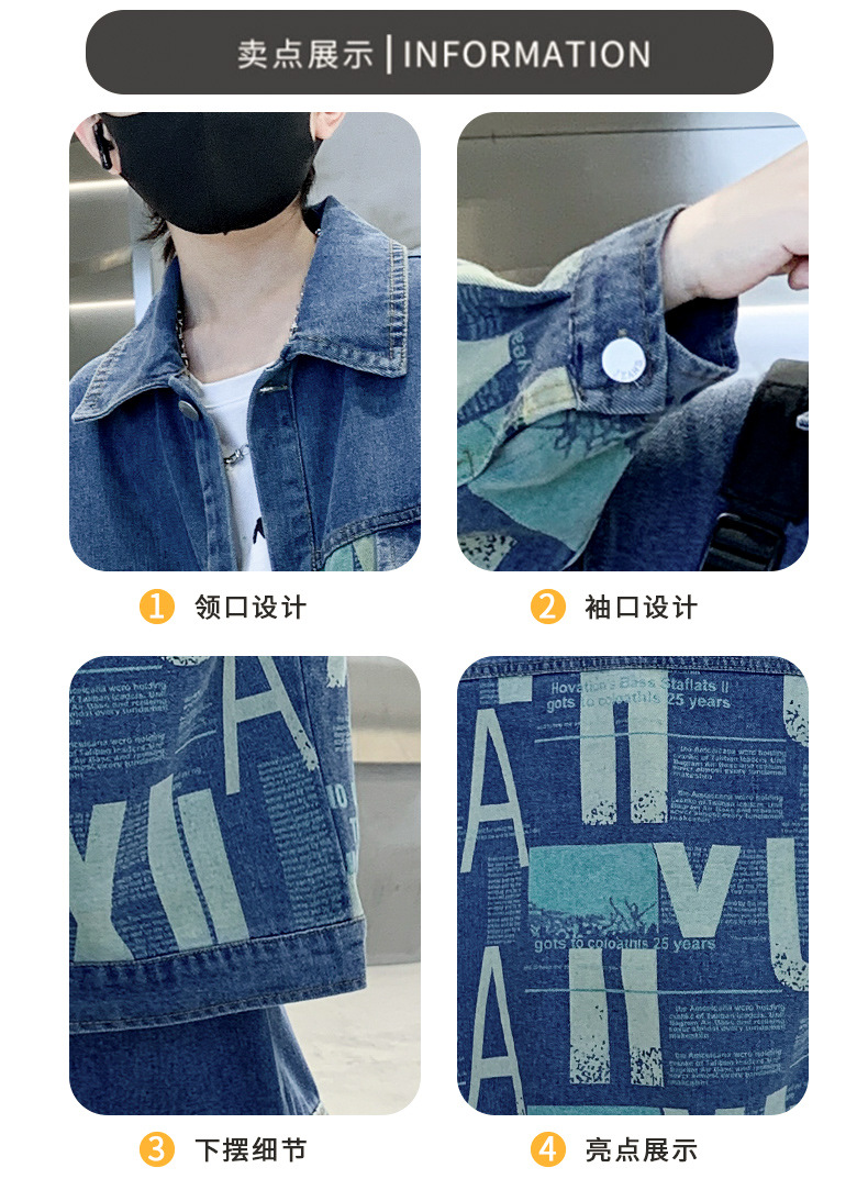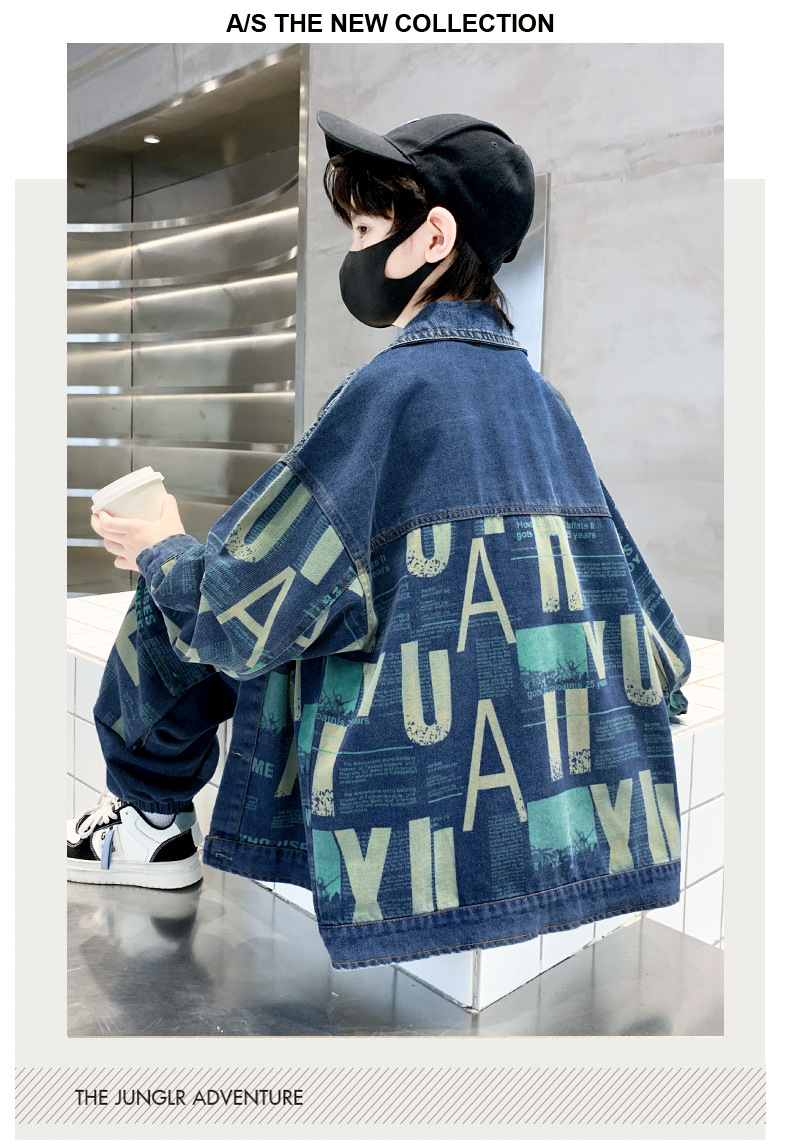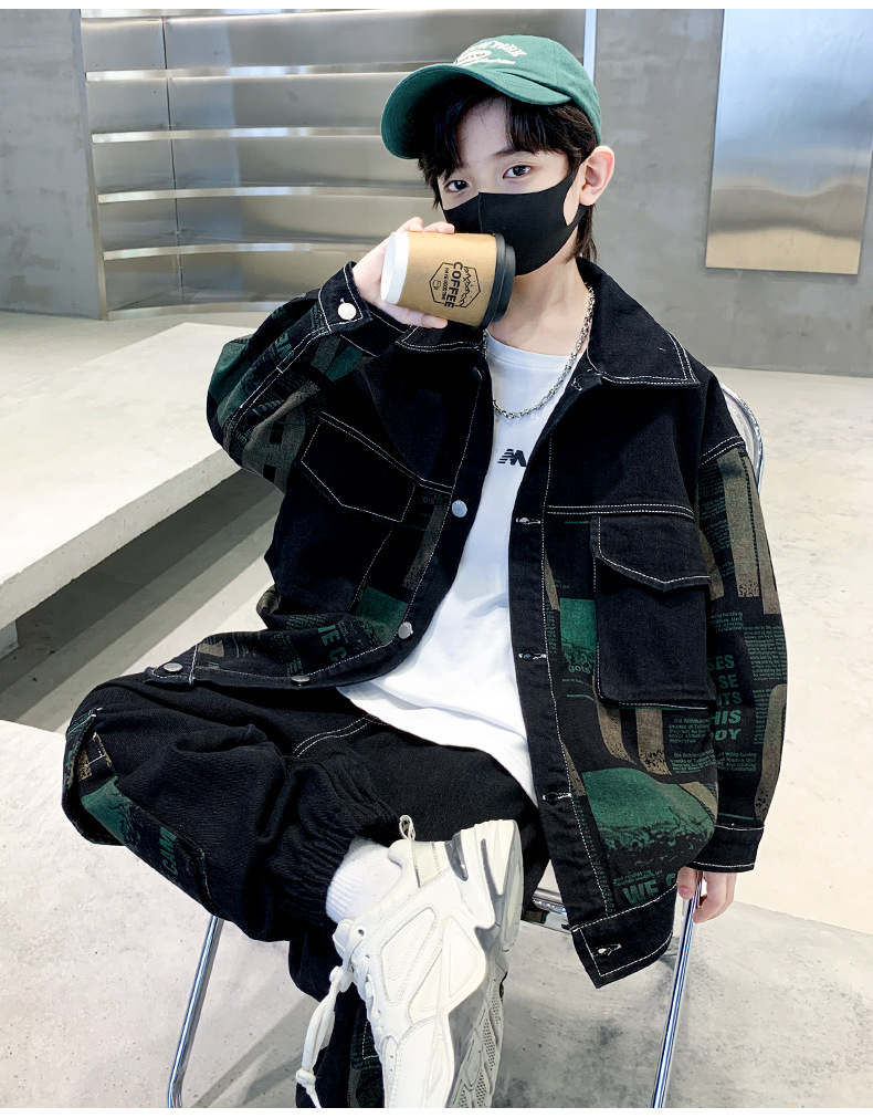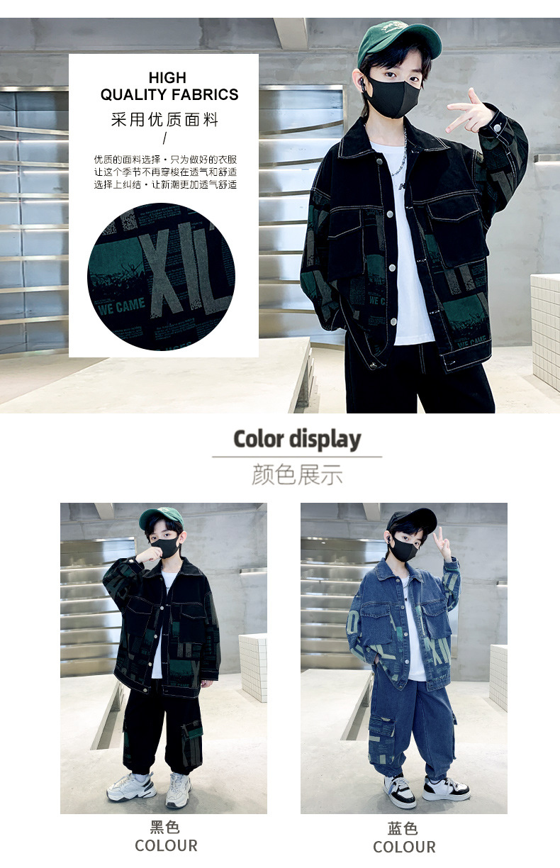 소년 가을 세트 2023 새로운 잘 생긴 큰 아이들의 봄과 가을 데님 코트 유행 어린이 바지 튀김 거리스토어 가기