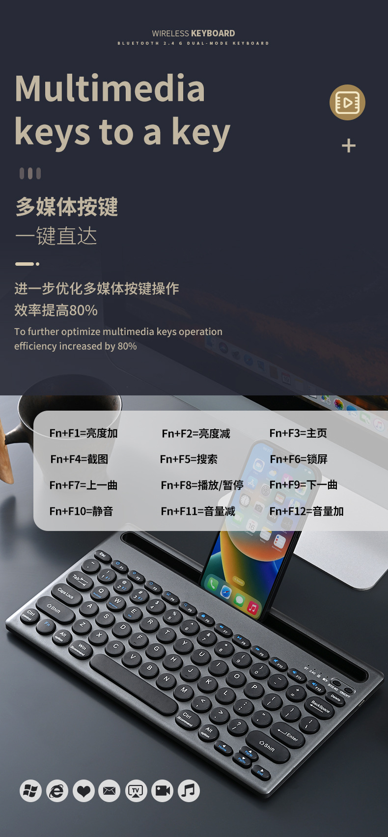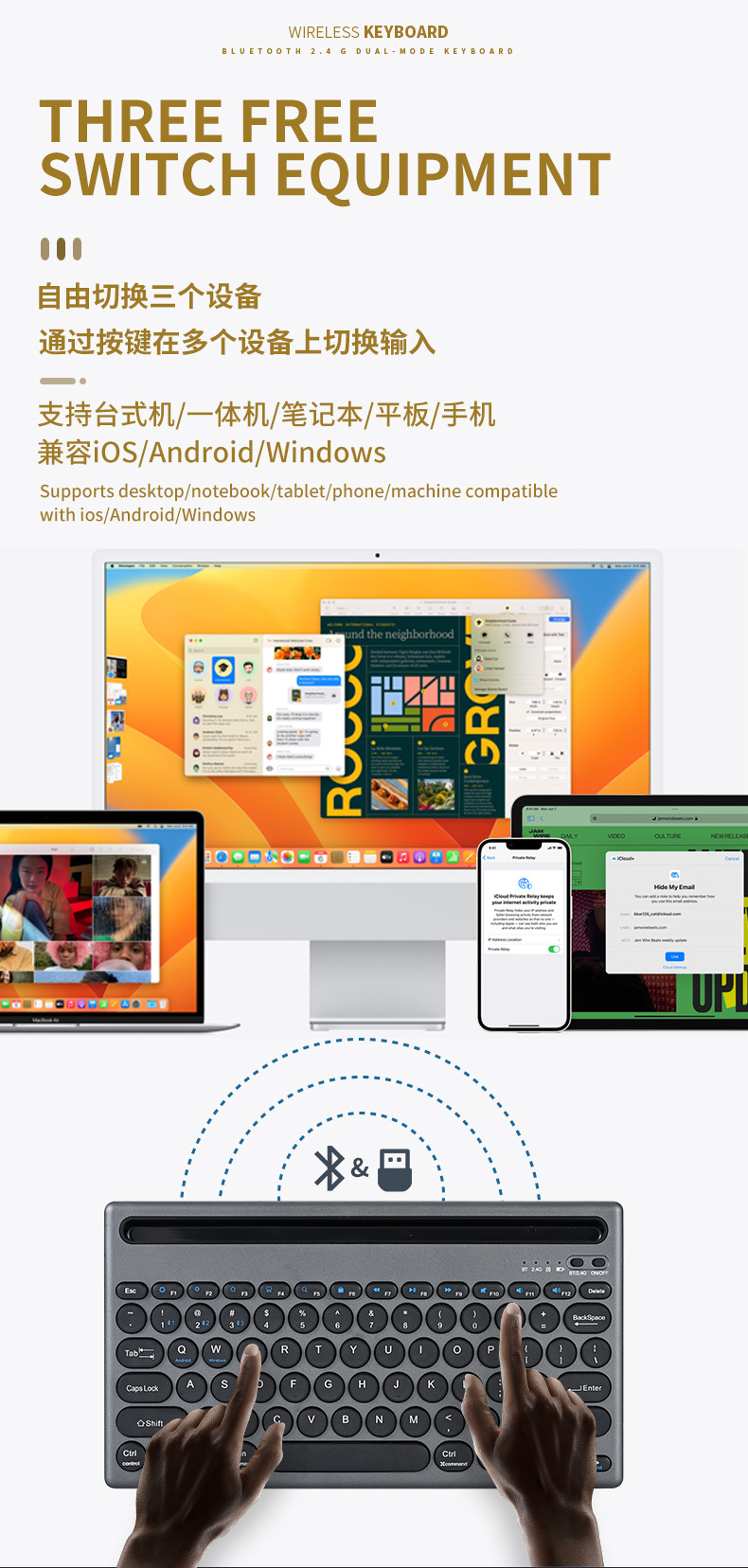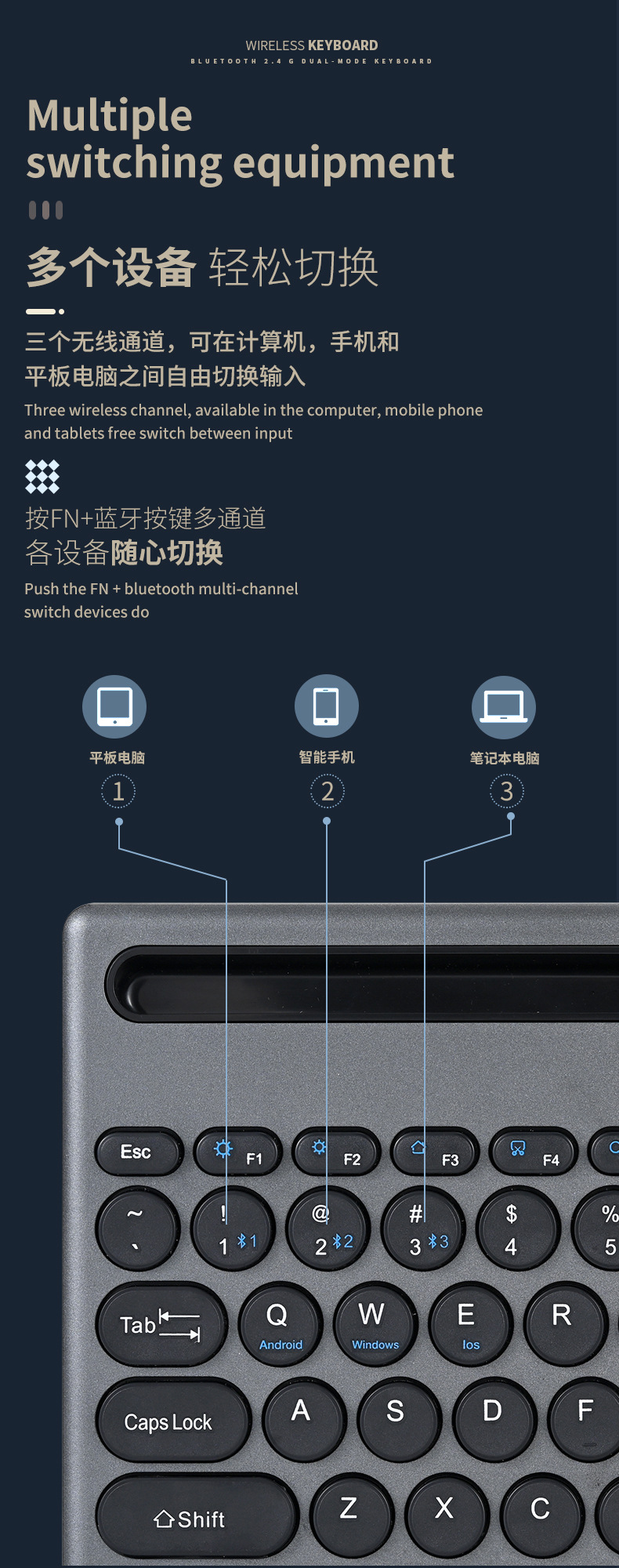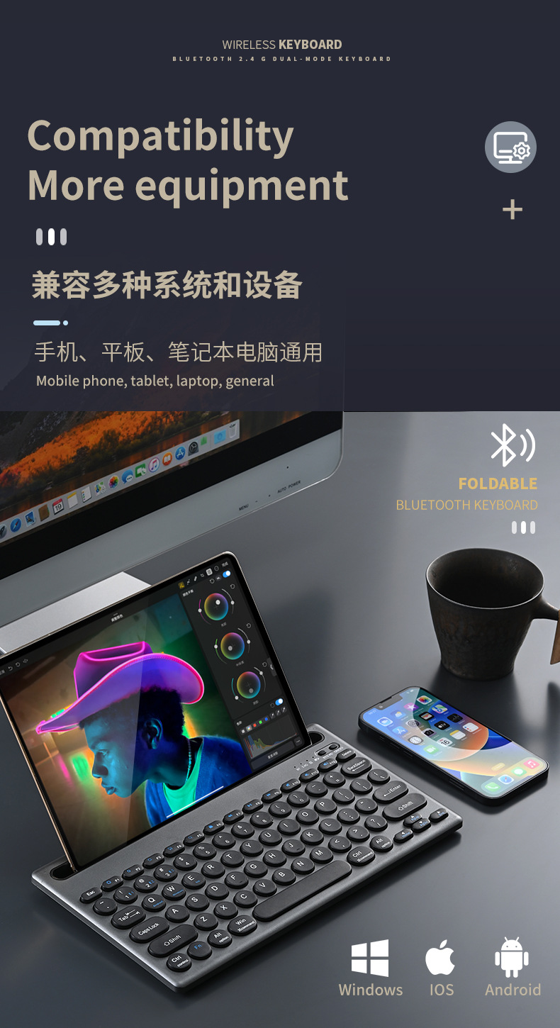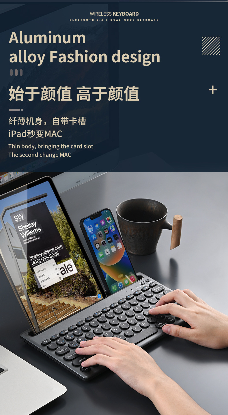 카드 슬롯 블루투스 키보드 무선 블루투스 듀얼 모드 멀티 디바이스 연결 충전 자동 휴대 전화 태블릿 사무실 키보드