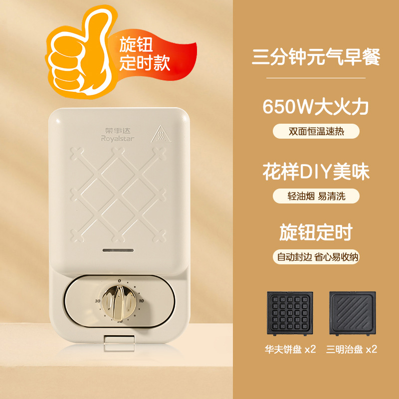 Royalstar 샌드위치 기계 홈 아침 식사 기계 다기능 소형 와플 토스터 라이트 푸드 기계 토스터스토어 가기