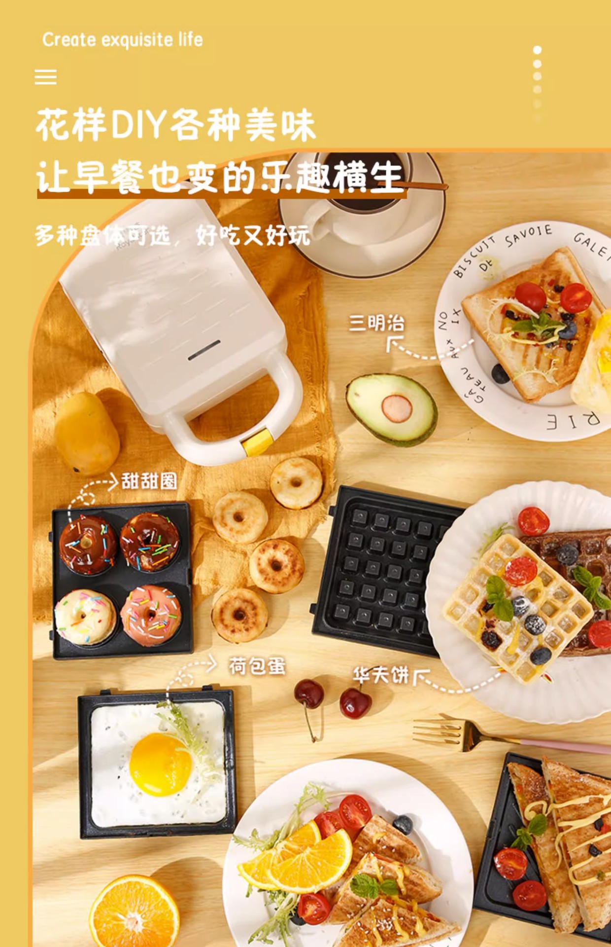 Royalstar 샌드위치 기계 홈 아침 식사 기계 다기능 소형 와플 토스터 라이트 푸드 기계 토스터