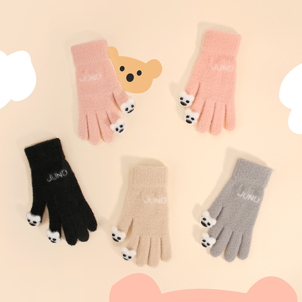 가을과 겨울 여성의 오픈 핑거 터치 스크린 장갑 귀여운 만화 봉제 니트 장갑 따뜻한 방한 울 장갑