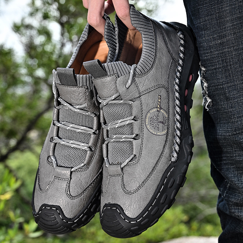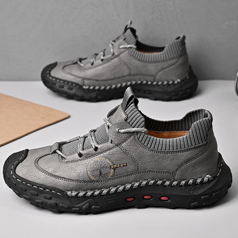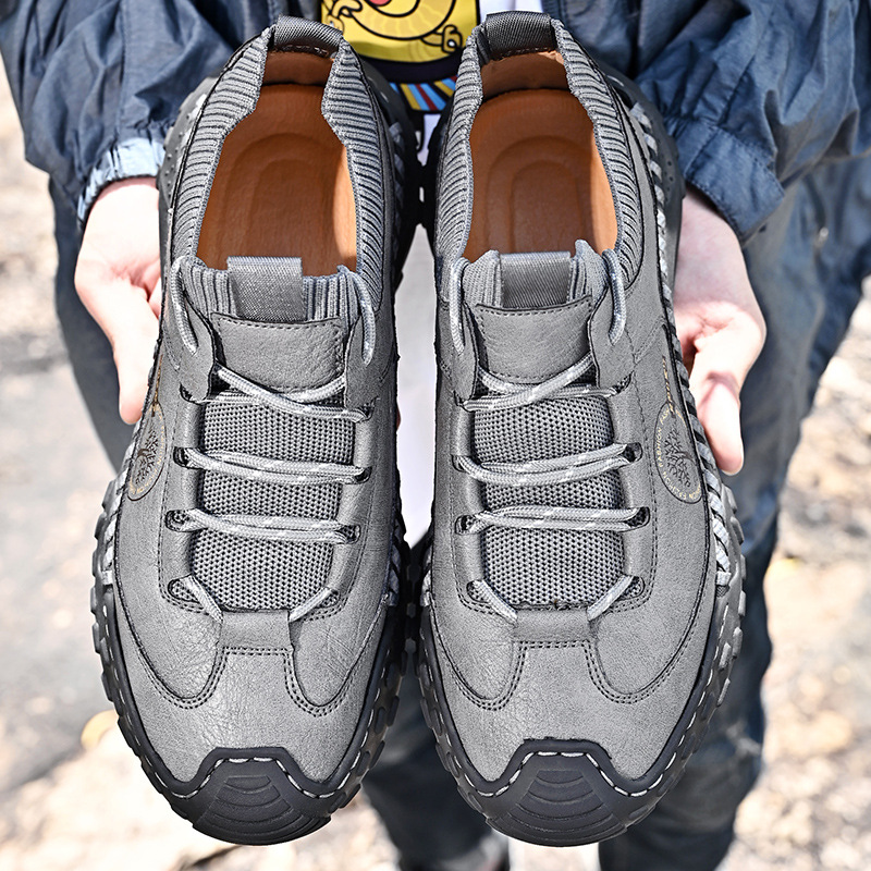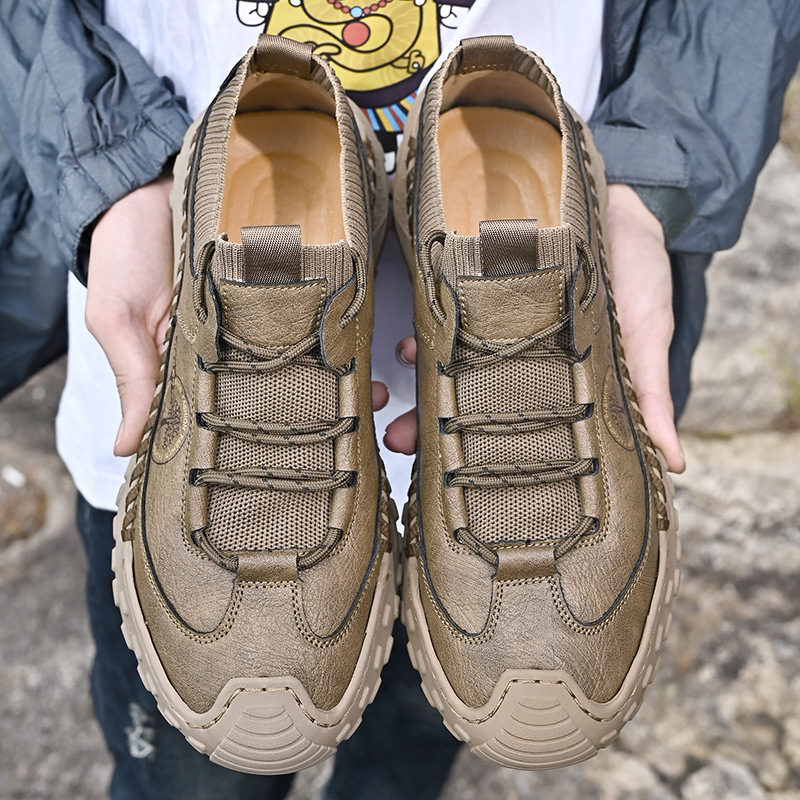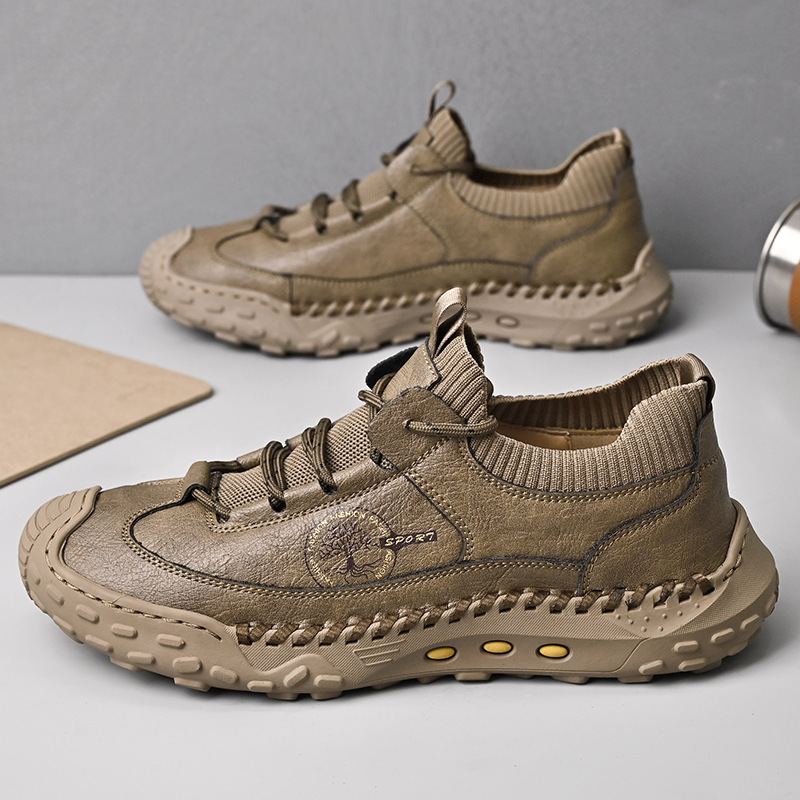 패션 봄과 가을 남성용 가죽 신발 크로스 보더 핸드 스티치 남성 신발 정품 가죽 남성 캐주얼 남성 신발 로퍼 캐주얼 수제 신발스토어 가기