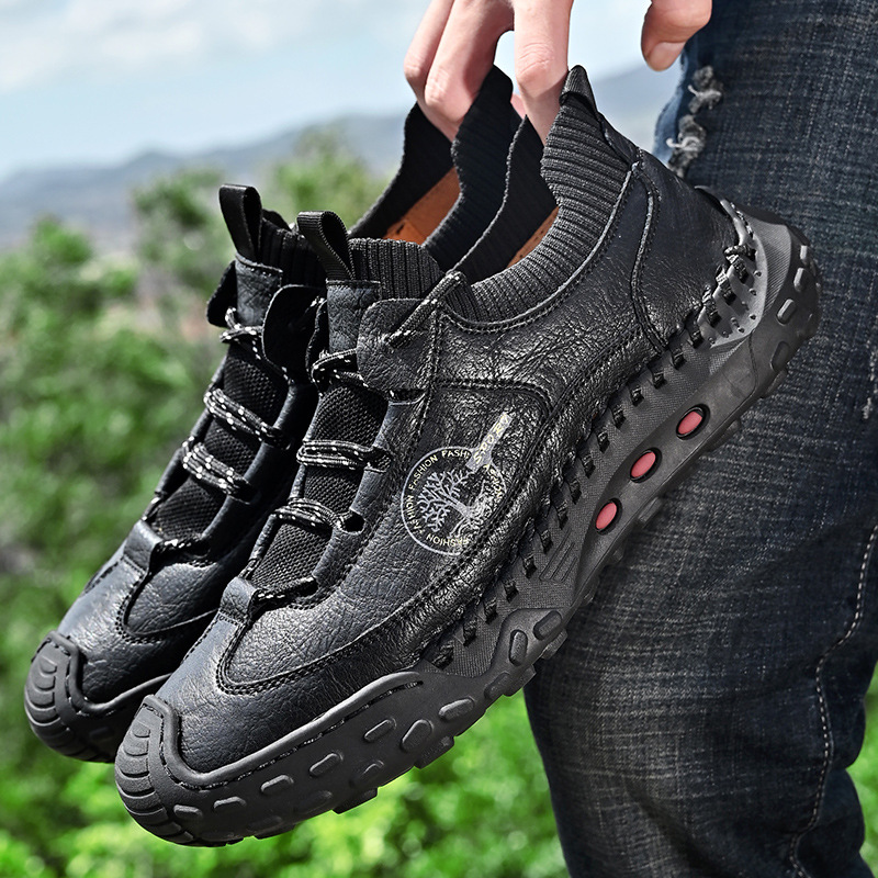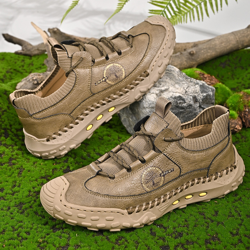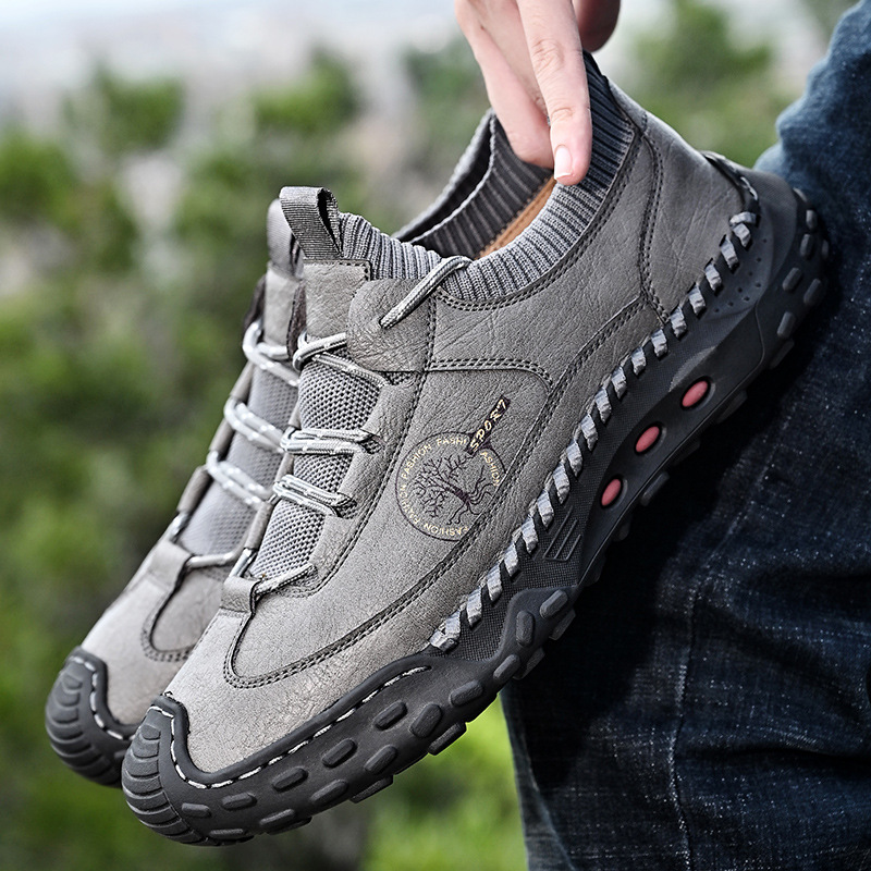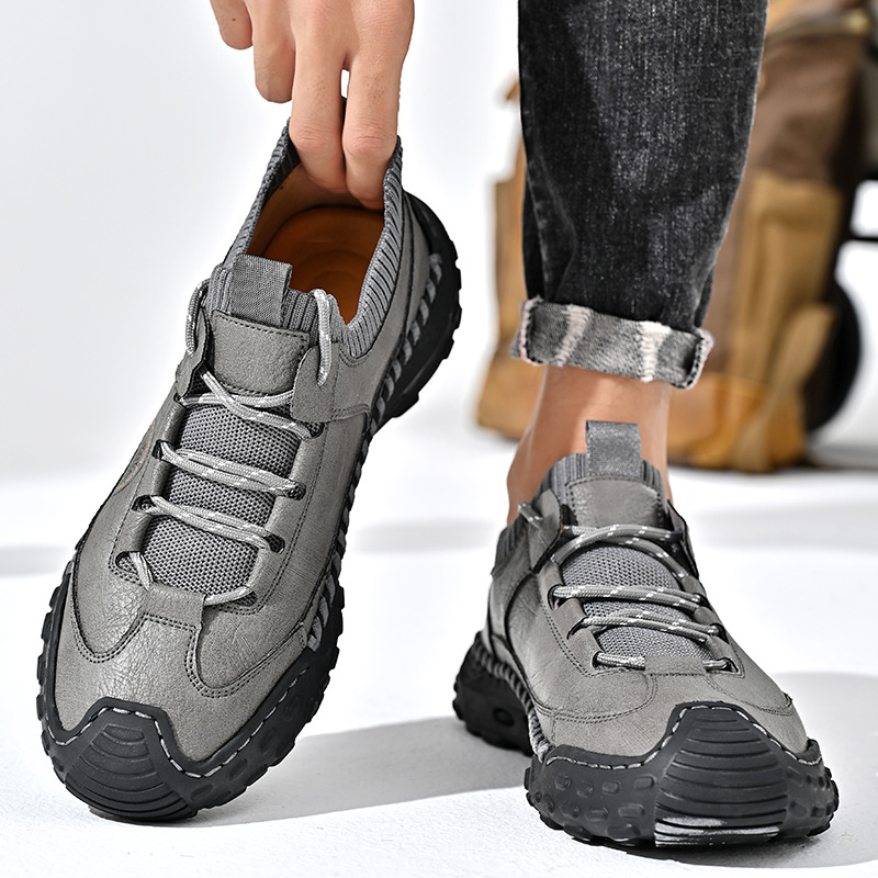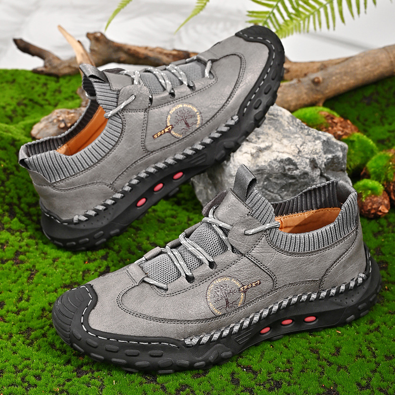 패션 봄과 가을 남성용 가죽 신발 크로스 보더 핸드 스티치 남성 신발 정품 가죽 남성 캐주얼 남성 신발 로퍼 캐주얼 수제 신발스토어 가기